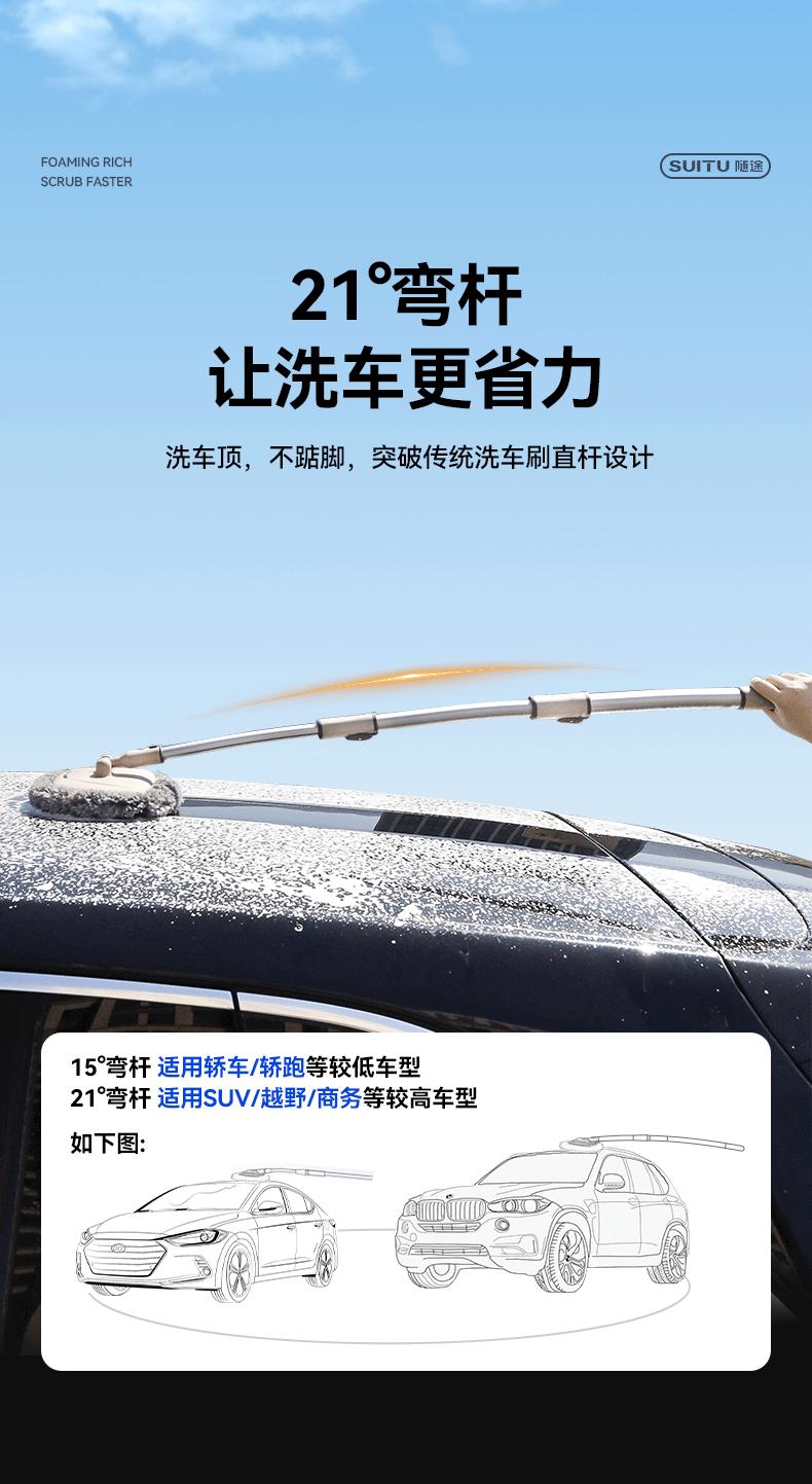 Cepillo de limpieza retráctil para coche, cepillo de limpieza de varilla curva, suave y no daña el coche.