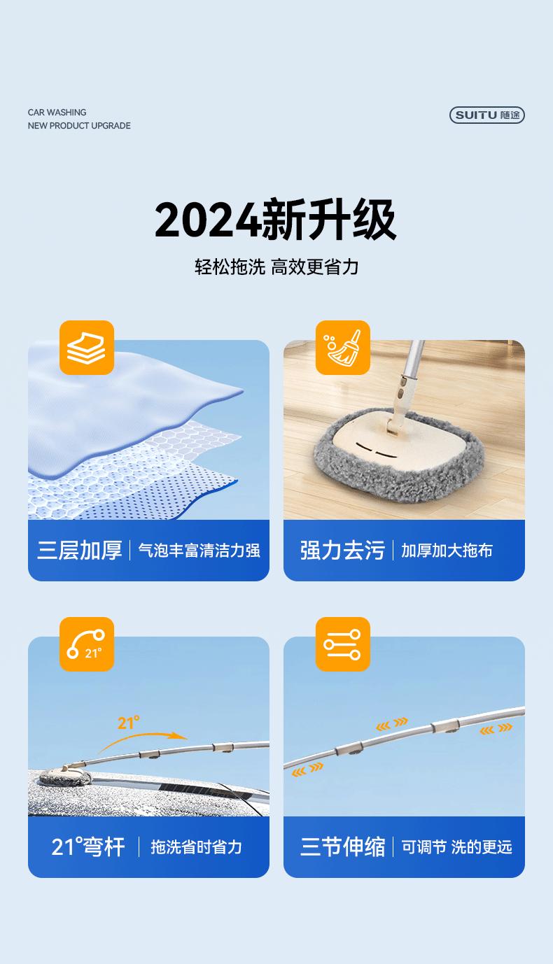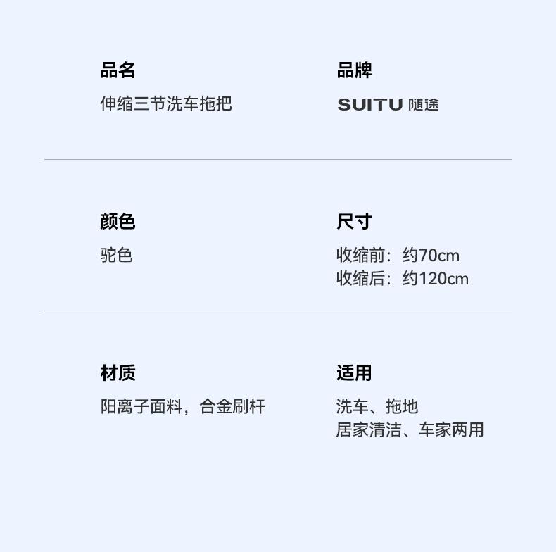 Telescopic 3-section car wash mop (black and white), Telescopic 3-section car wash mop (camel)