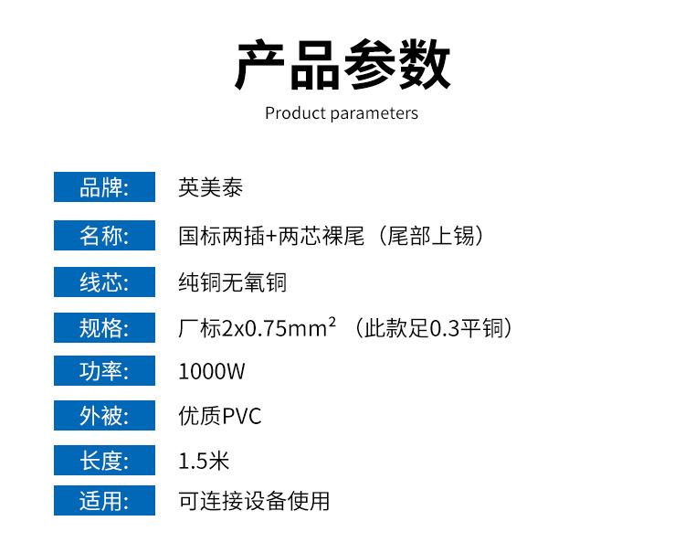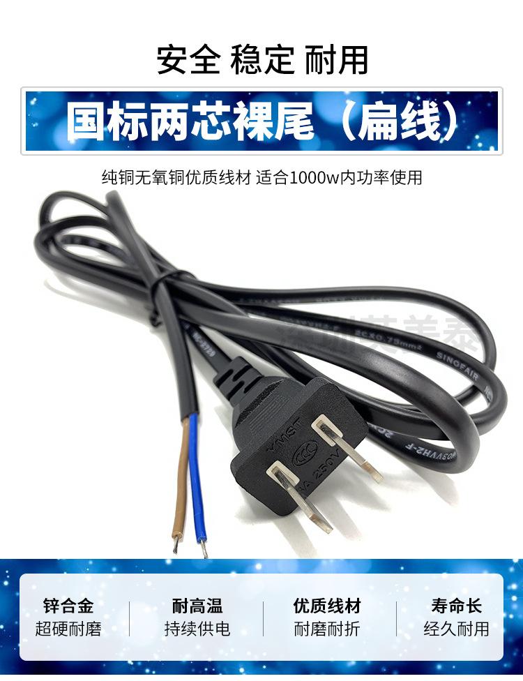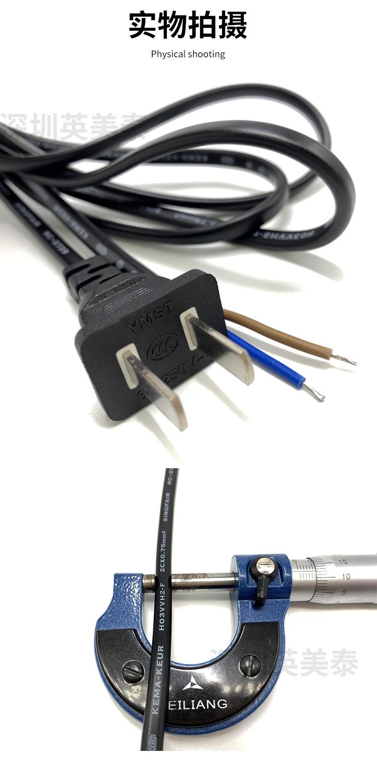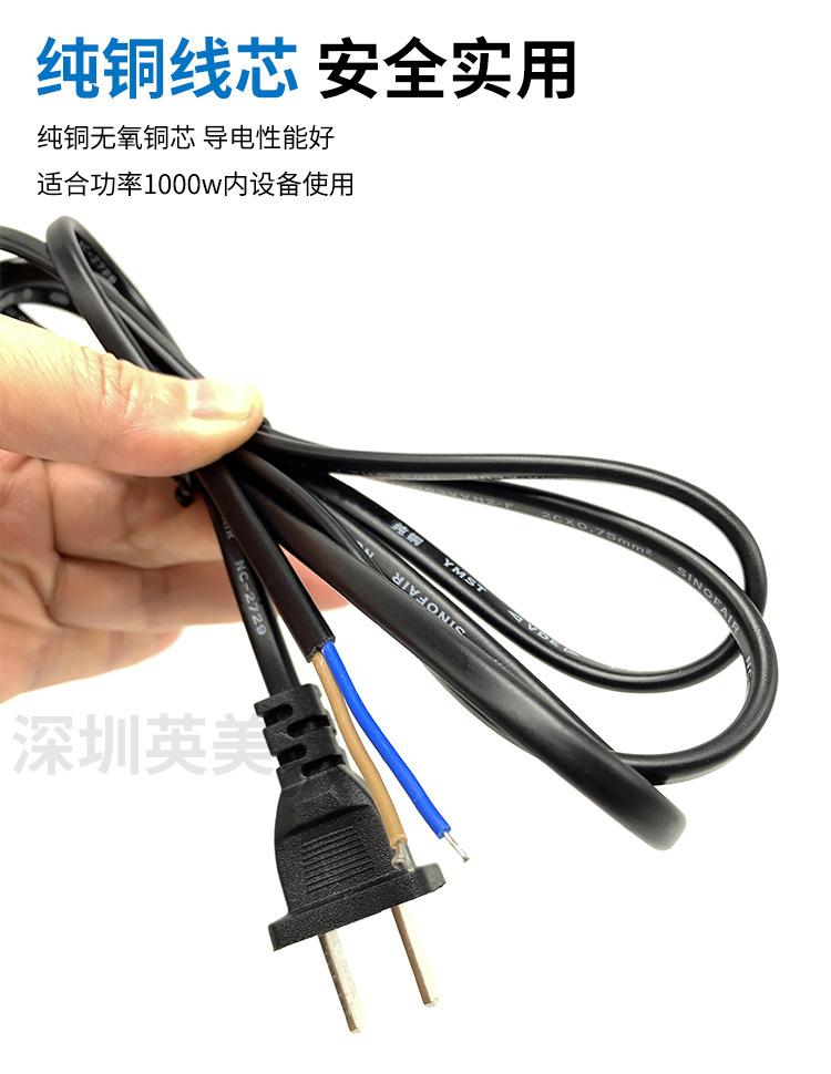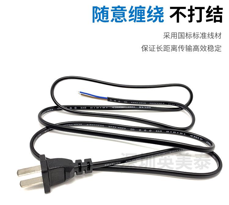 Los fabricantes suministran un cable de alimentación de cobre de dos núcleos personalizado de 1,5 m 2 x 0,75 metros cuadrados con dos enchufes estándar nacionales en stock.