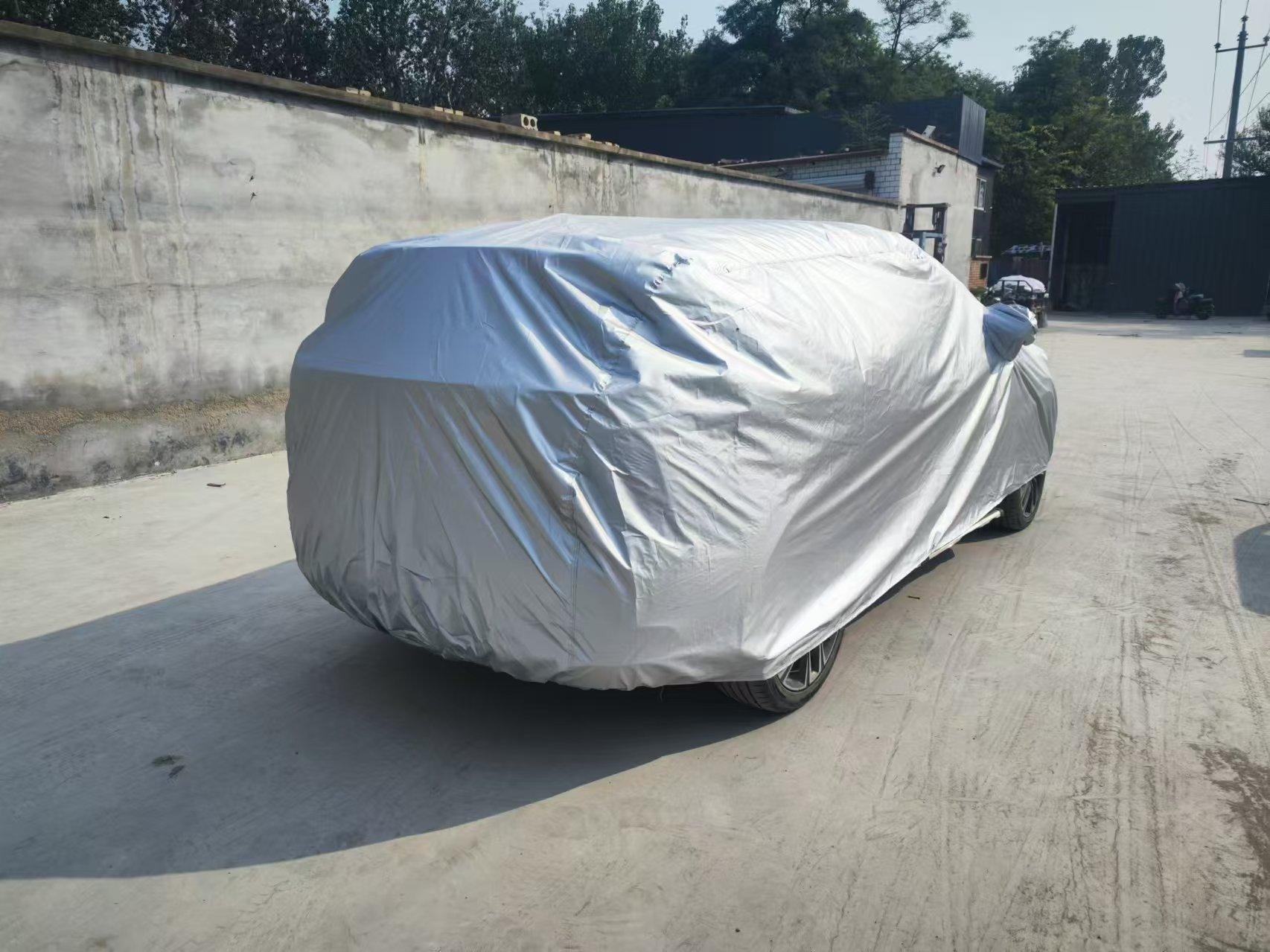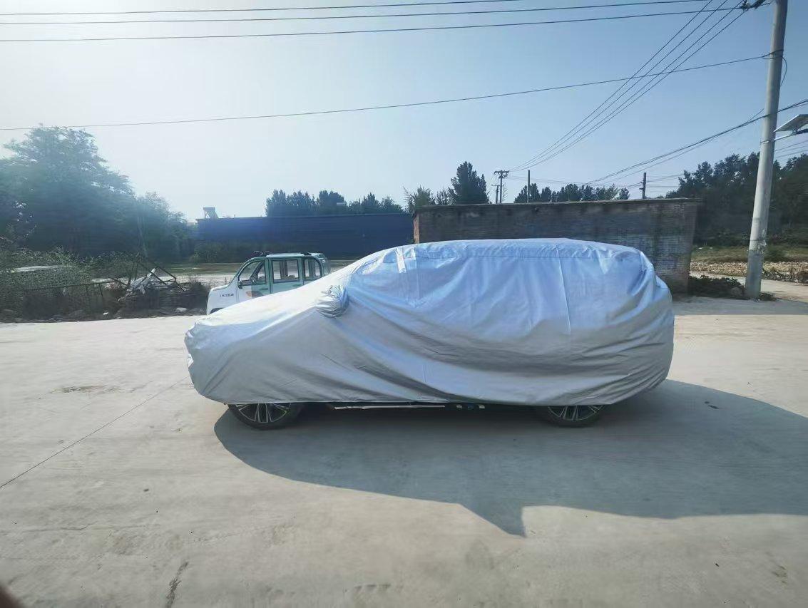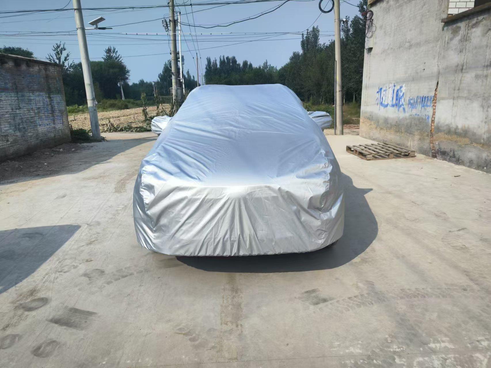 Venta al por mayor de fábrica tafetán de poliéster de una sola capa ropa para coche de una sola capa tela plateada universal para las cuatro estaciones a prueba de polvo protector solar funda para coche a prueba de lluvia