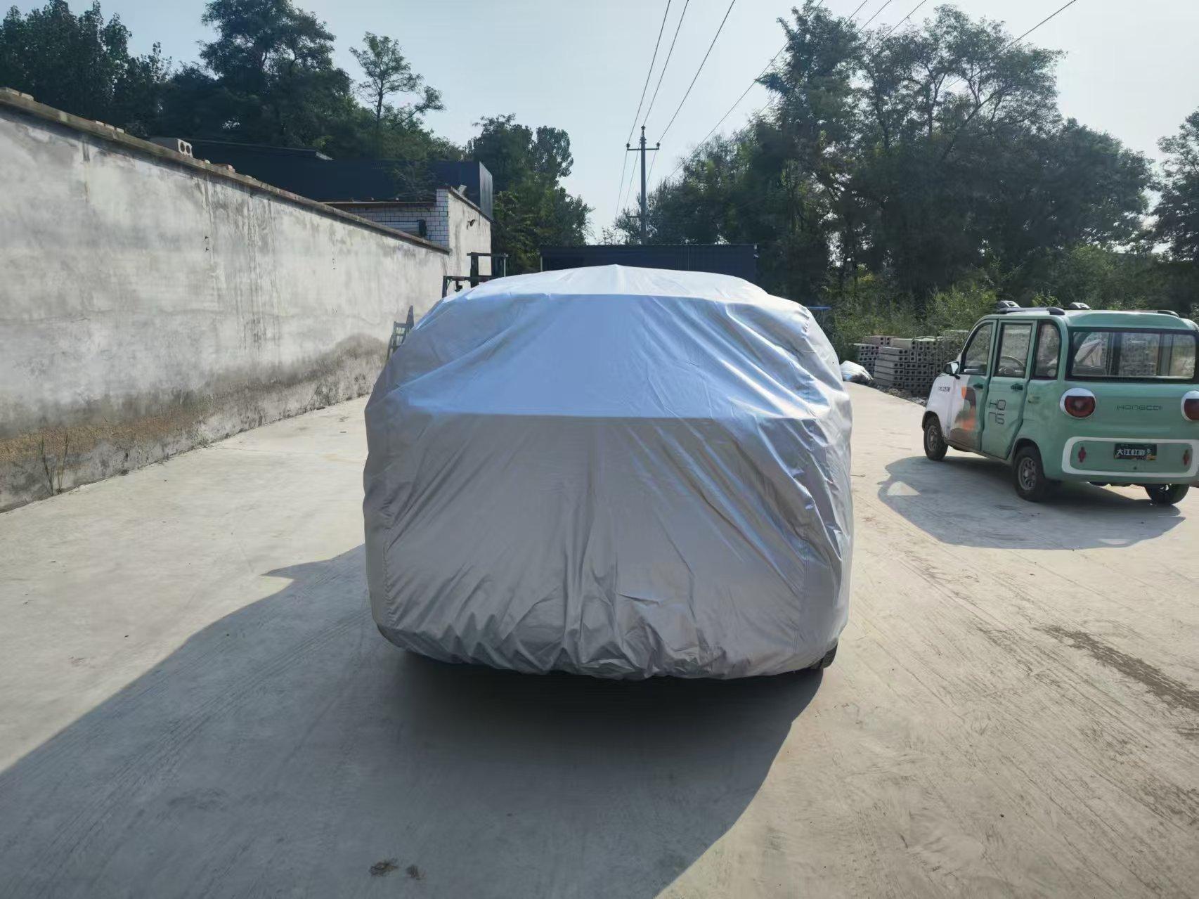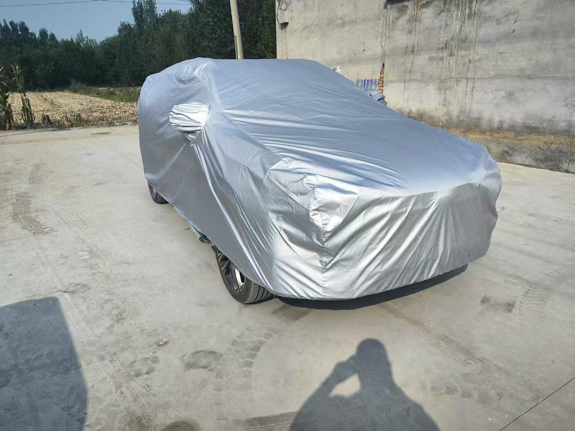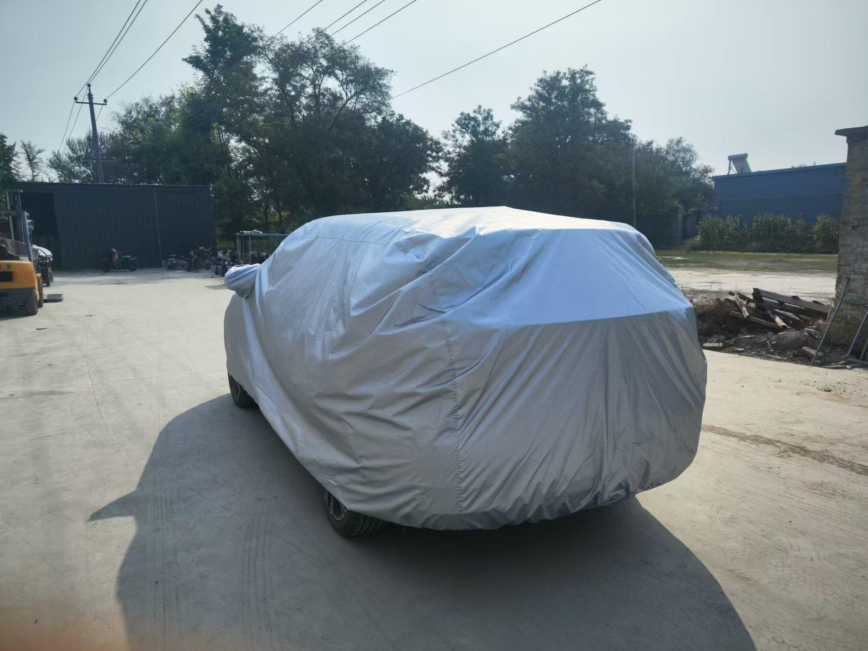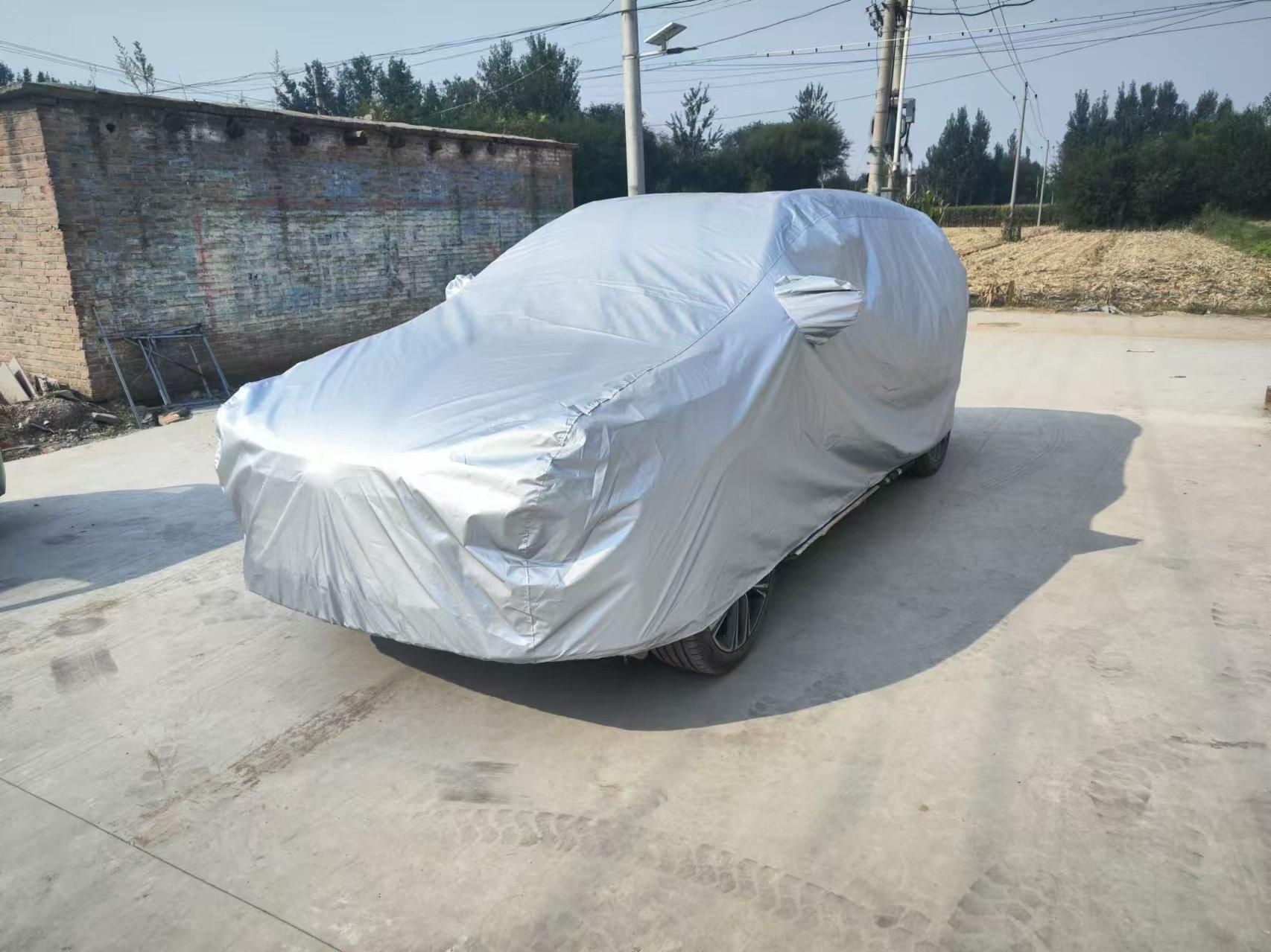 Venta al por mayor de fábrica tafetán de poliéster de una sola capa ropa para coche de una sola capa tela plateada universal para las cuatro estaciones a prueba de polvo protector solar funda para coche a prueba de lluvia