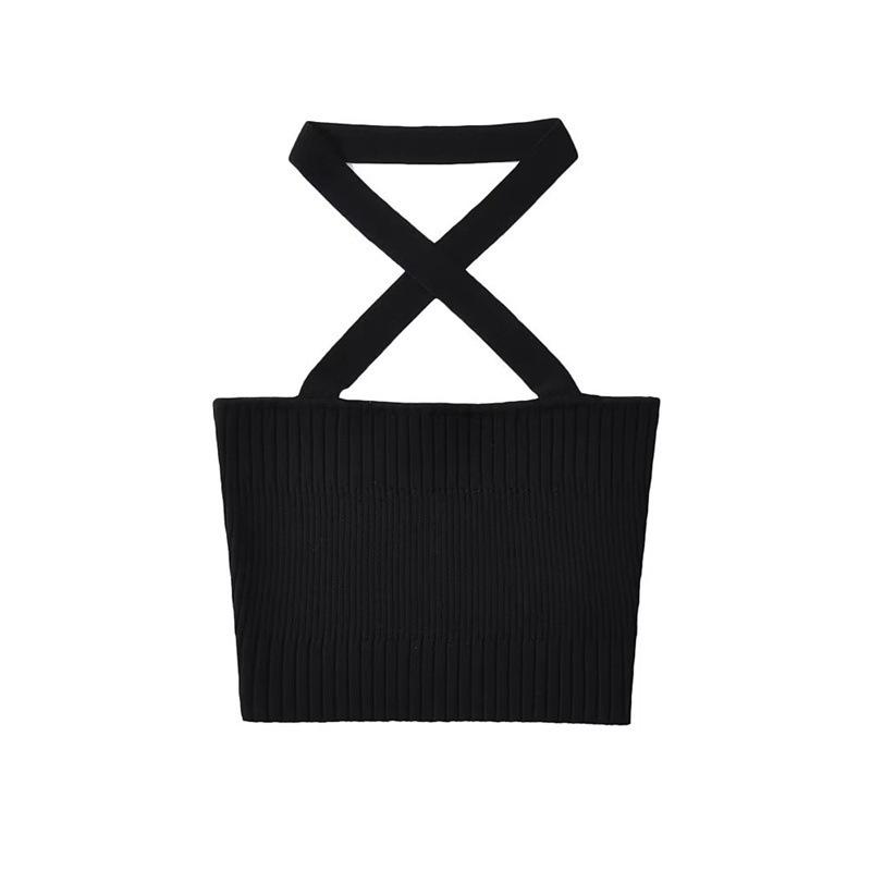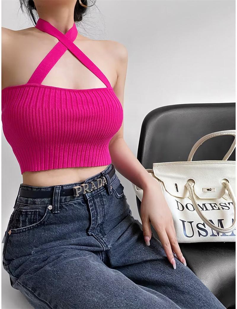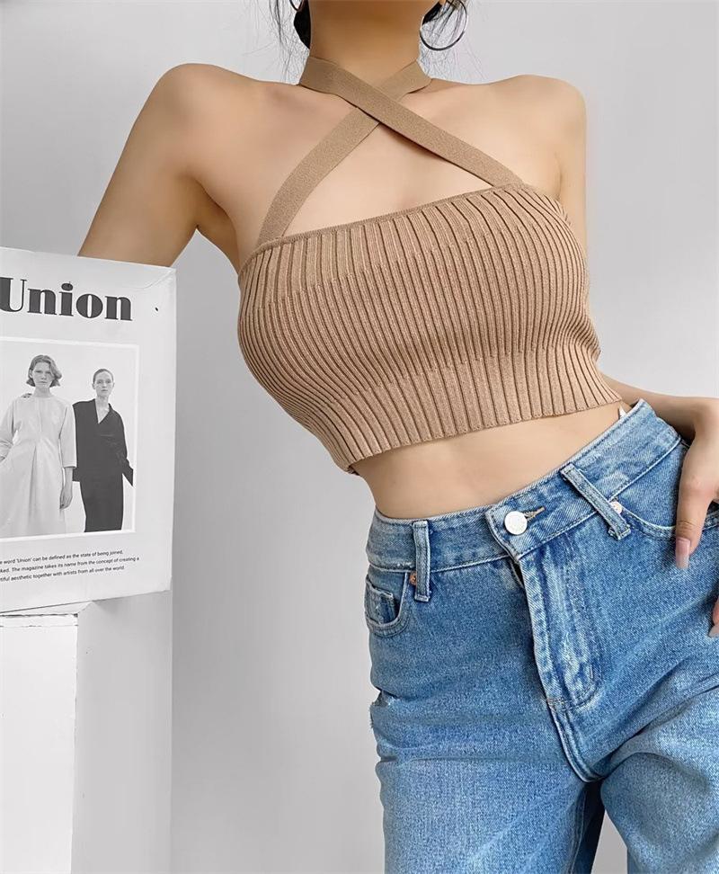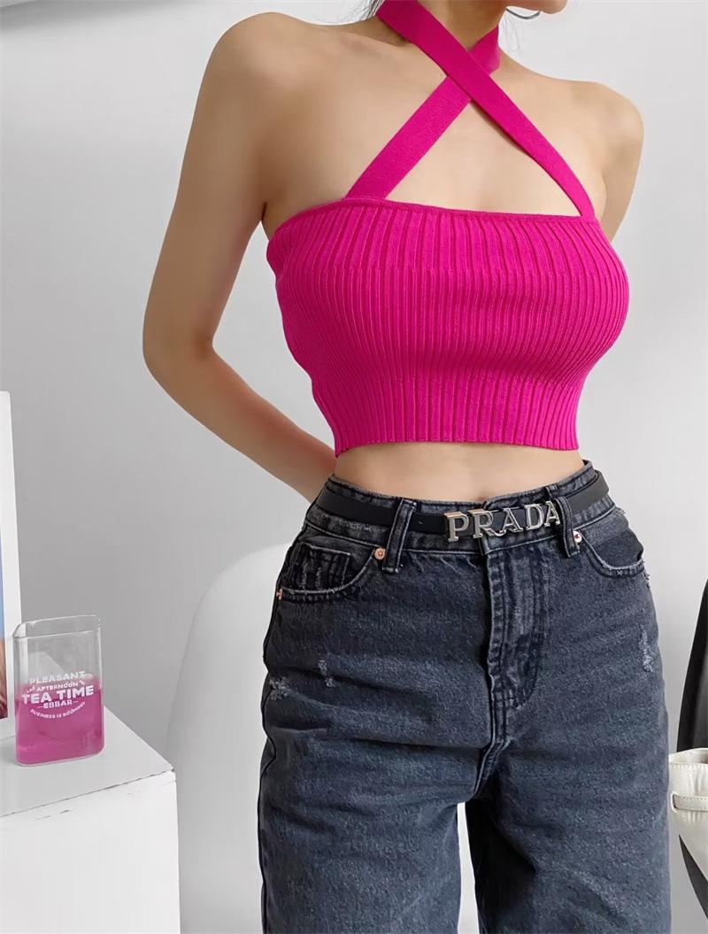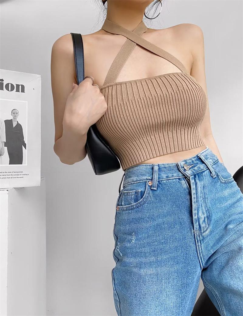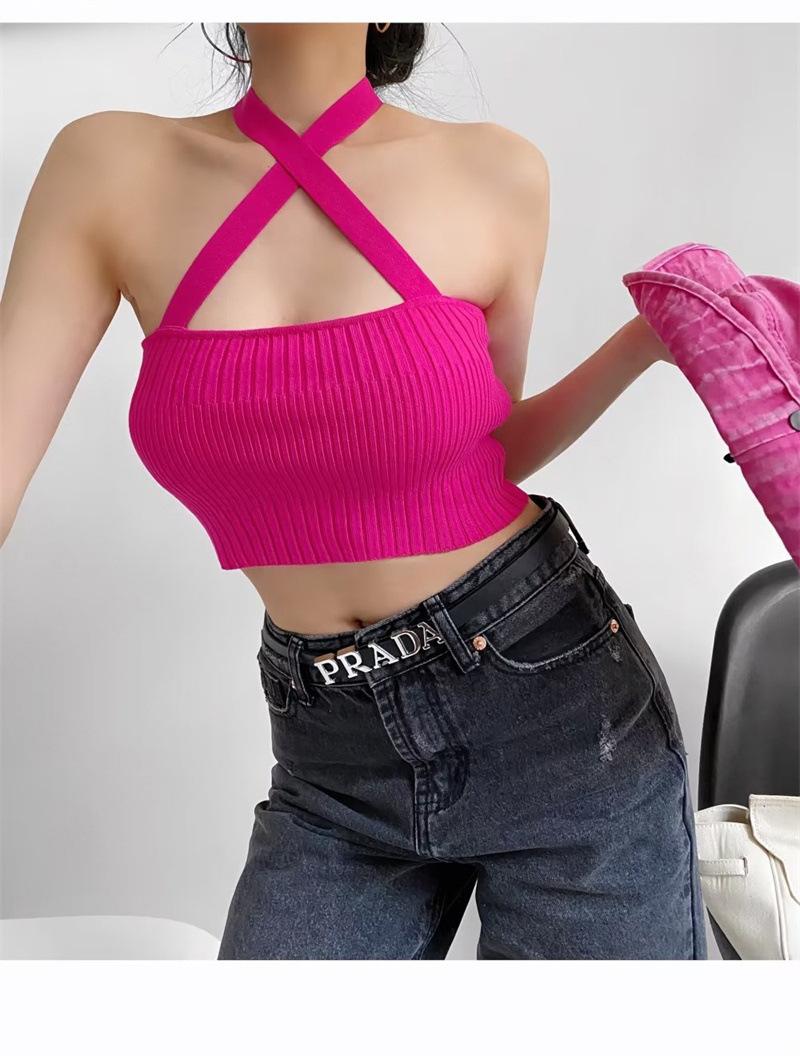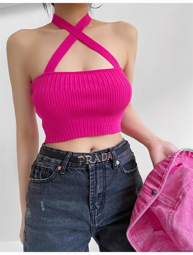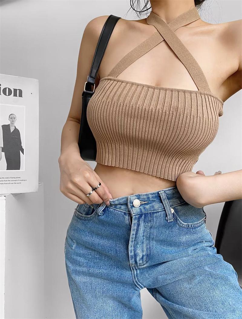 Chaleco Delgado de Color Sólido para Mujer Nuevo Estilo Puro Lujuria Cruz Halter Tirantes Sexy Chica Caliente Top Primavera 2023