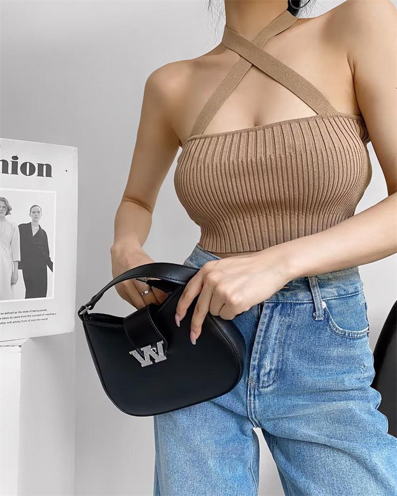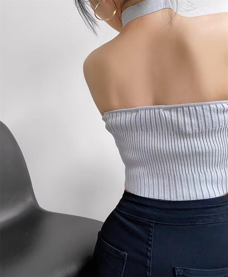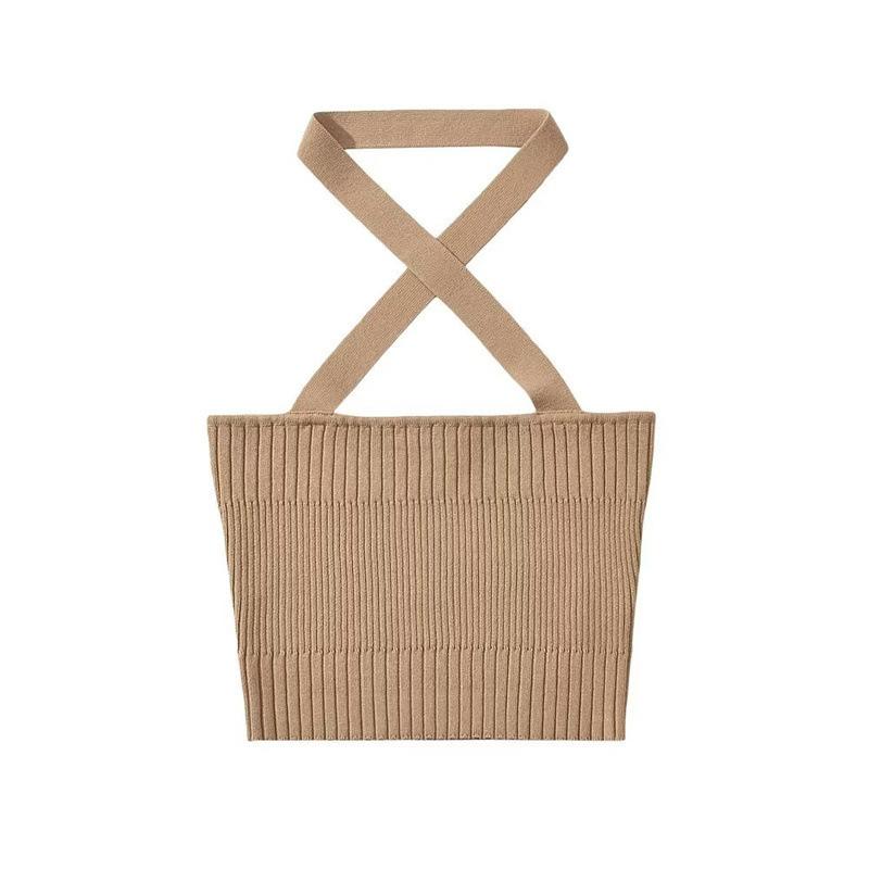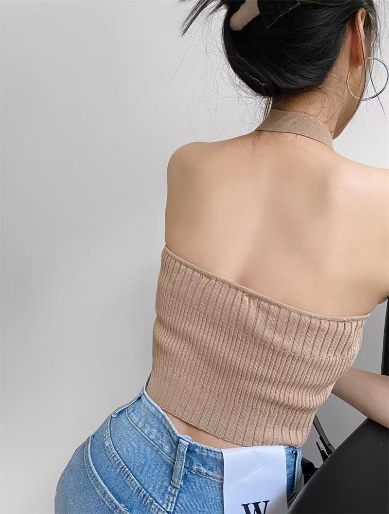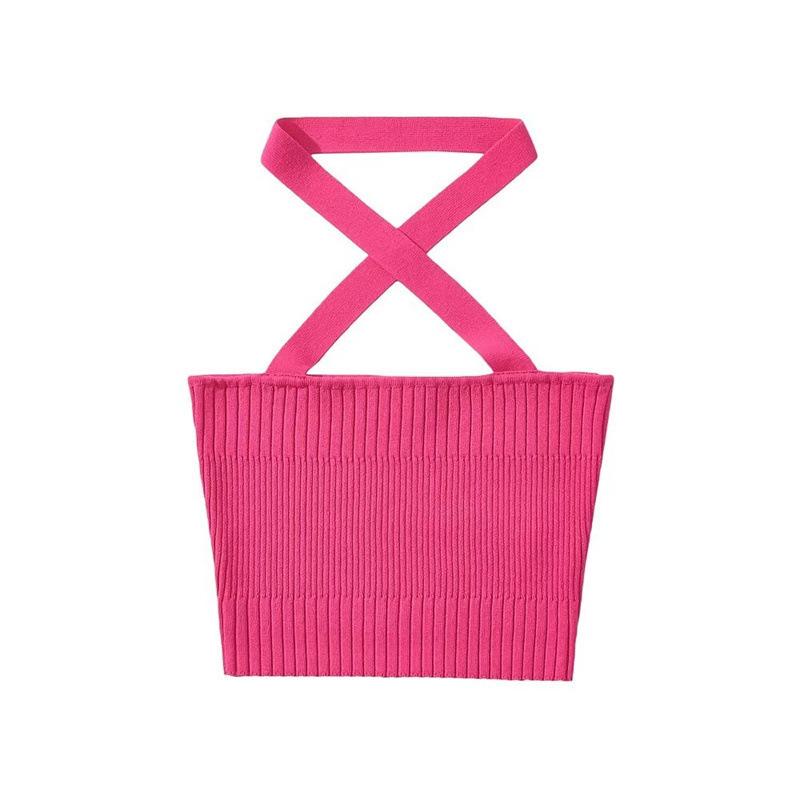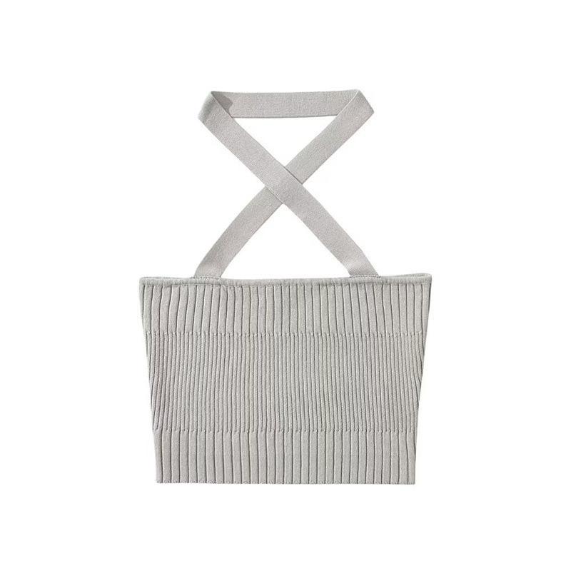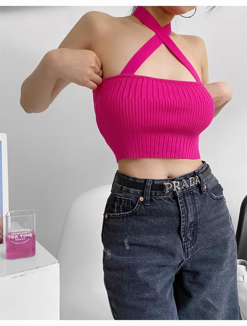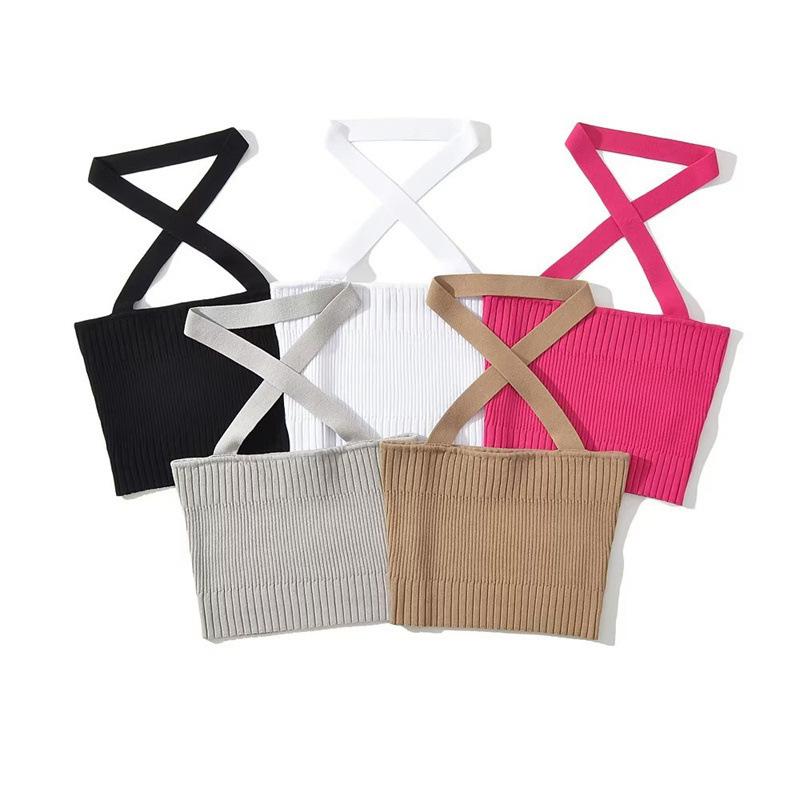 Chaleco Delgado de Color Sólido para Mujer Nuevo Estilo Puro Lujuria Cruz Halter Tirantes Sexy Chica Caliente Top Primavera 2023