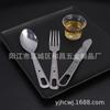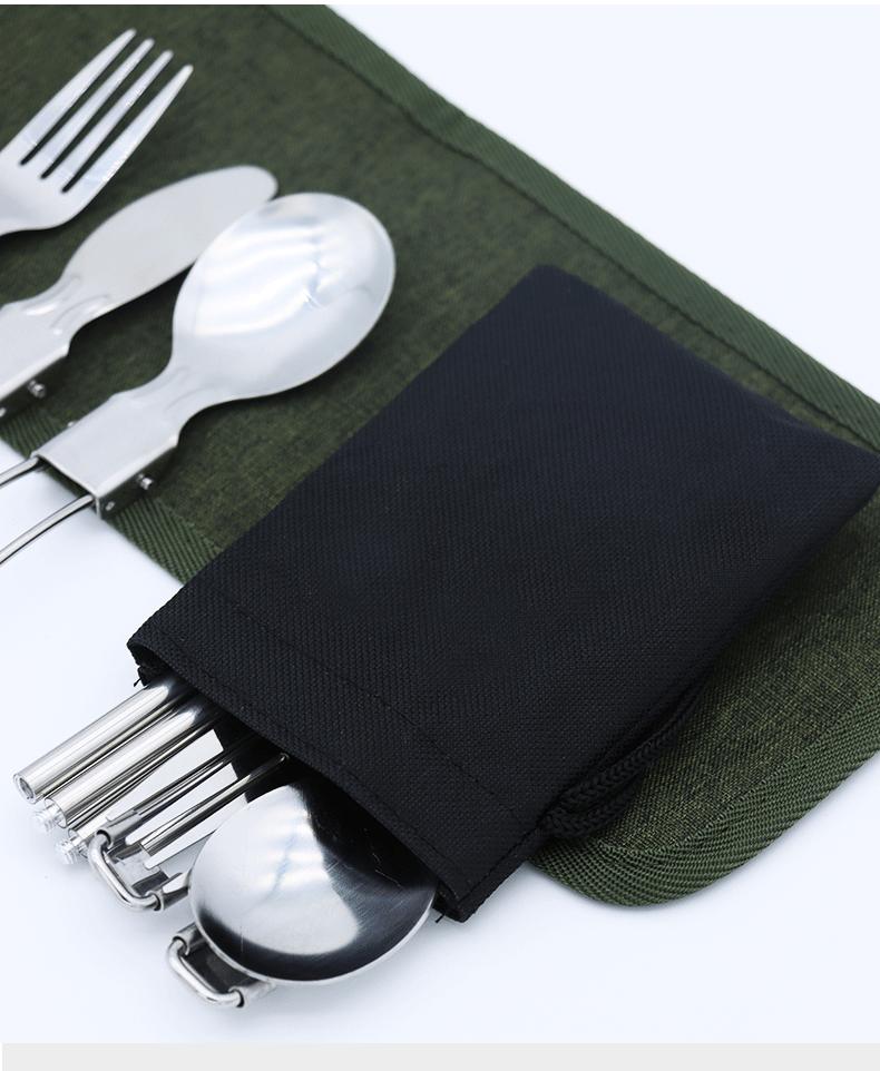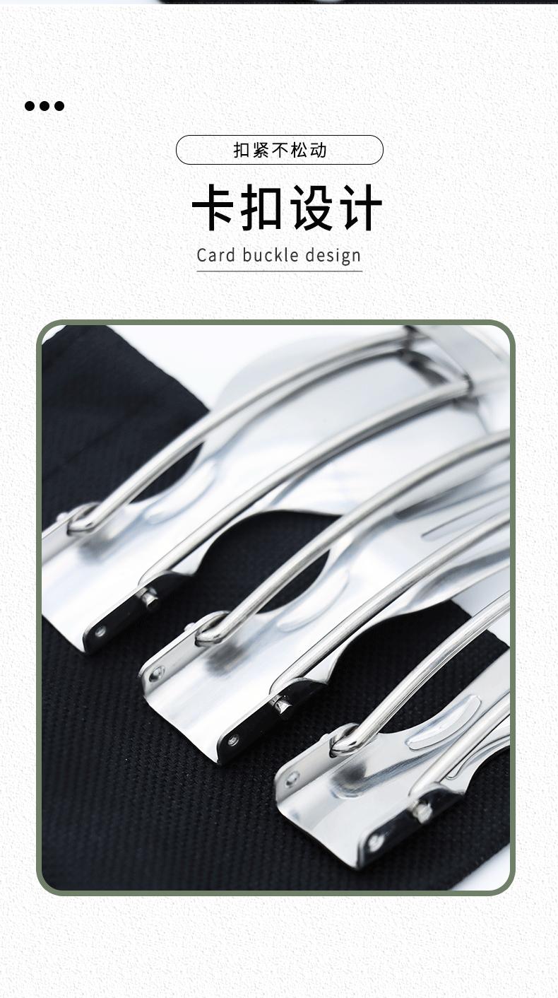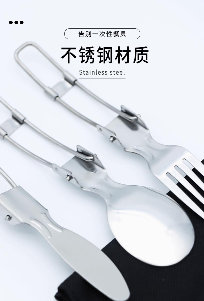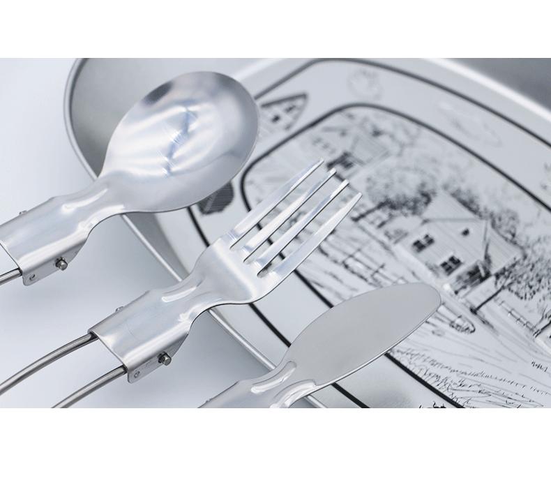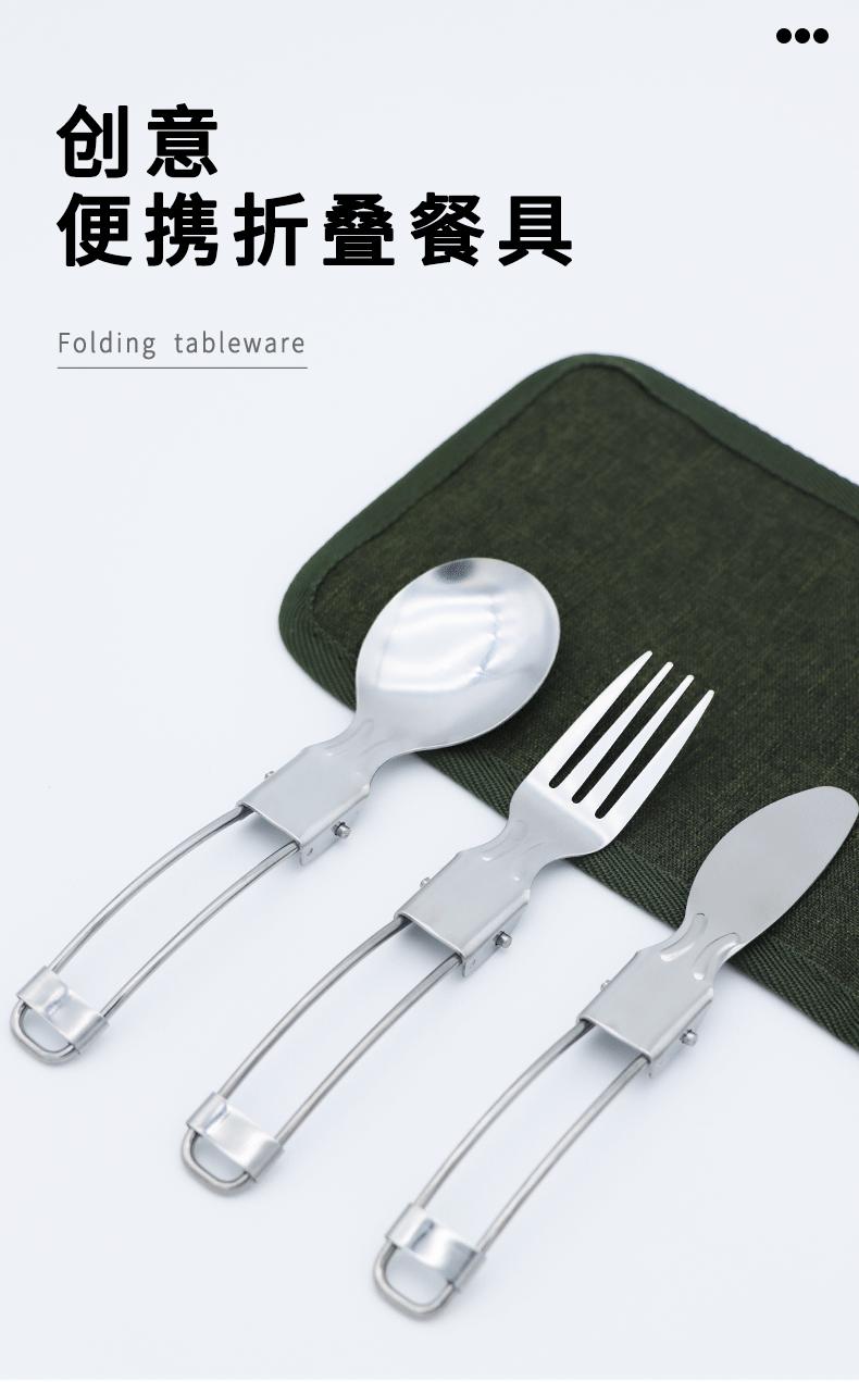 Vajilla de picnic para acampar al aire libre, vajilla de viaje plegable de tres piezas, juego de cuchillo, tenedor y cuchara plegables de acero inoxidable 430 para barbacoa
