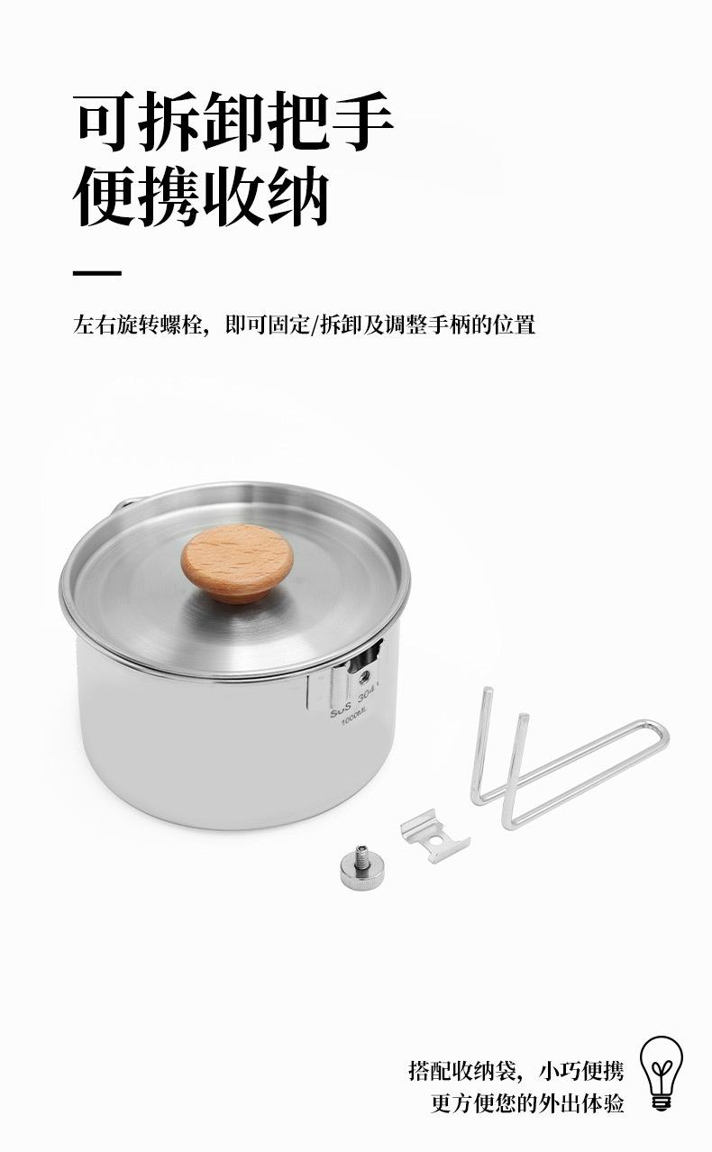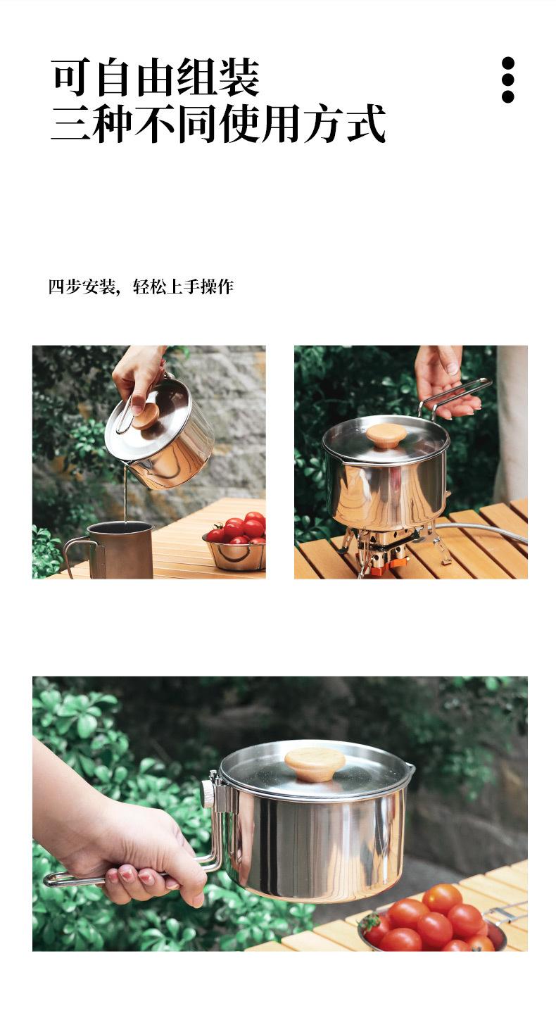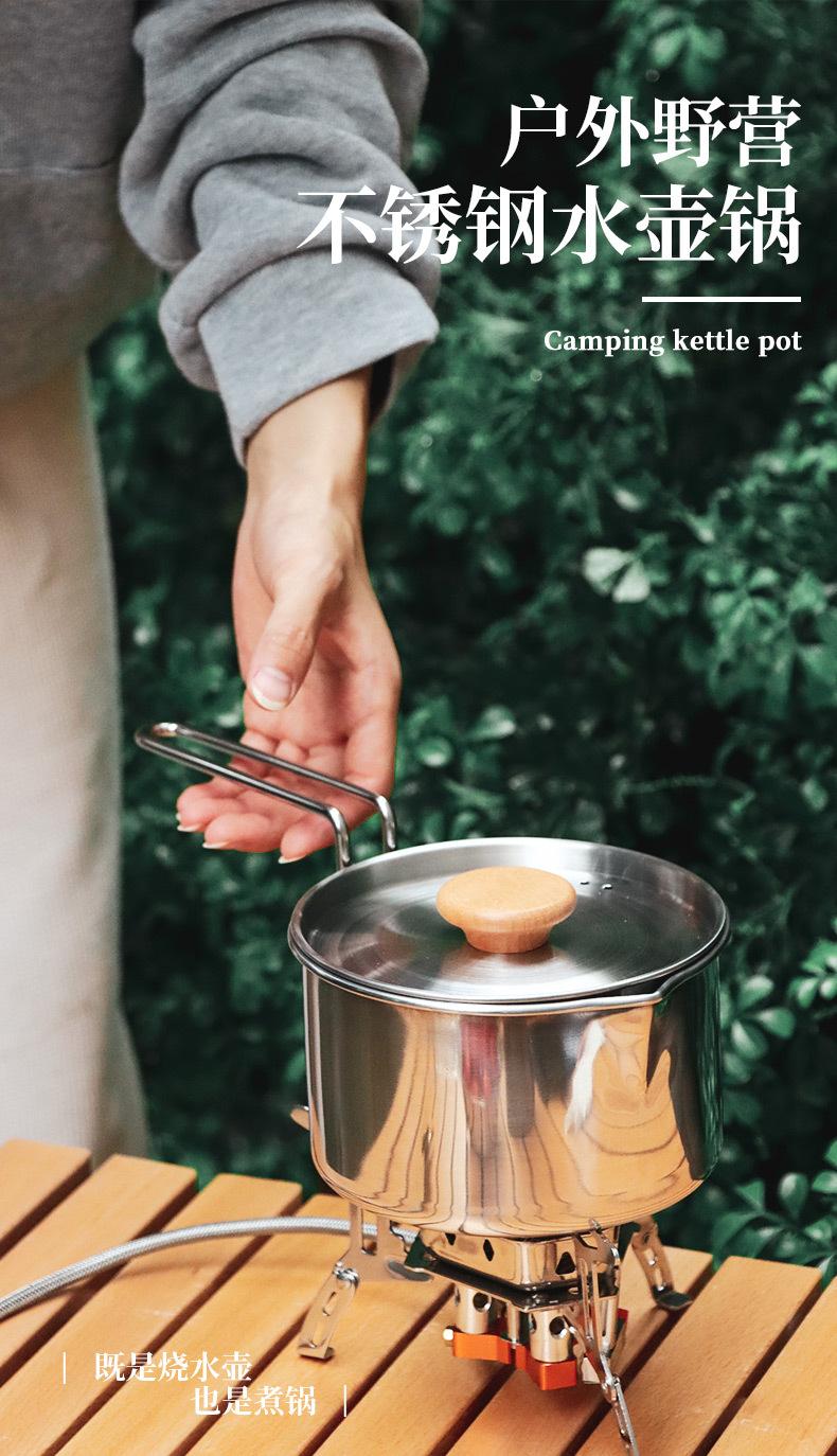 Hervidor portátil de acero inoxidable 304 para exteriores, multifuncional, plegable y desmontable, para acampar