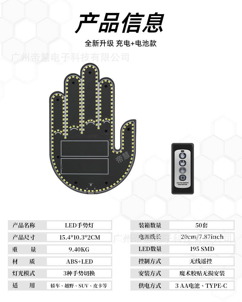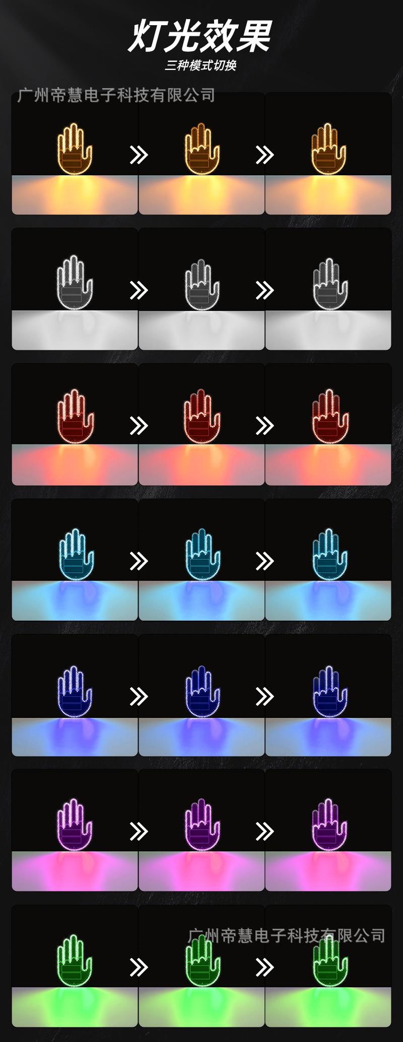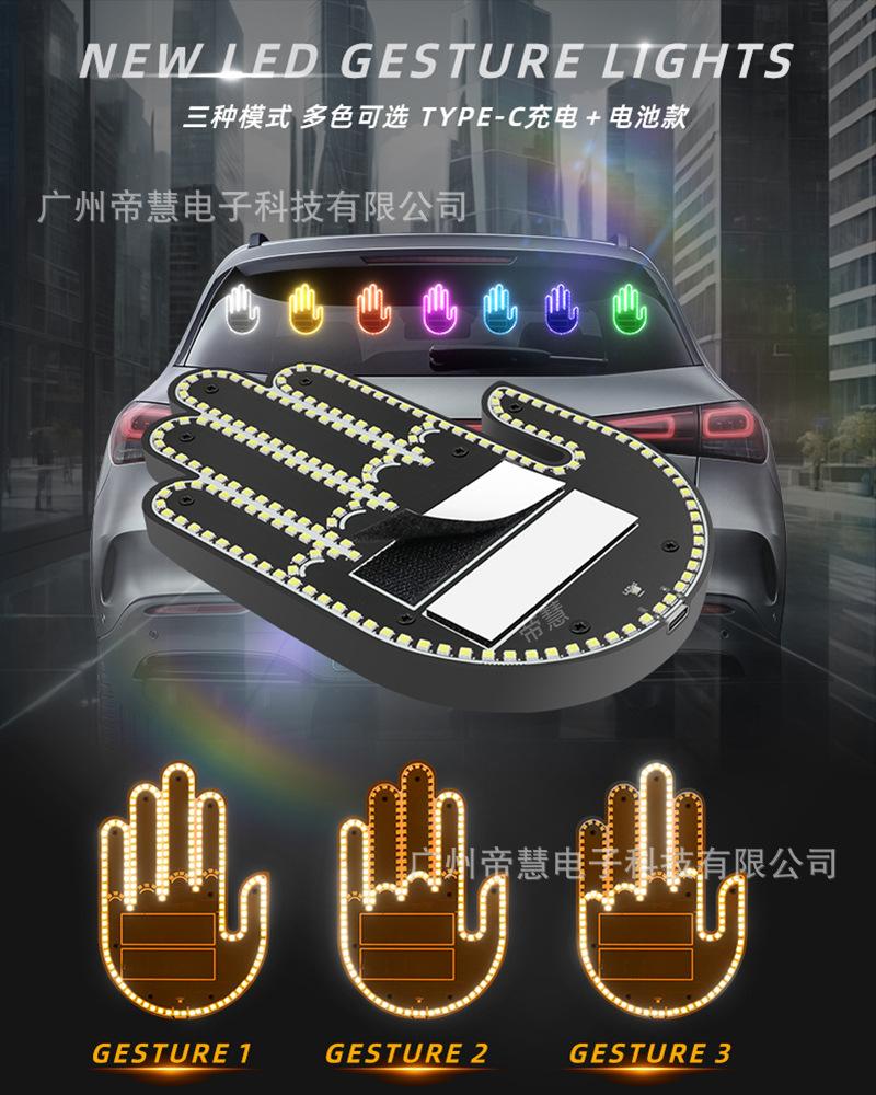 Nueva luz de palma de siete colores para coche, luz de gestos, luz de advertencia multifunción para coche, luz trasera antipersecución
