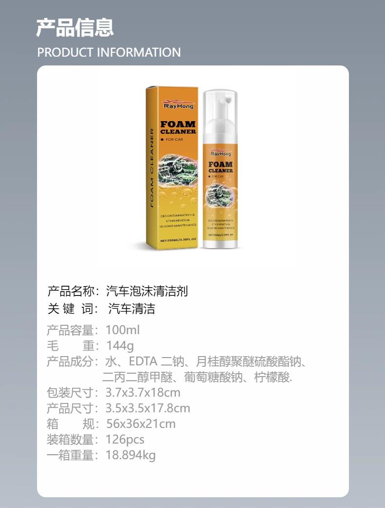 Rayhong Limpiador de Espuma para Coche Mantenimiento Interior de Coche Descontaminación Impermeable Mantenimiento Agente de Limpieza de Espuma