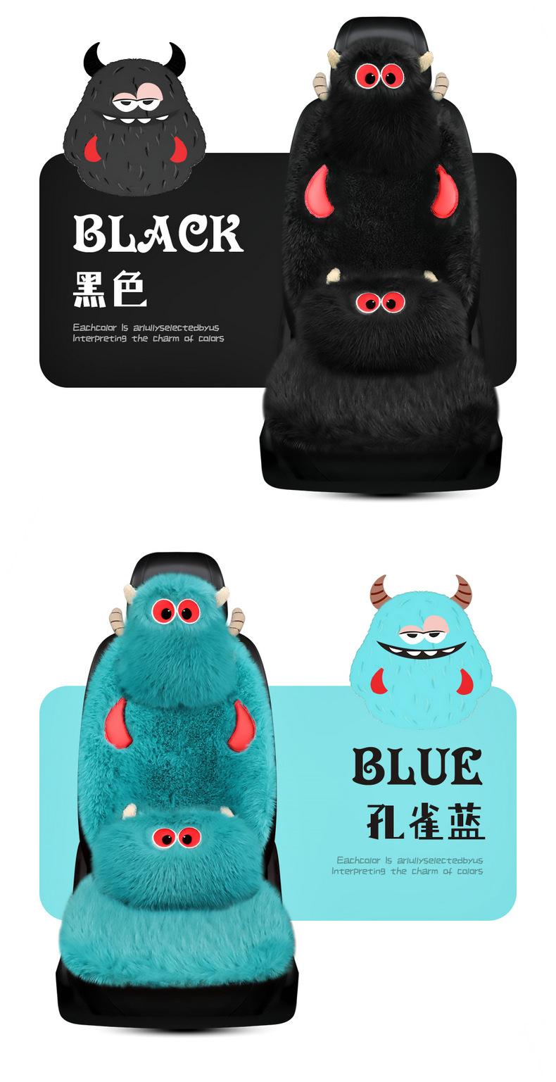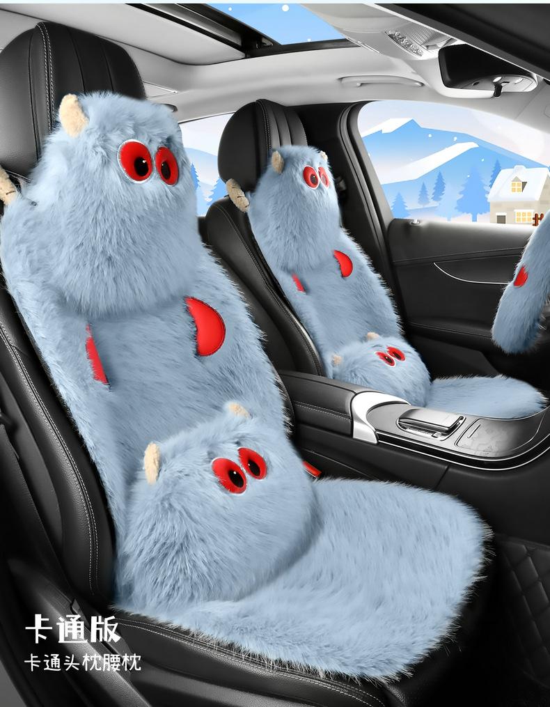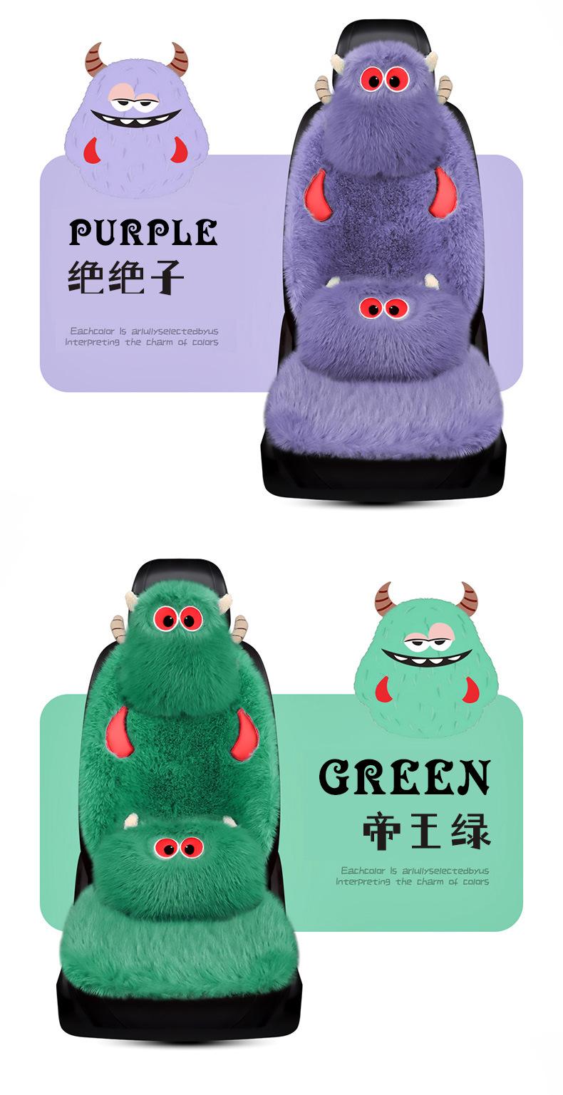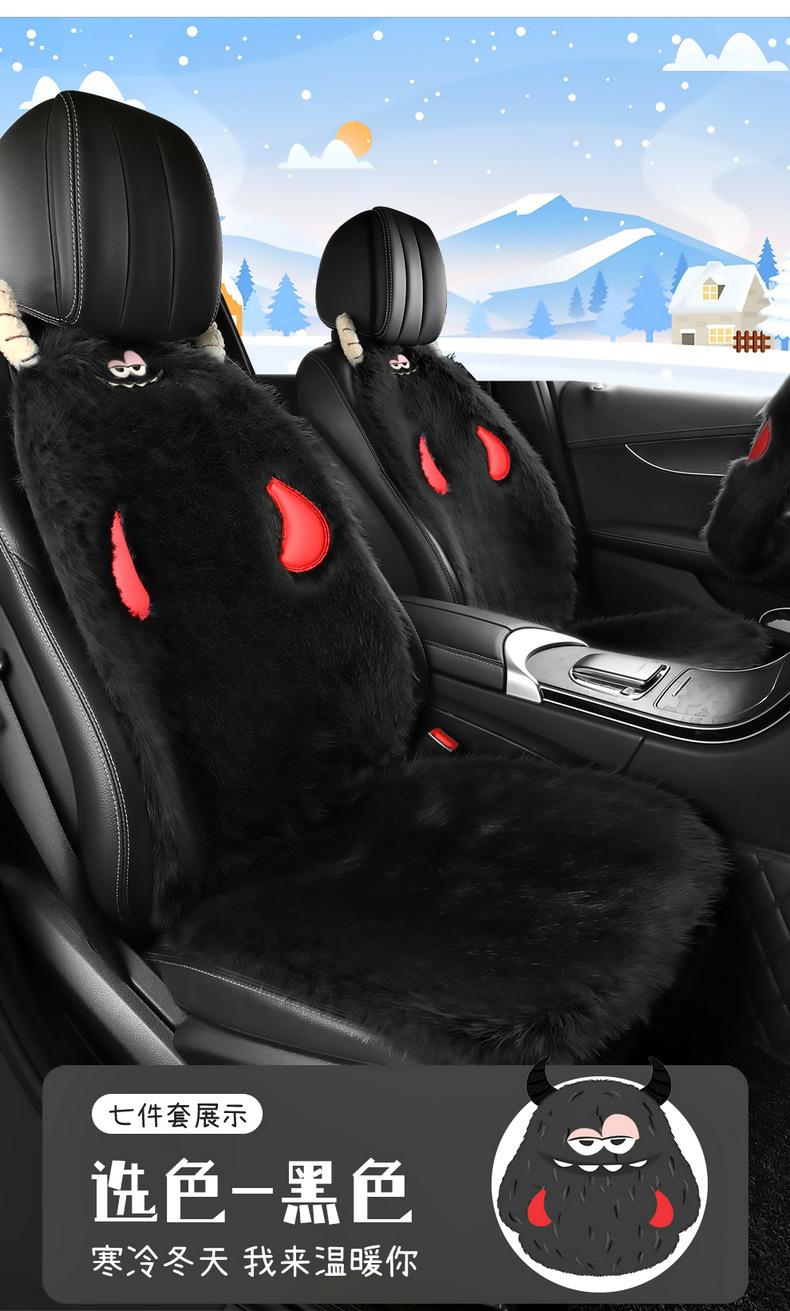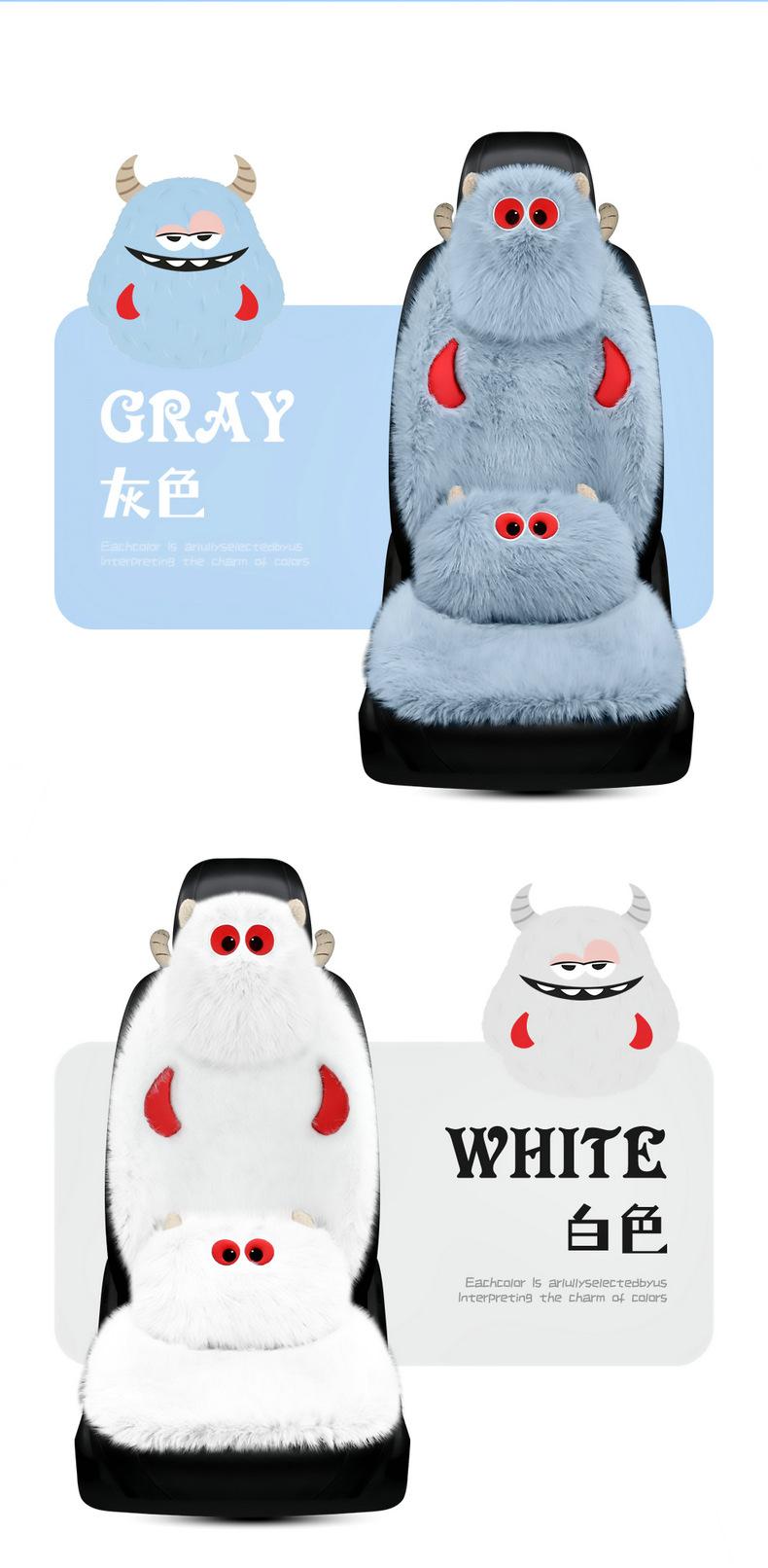 Boxeo Pequeño Monstruo Funda de Asiento Juego de Varias Piezas Universal Invierno Cómodo Felpa Lindo Divertido Universal Funda de Asiento