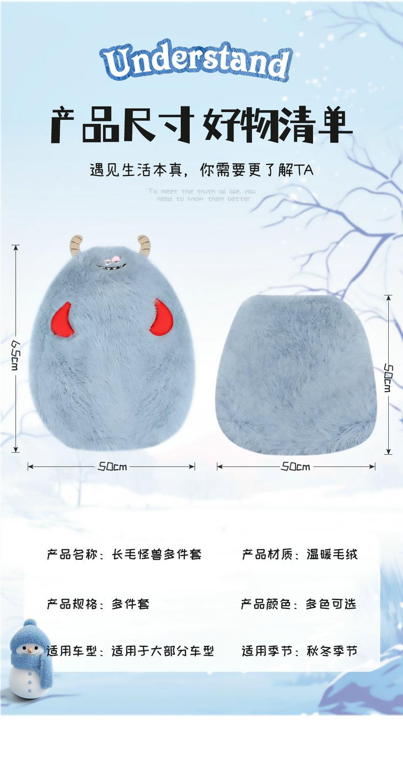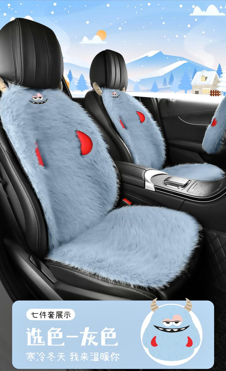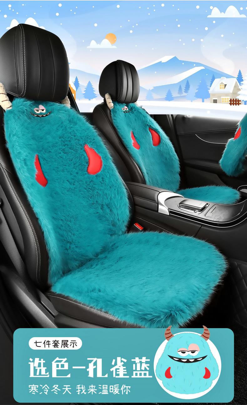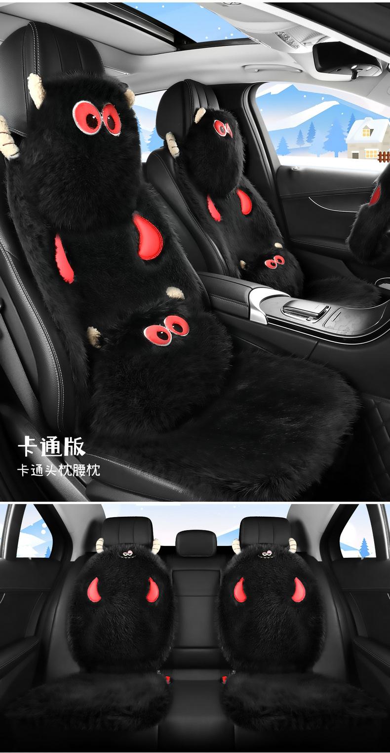 Boxeo Pequeño Monstruo Funda de Asiento Juego de Varias Piezas Universal Invierno Cómodo Felpa Lindo Divertido Universal Funda de Asiento