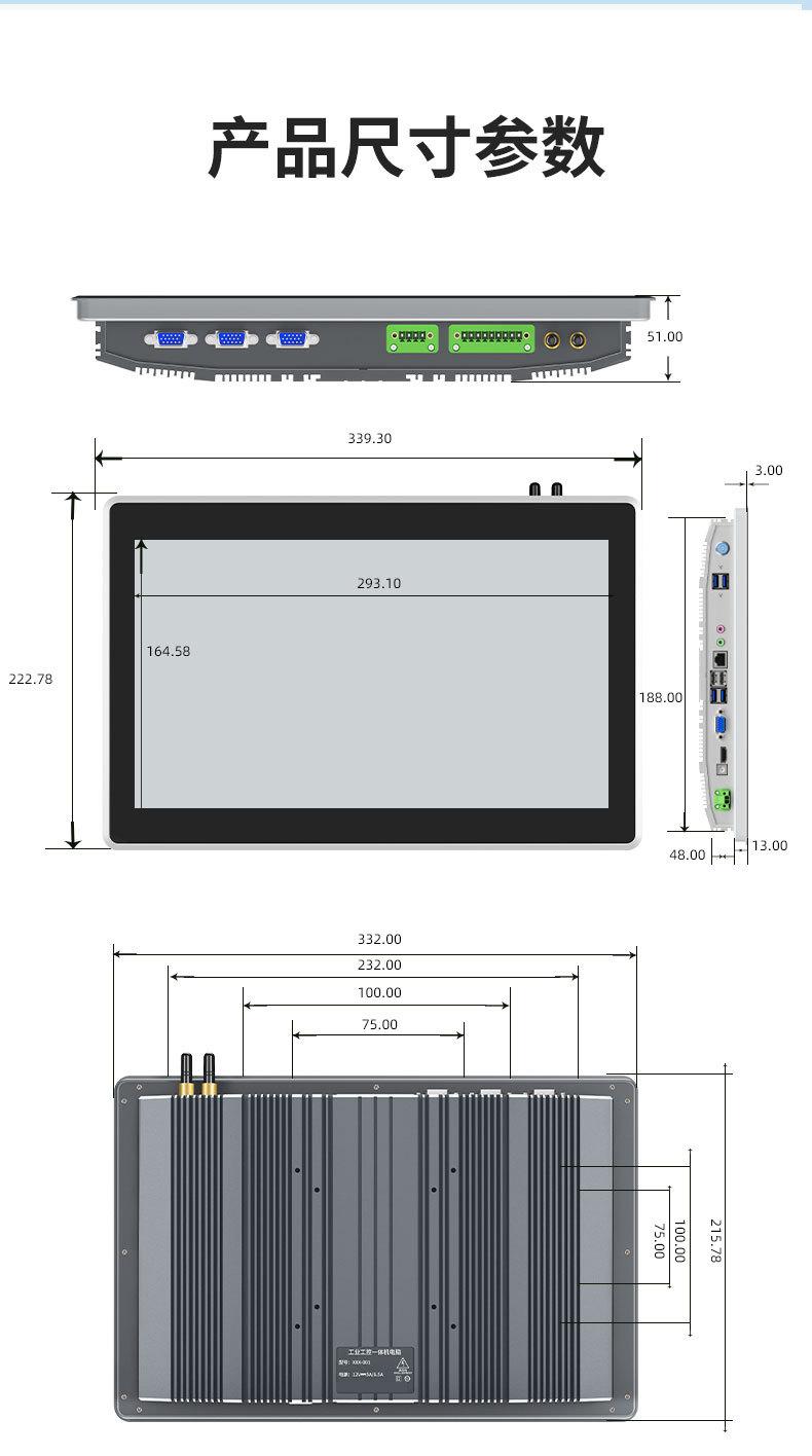 Computadora Tablet Industrial de 13.3 pulgadas Impermeable a Prueba de Polvo Anti-Interferencia Táctil Capacitiva Resistiva Control Industrial Máquina Todo-en-Uno Pantalla Táctil