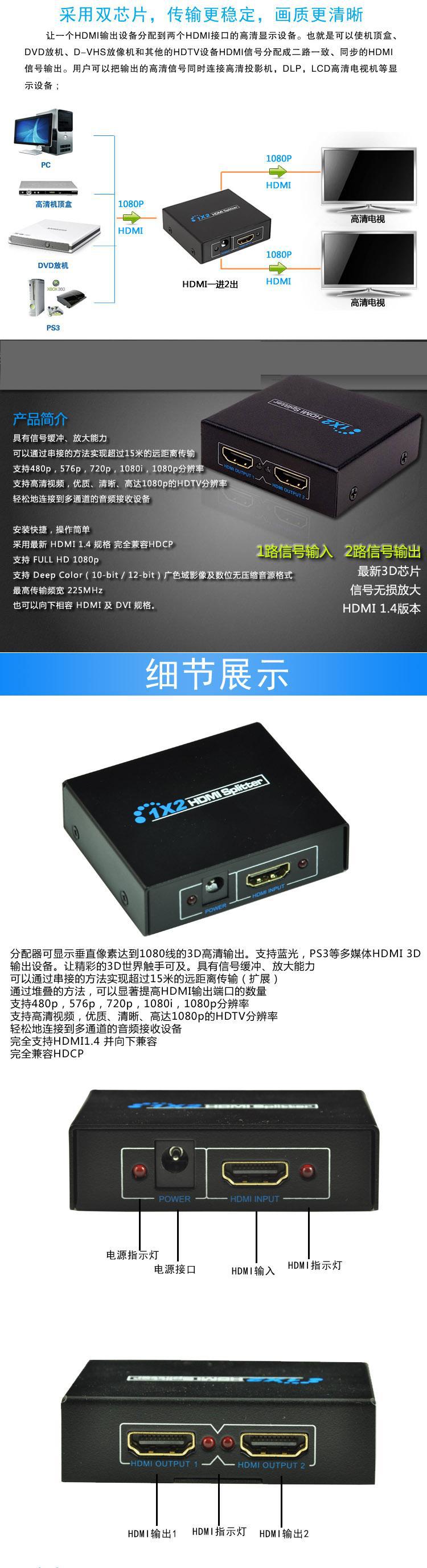 El distribuidor HDMI emite imágenes con un conteo máximo de píxeles verticales de 1080 líneas, cumpliendo con el estándar HDMI 1.4 y compatible con el protocolo HDCP.