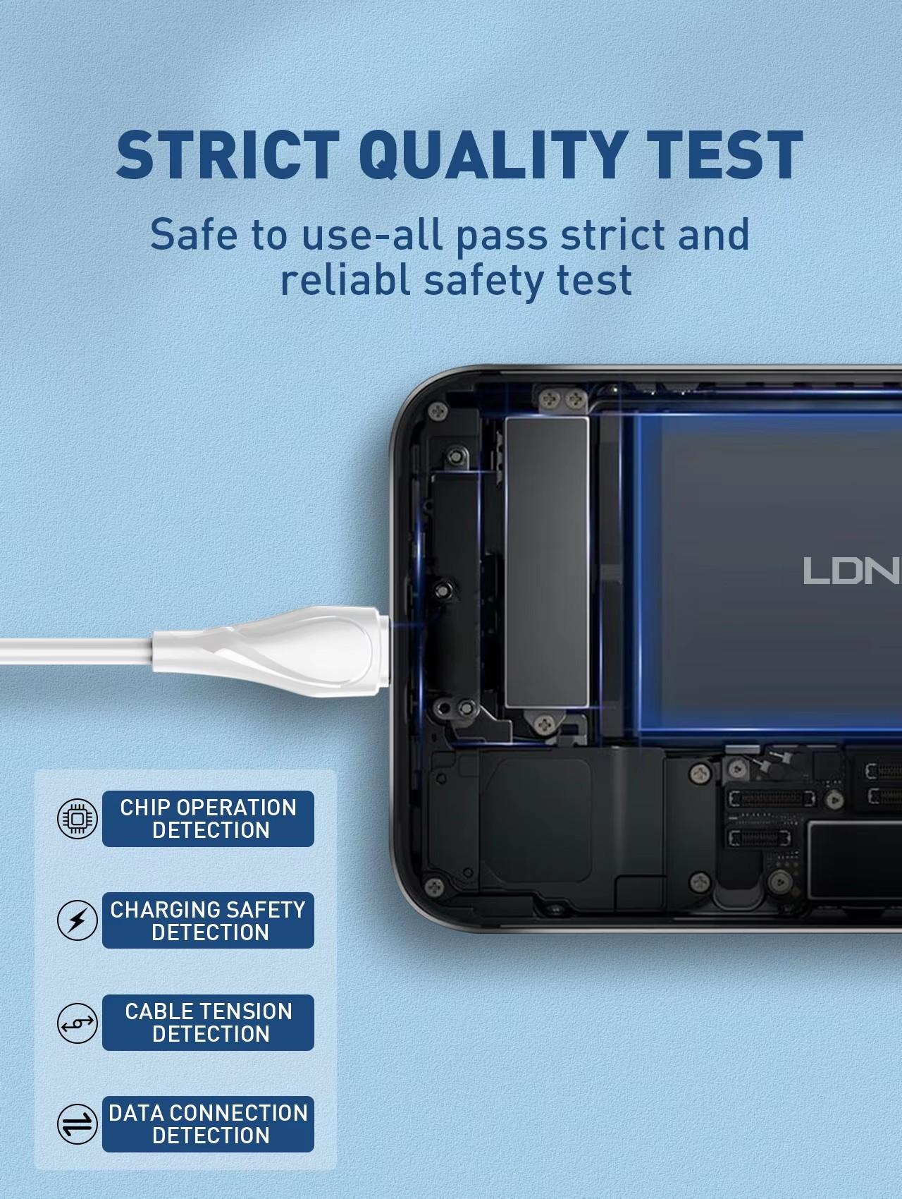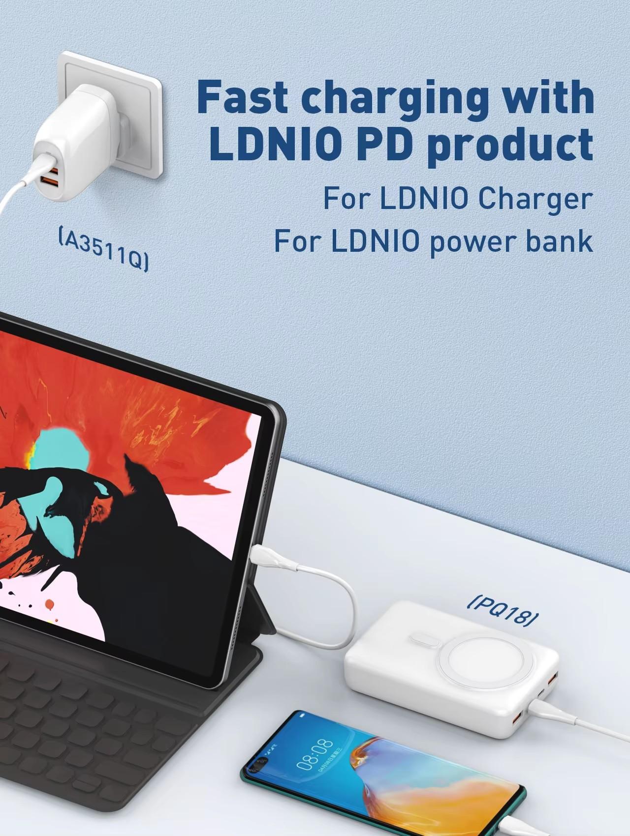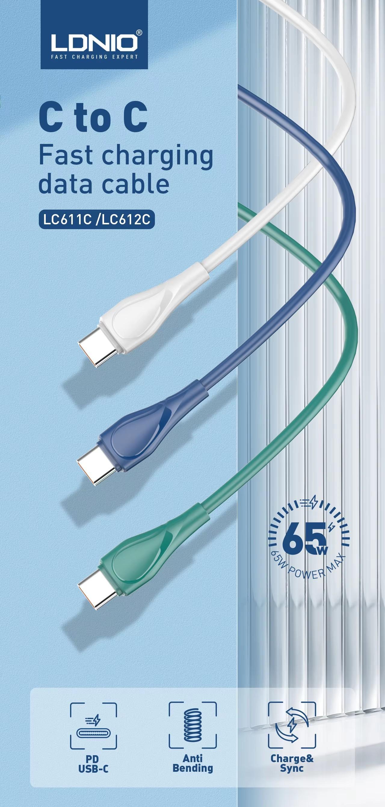 Cable de datos de carga para teléfono móvil LDNIO USB-C/PD65W Cable de carga rápida Tipo-C a carga flash Lightning 1