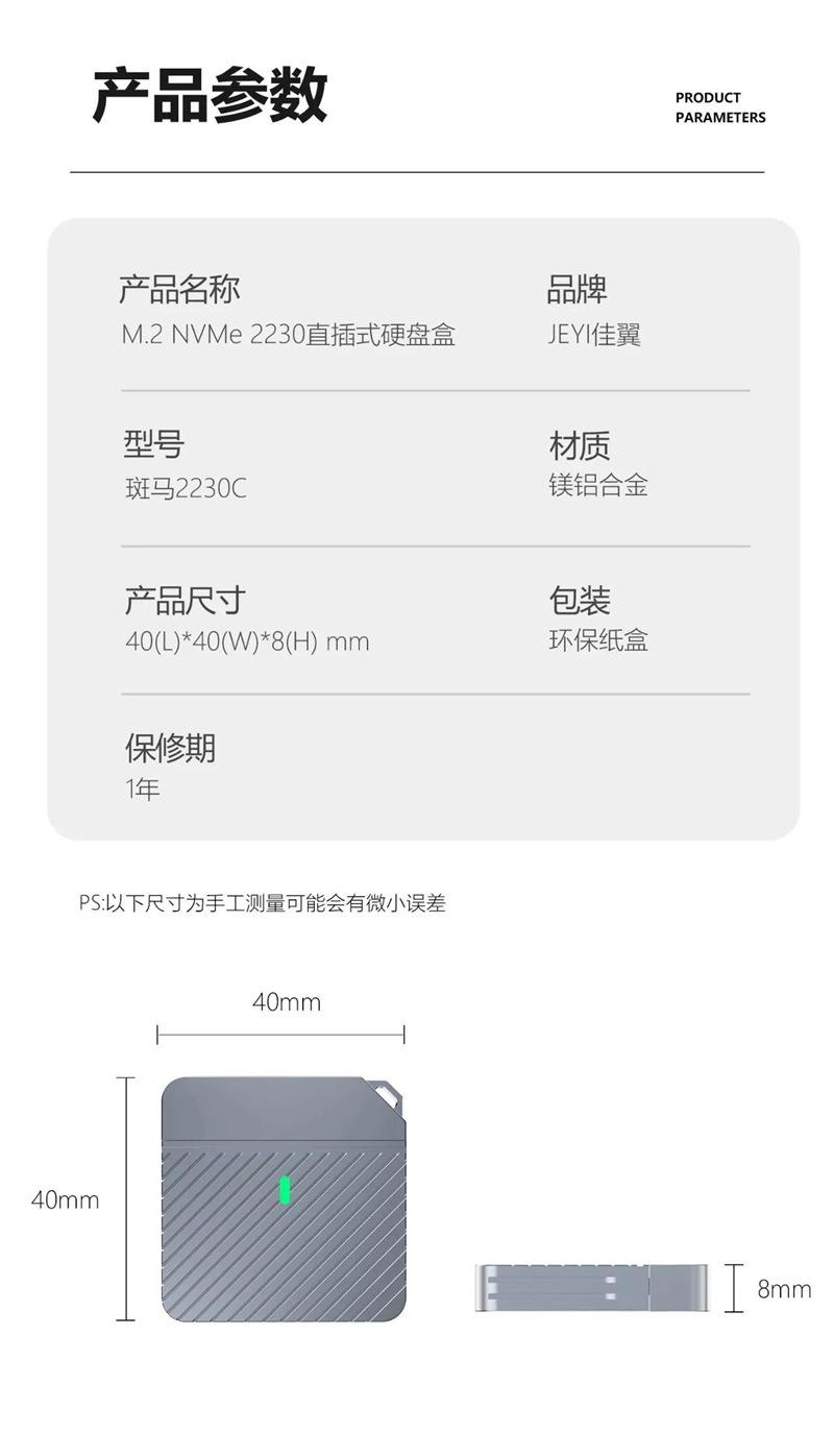 JEYI/Jiayi 2230 - Caja de disco duro sólido NVME M2 en línea, caja móvil externa tipo C M.2, SSD