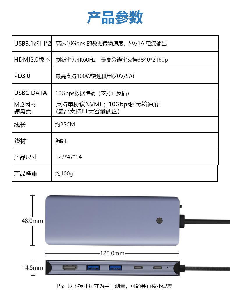 Usb3.2gen*2 10g+typec 10g+hdmi+pd+m.2 hard drive box