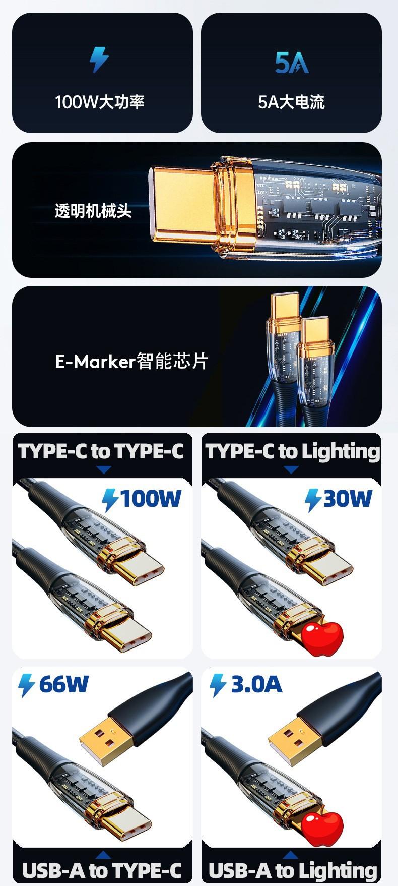 El primero: carga rápida de 100W [TYPEC A TYPEC] 175 hilos de cobre de precisión