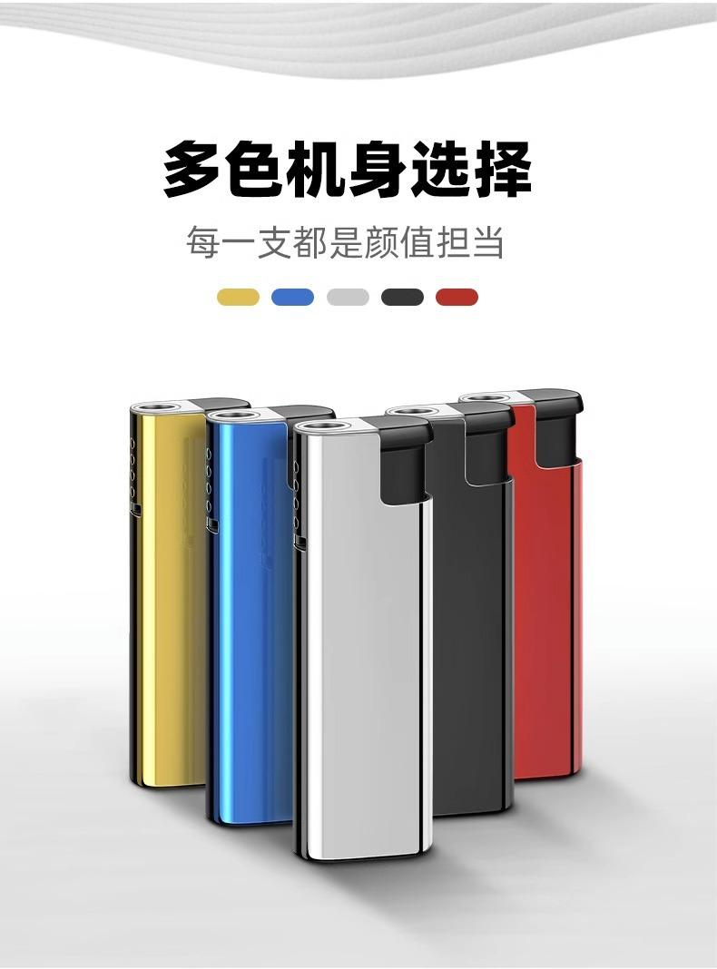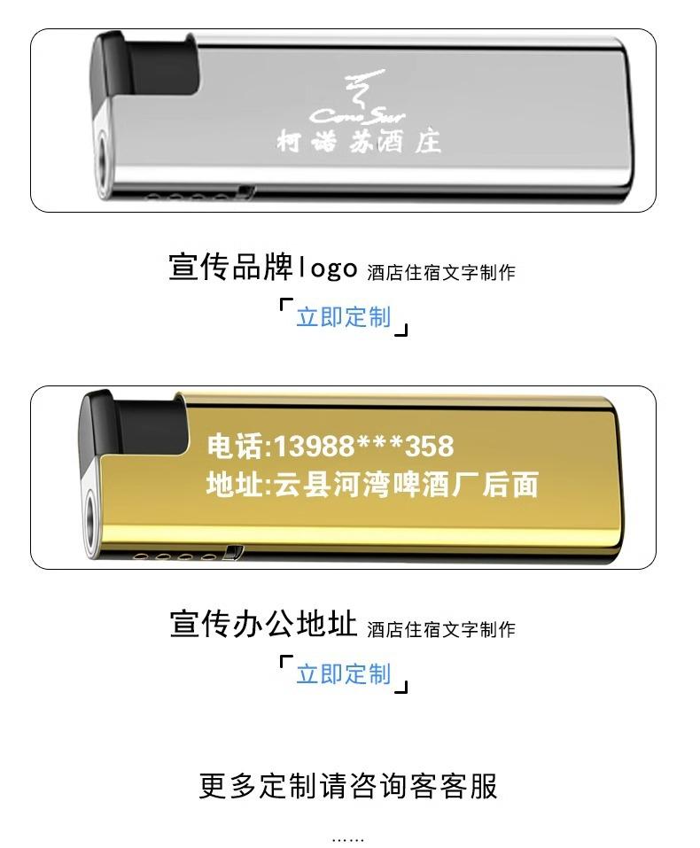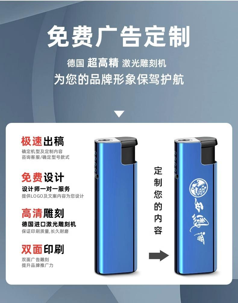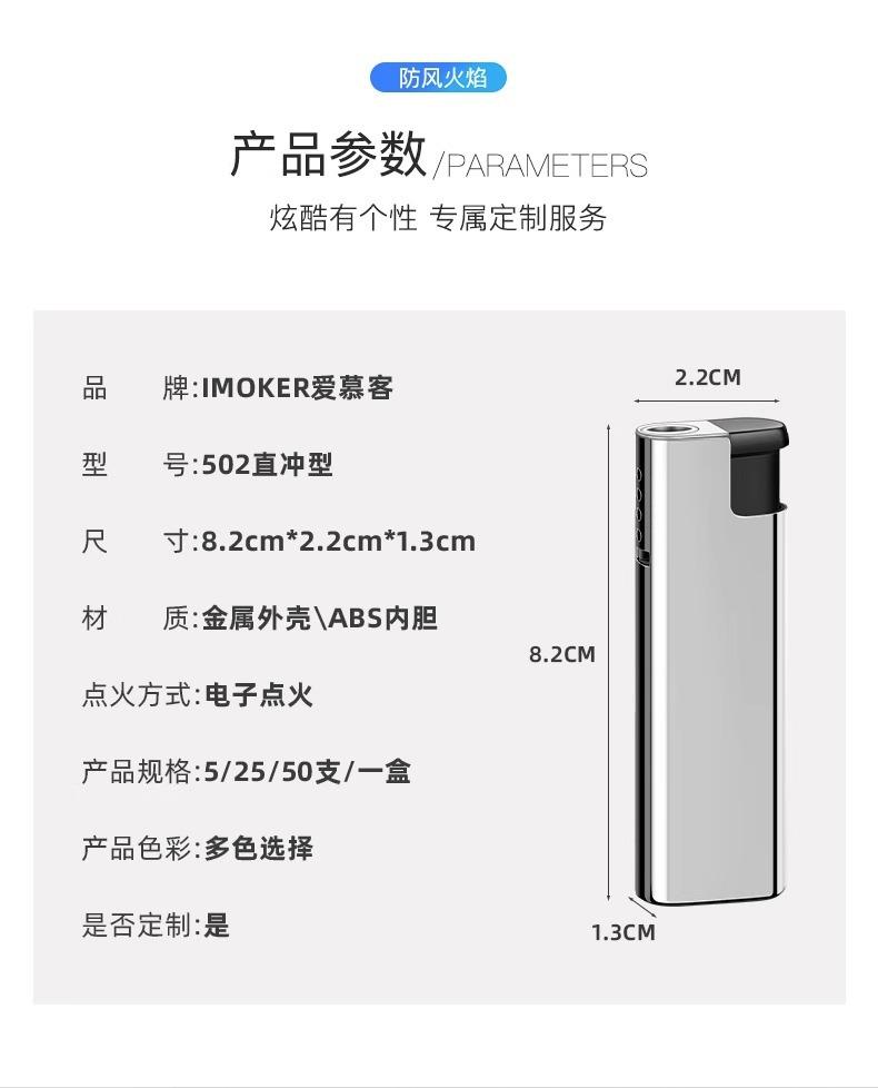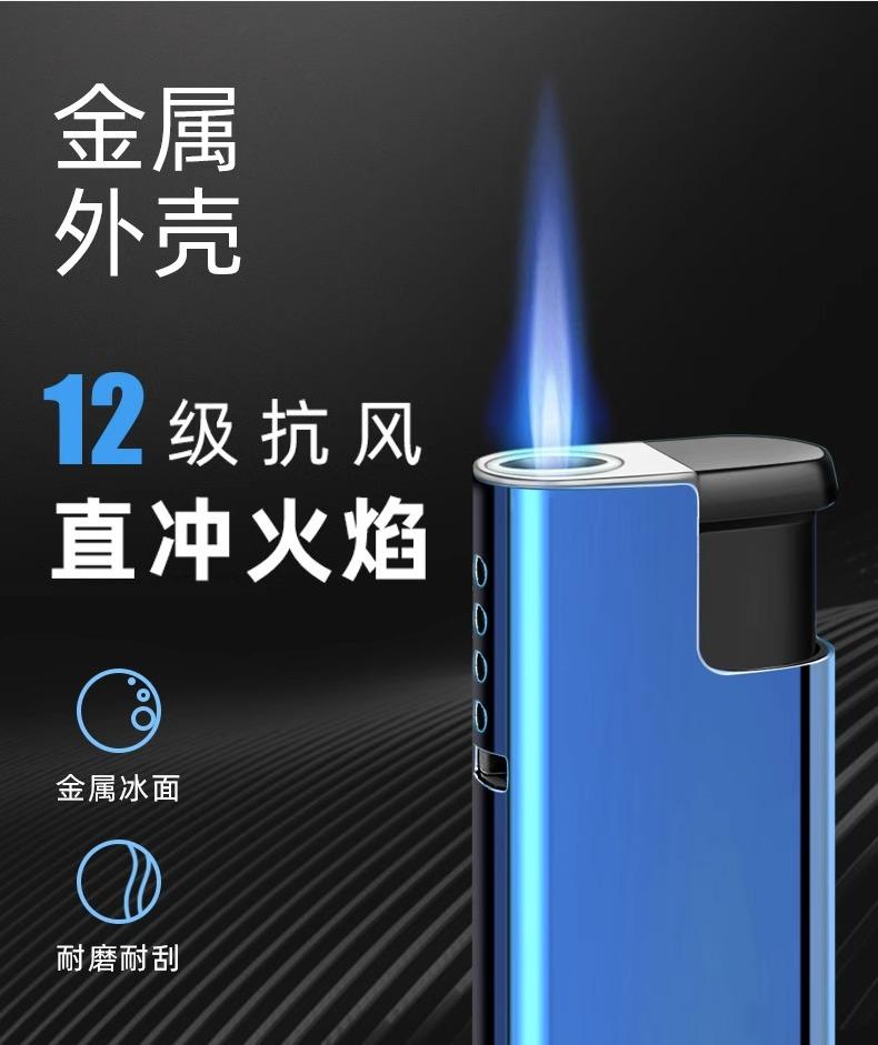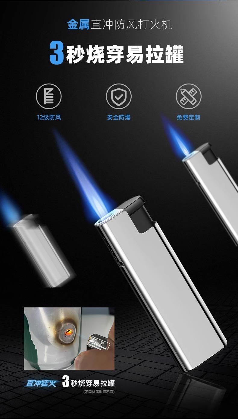 Encendedor de marca directa, a prueba de viento, de metal recto, desechable, de alta calidad, para uso doméstico, con impresión personalizada.