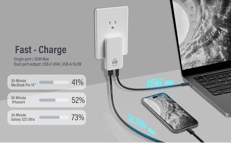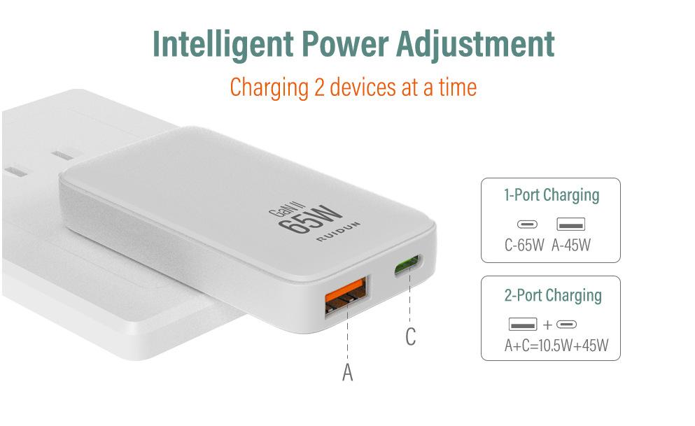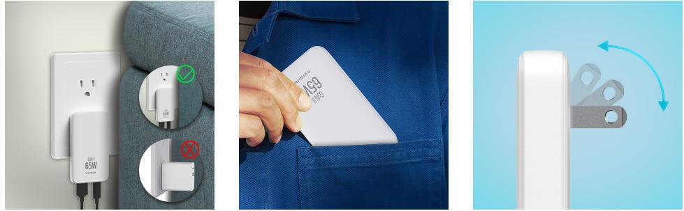 Cabezal de carga GaN de carga rápida de 65 W de nitruro de galio, calibre estadounidense, interruptor de computadora para teléfono móvil, cabezal de carga portátil ultrafino, fuente de alimentación