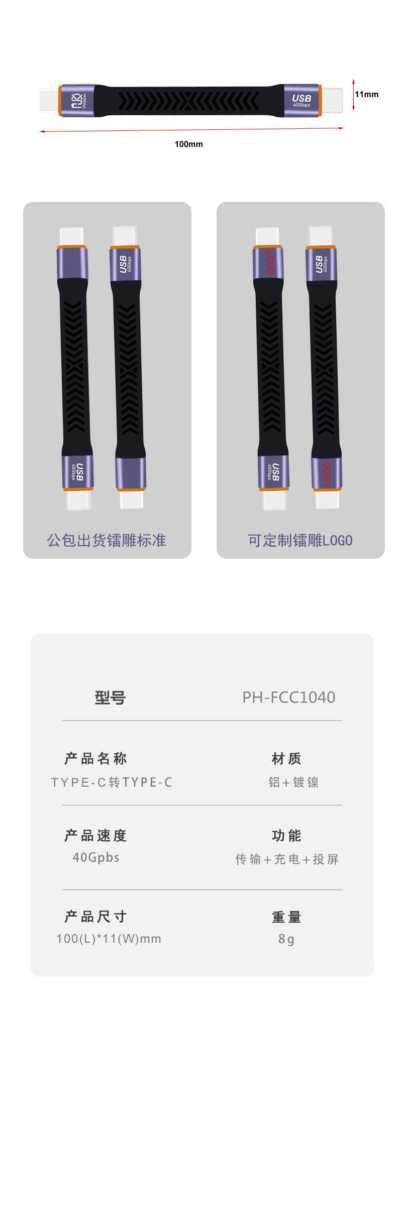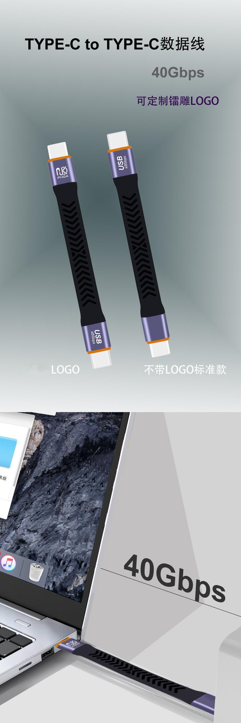 Cable de datos Tipo-c Adaptador USB3.2 Gen2 macho a macho Cable plano suave de extensión USB3 40G alta velocidad carga rápida