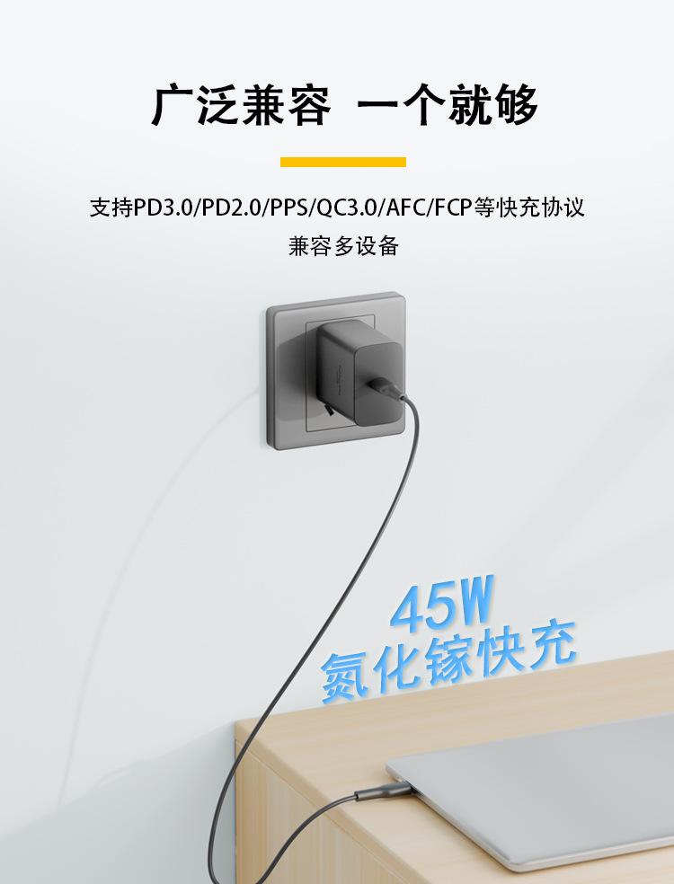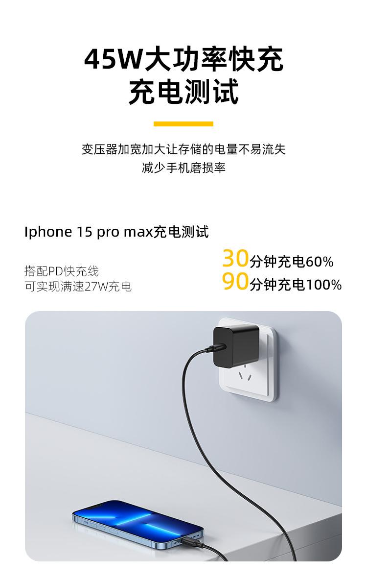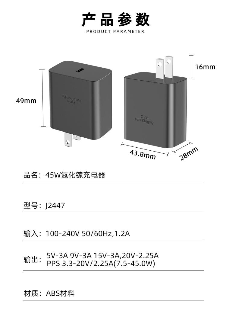 Cargador de Nitruro de Galio Pd45W Estándar Estadounidense Cabezal de Carga Rápida Adecuado para Teléfonos Móviles Apple y Samsung Tecnología de Galio Carga Rápida Pd