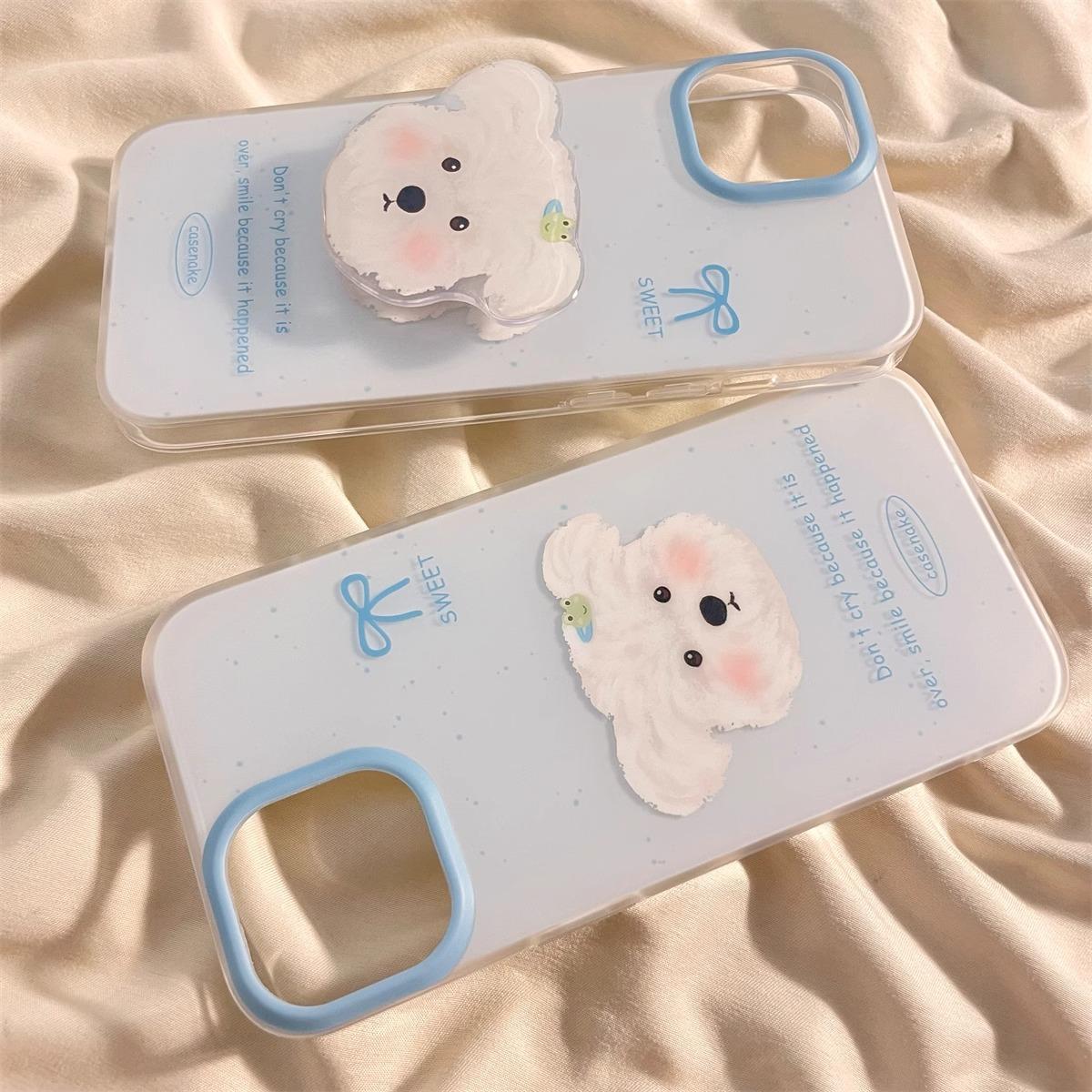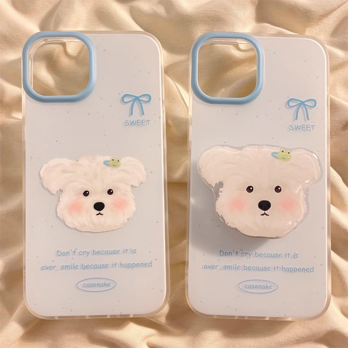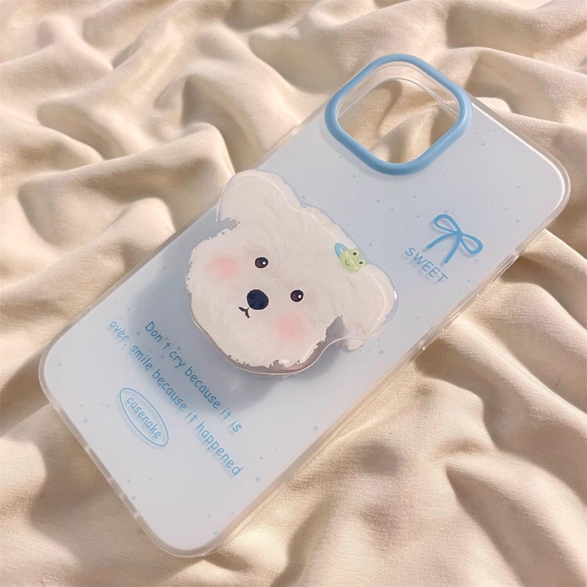 Lindo Soporte de Cachorro Sonrojado para Funda de Teléfono Apple 16promax iPhone15 Dibujos Animados 14 Niñas 13 Coreano