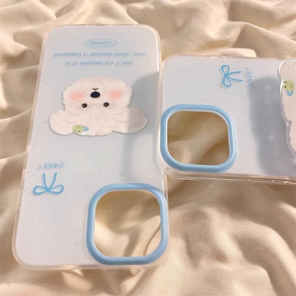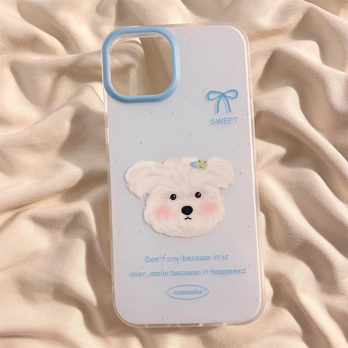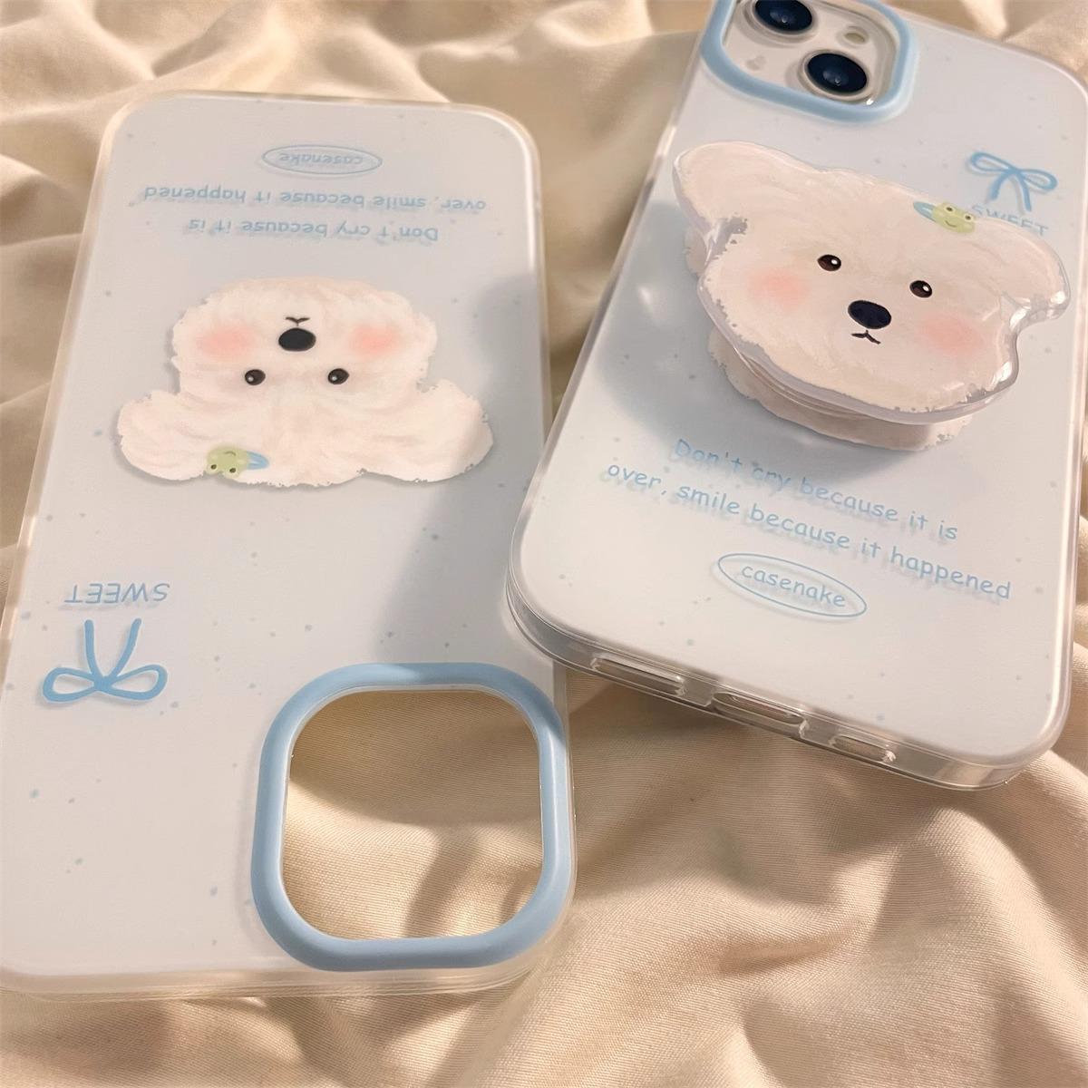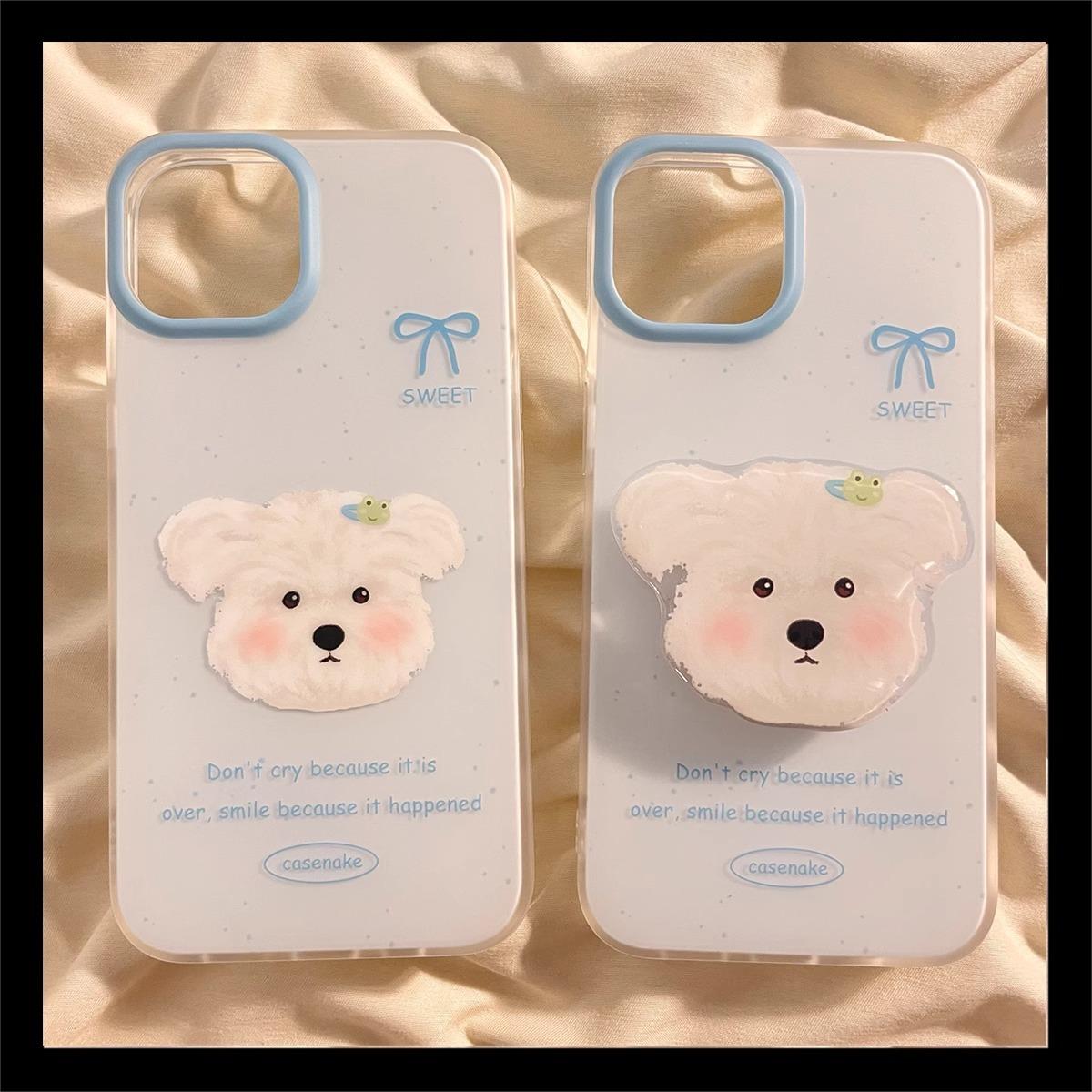Lindo Soporte de Cachorro Sonrojado para Funda de Teléfono Apple 16promax iPhone15 Dibujos Animados 14 Niñas 13 Coreano