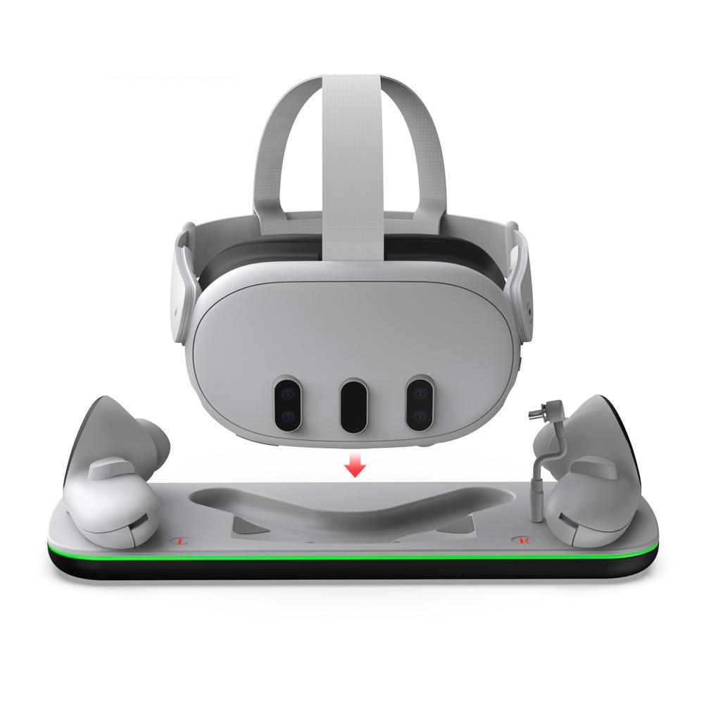 Diseño dedicado: Compatible con el diseño del visor VR Quest3/Q3S, admite la carga del visor VR y los mandos izquierdo y derecho.