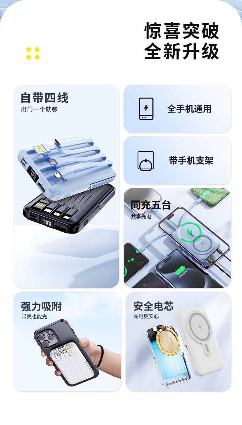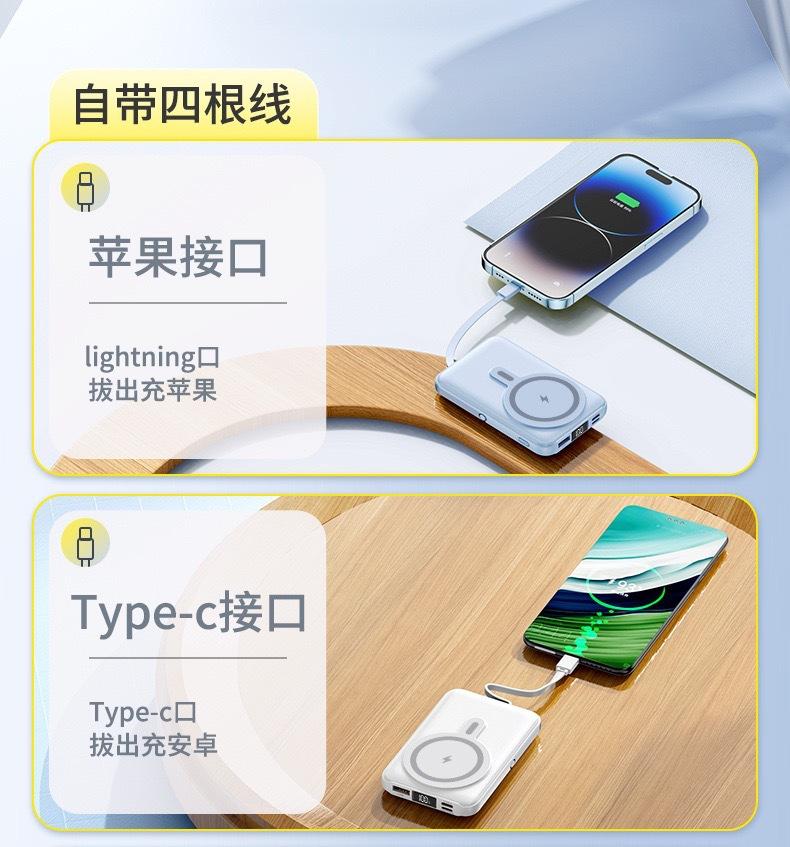 Nuevo cargador inalámbrico magnético de 10000 mA para reloj, teléfono móvil, carga rápida universal, fuente de alimentación móvil portátil de 22,5 W