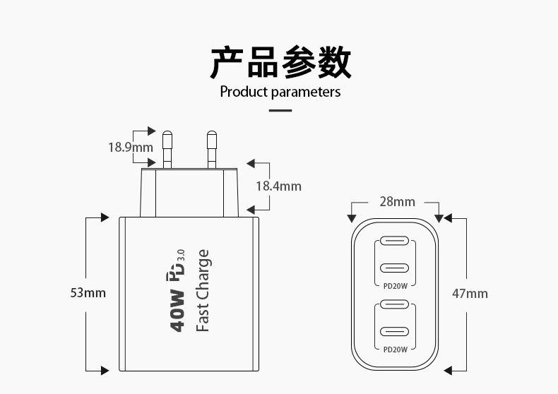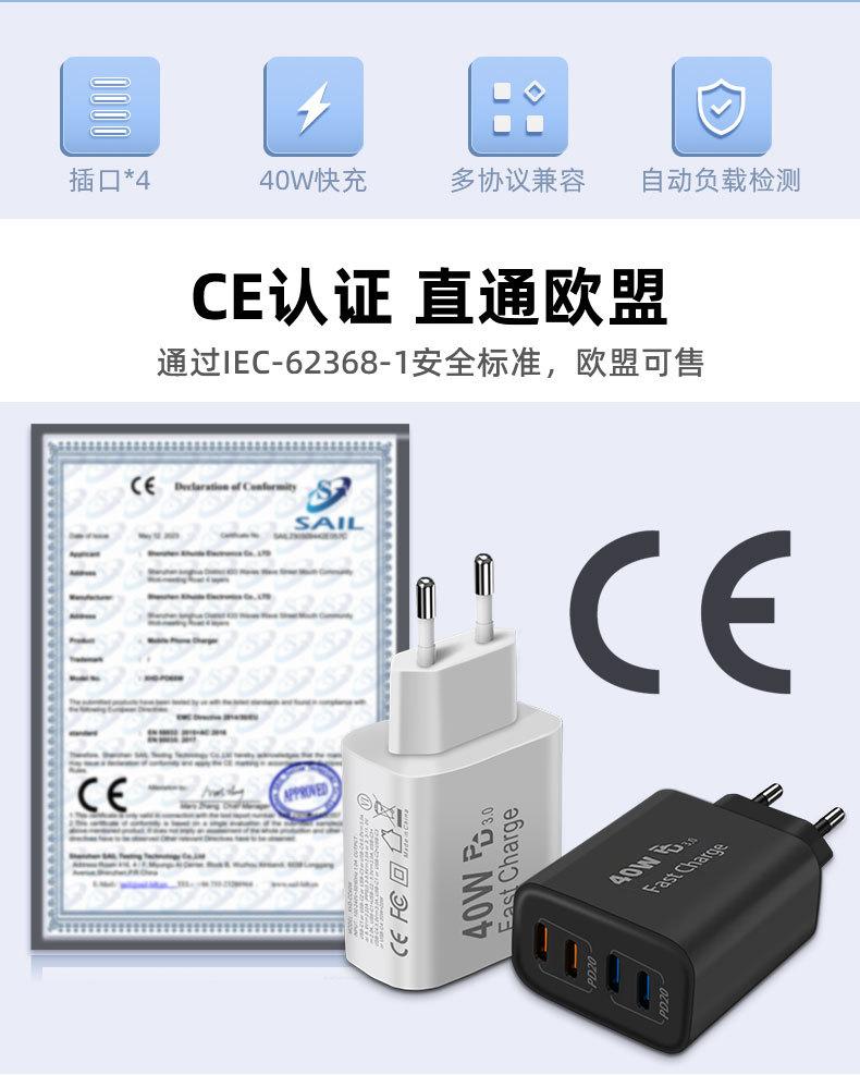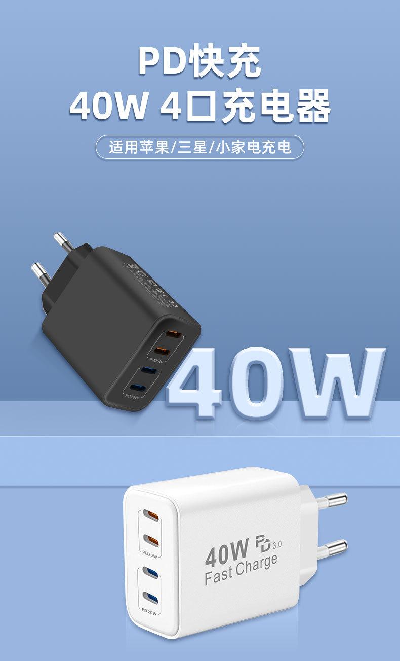 Cargador Apple de 40W transfronterizo Regulaciones Europeas Aplicables a Apple 16 Samsung S24 Huawei Tablet Notebook Cabezal de Carga Rápida