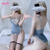 Camisón de satén de gasa con bordado para mujer, ropa interior sexy con encaje dividido, conjunto de uniforme de tentación y pasión