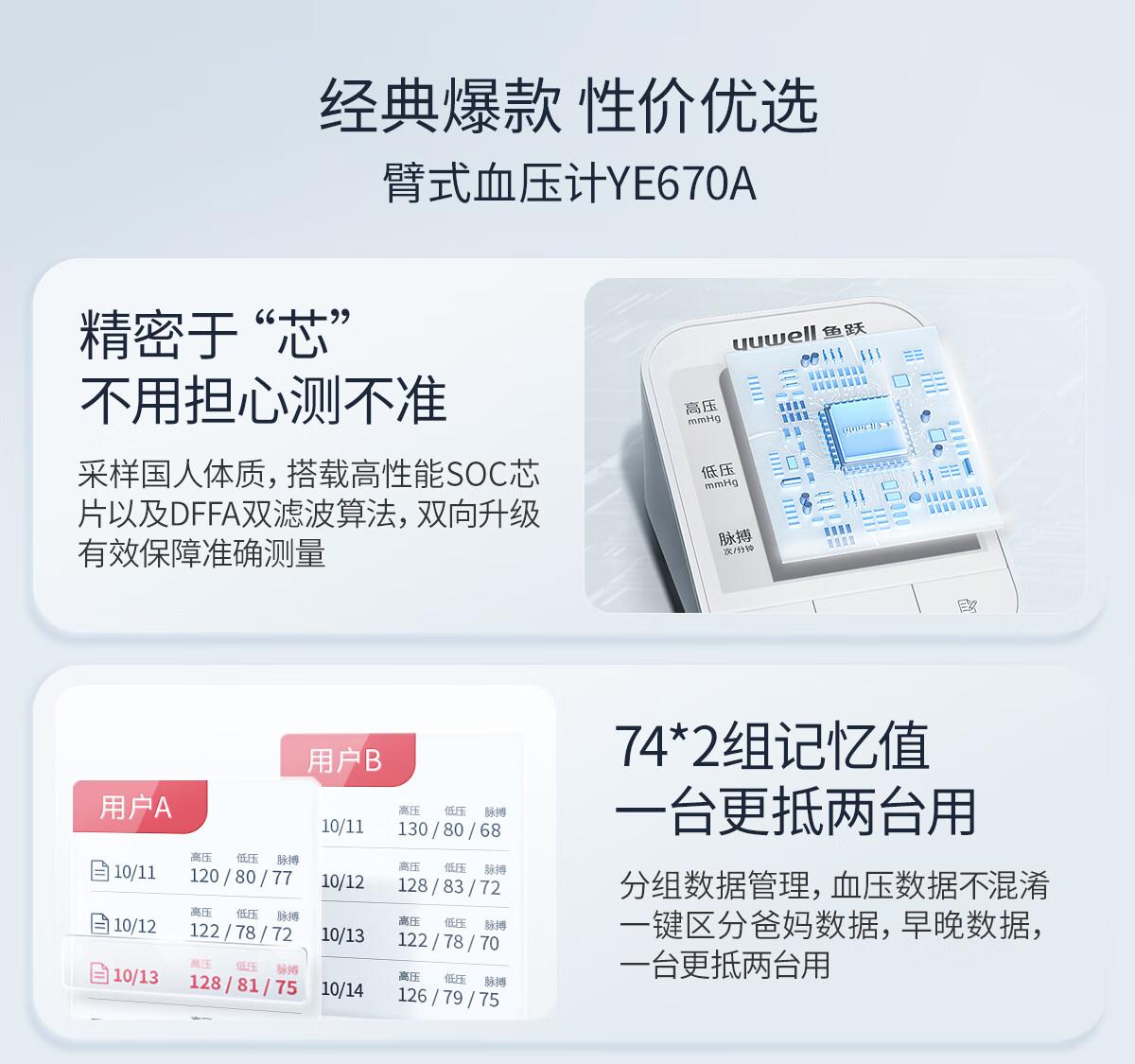Esfigmomanómetro electrónico Yuyue 670A, tensiómetro médico para el hogar, tensiómetro de precisión para ancianos y familias.