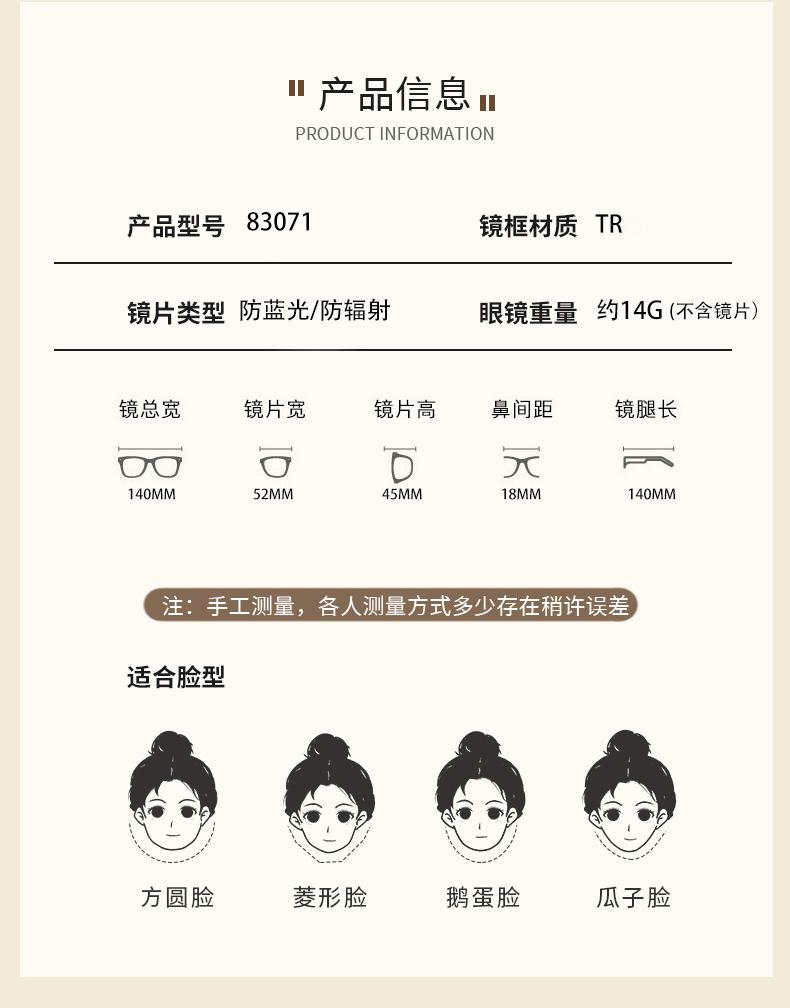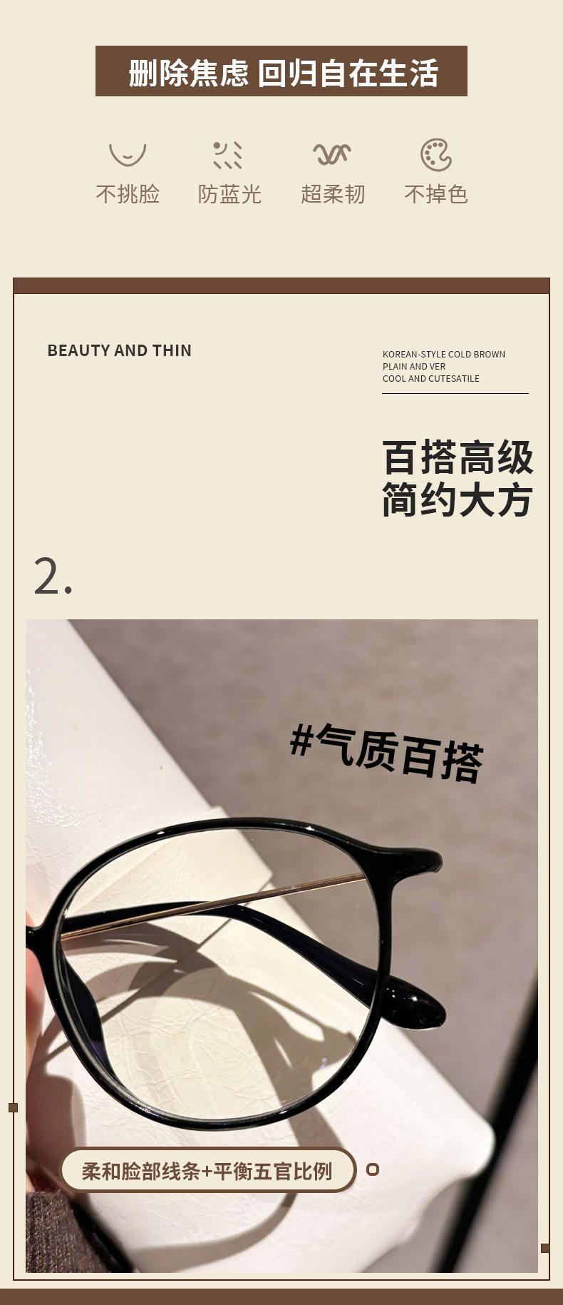 Gafas de miopía TR ultraligeras coreanas para mujer, con protección contra la radiación de luz azul, montura redonda y lisa de color marrón arena para rostro pequeño de hombre.