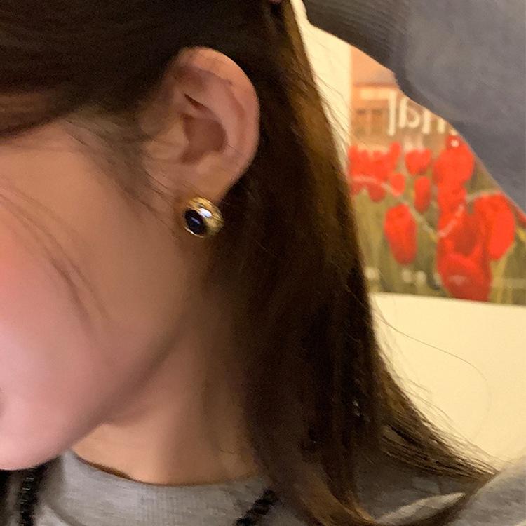 Aretes de botón de metal con circonita de alta calidad para mujer, diseño de nicho, personalidad retro, simples, versátiles, temperamento, aretes de moda