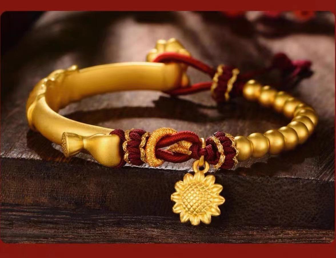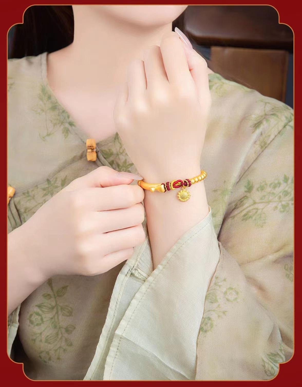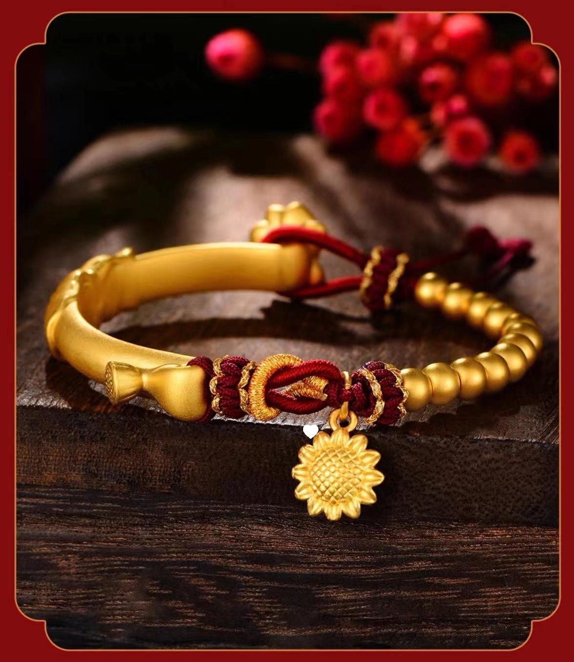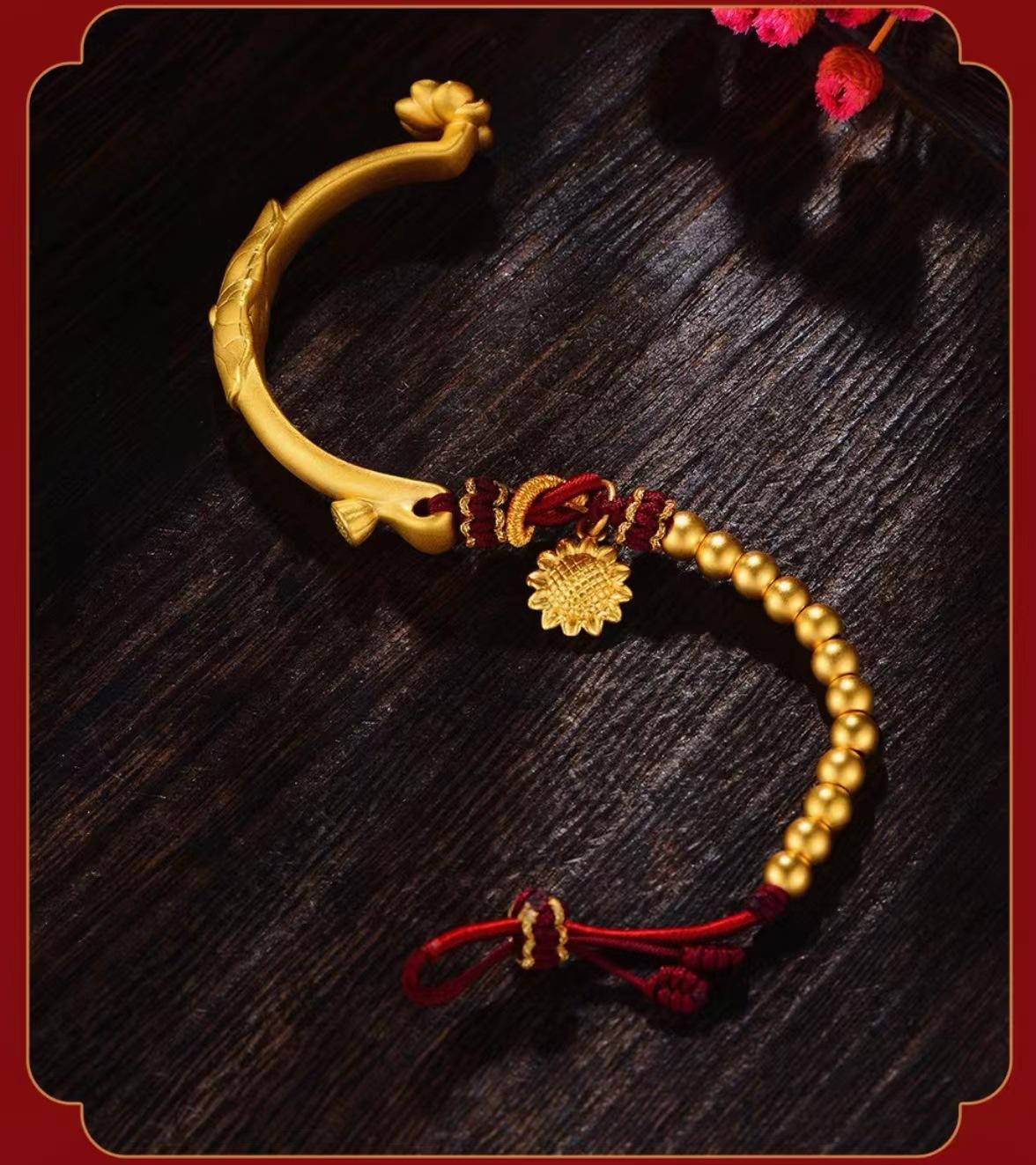 Pulsera de media luna de loto de oro vietnamita para mujer, estilo antiguo francés, con tubo curvo y girasol, accesorios para manualidades, pulsera de cuerda