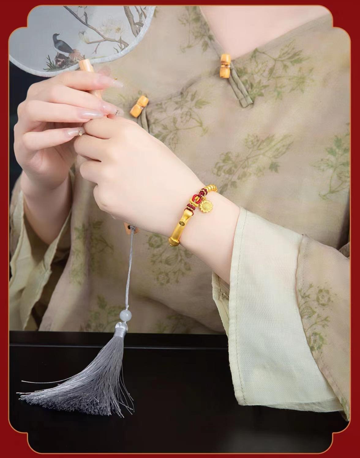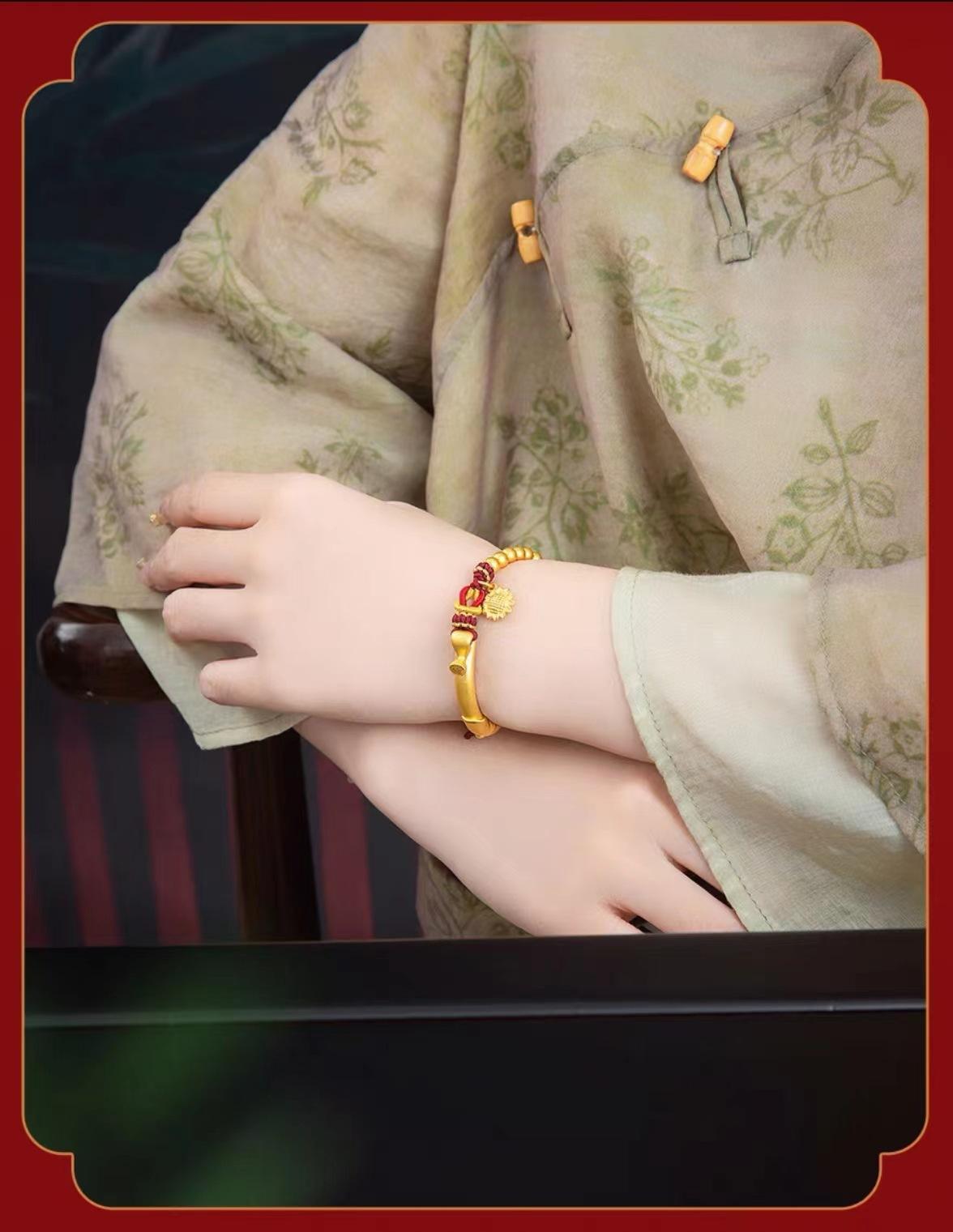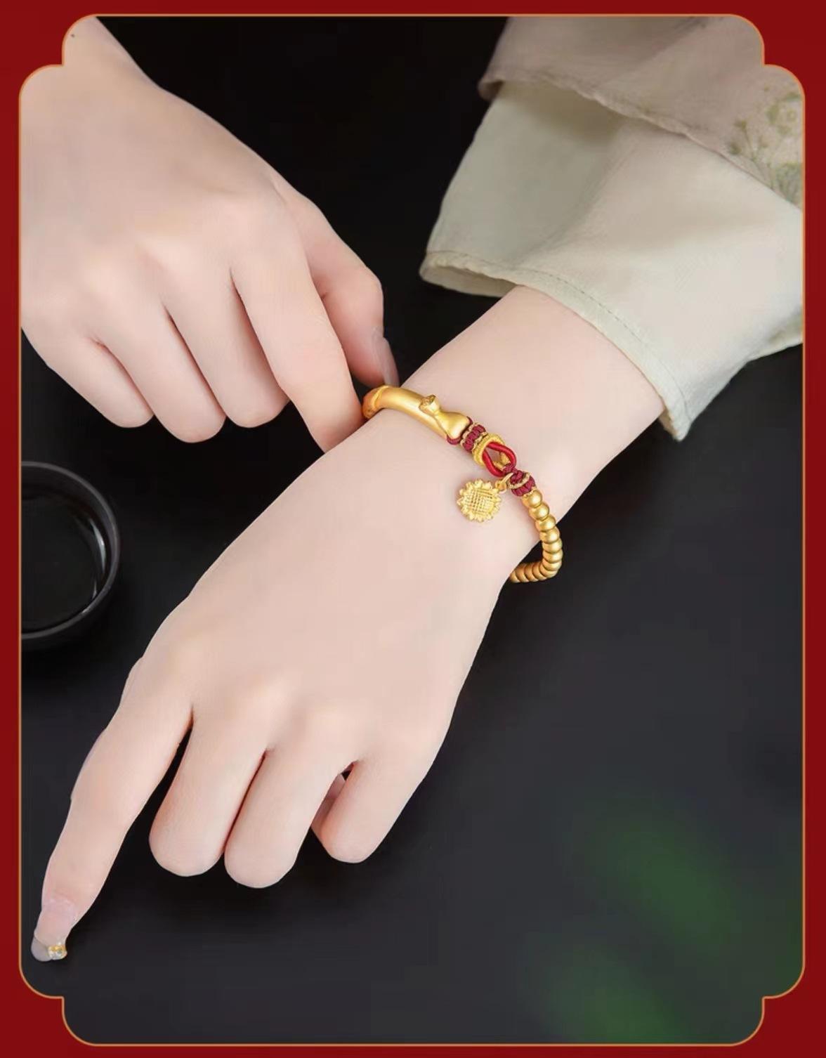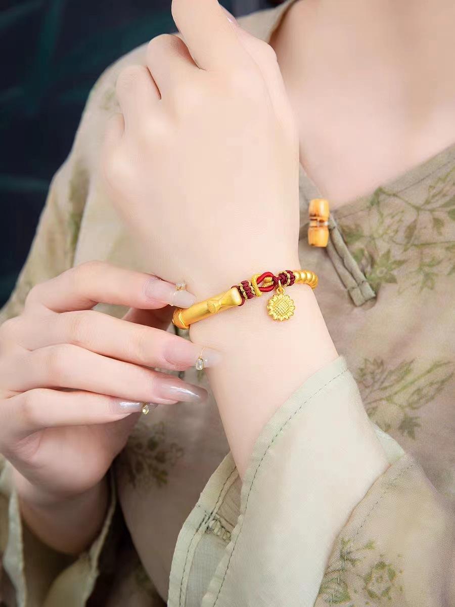 Pulsera de media luna de loto de oro vietnamita para mujer, estilo antiguo francés, con tubo curvo y girasol, accesorios para manualidades, pulsera de cuerda