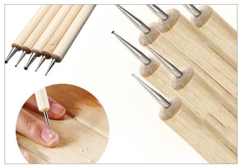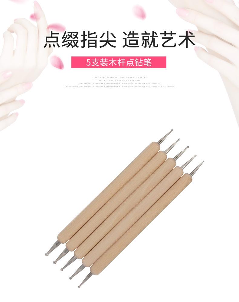 Herramientas para uñas DIY, varilla de madera, taladro, punta, flor, bolígrafo, gancho, flor, bolígrafo, 5 al por mayor