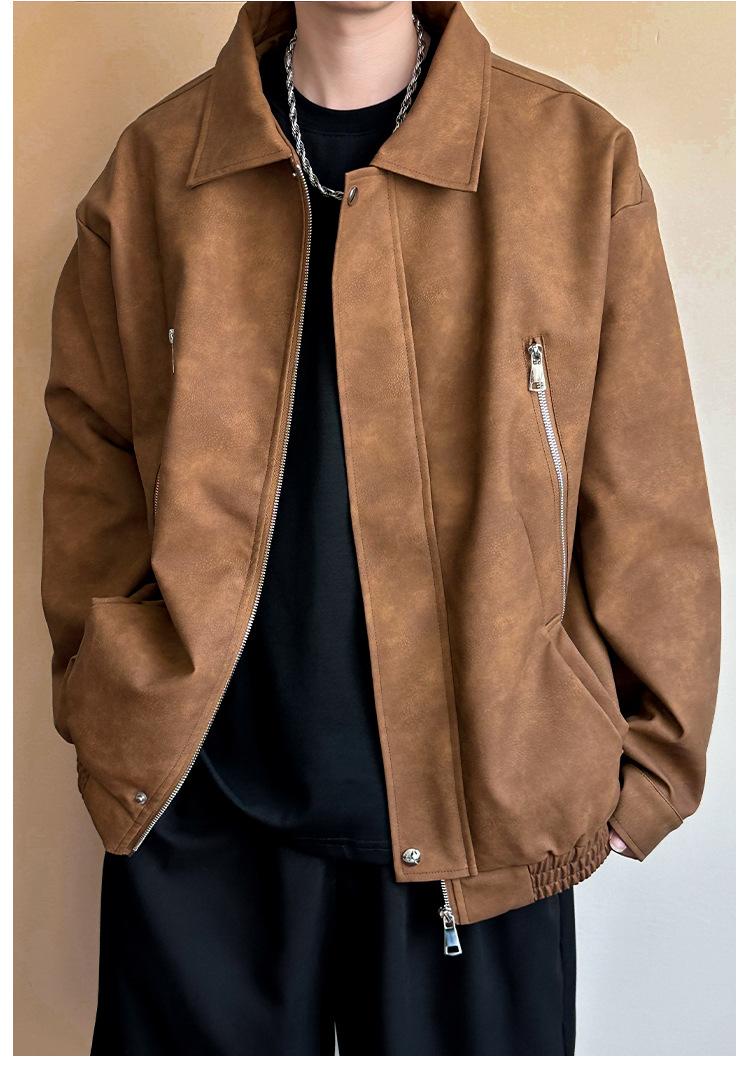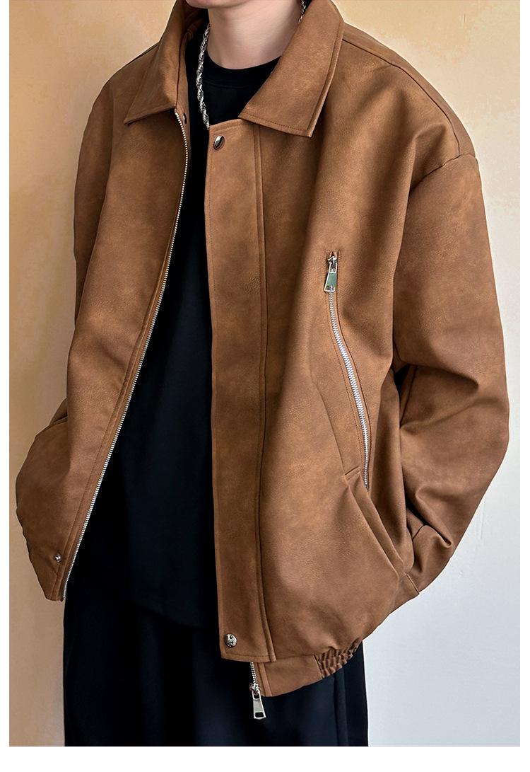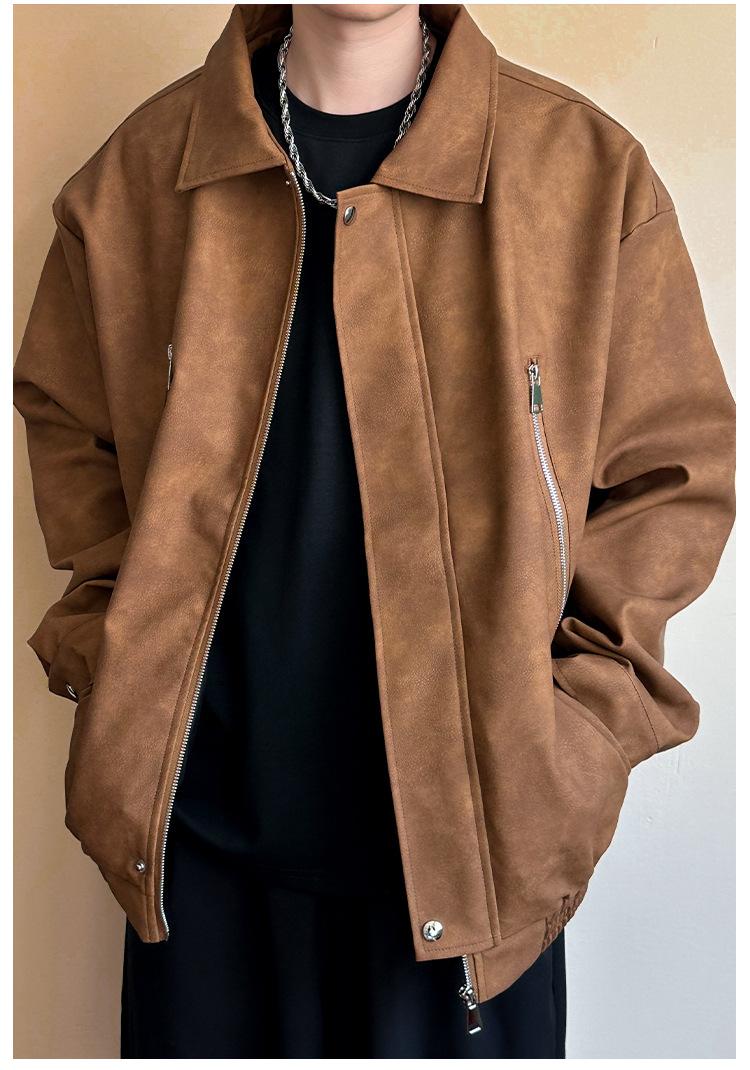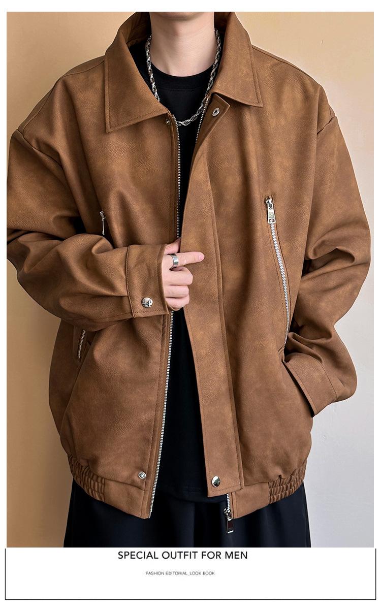 Chaqueta de cuero de marca de moda callejera para hombre, estilo retro americano, disponible en stock para primavera y otoño.