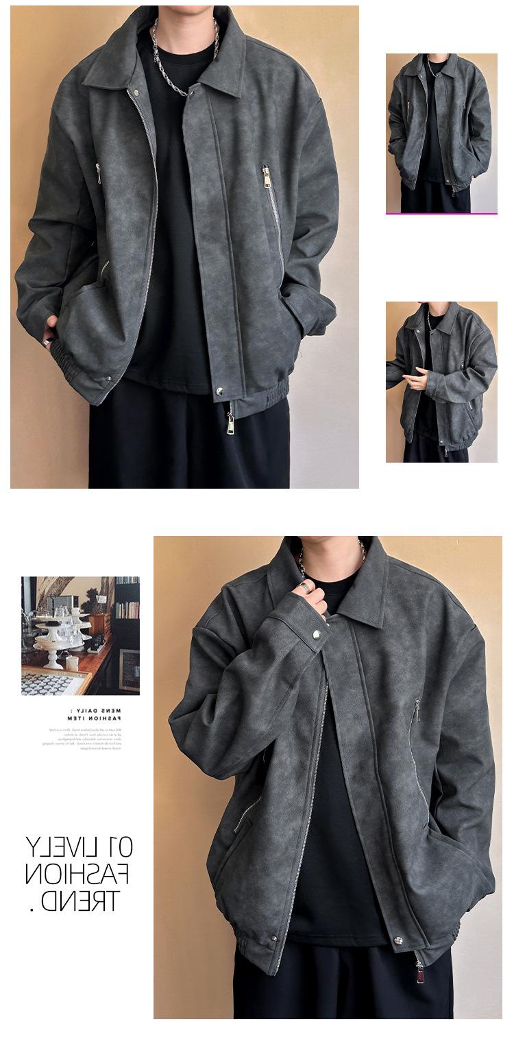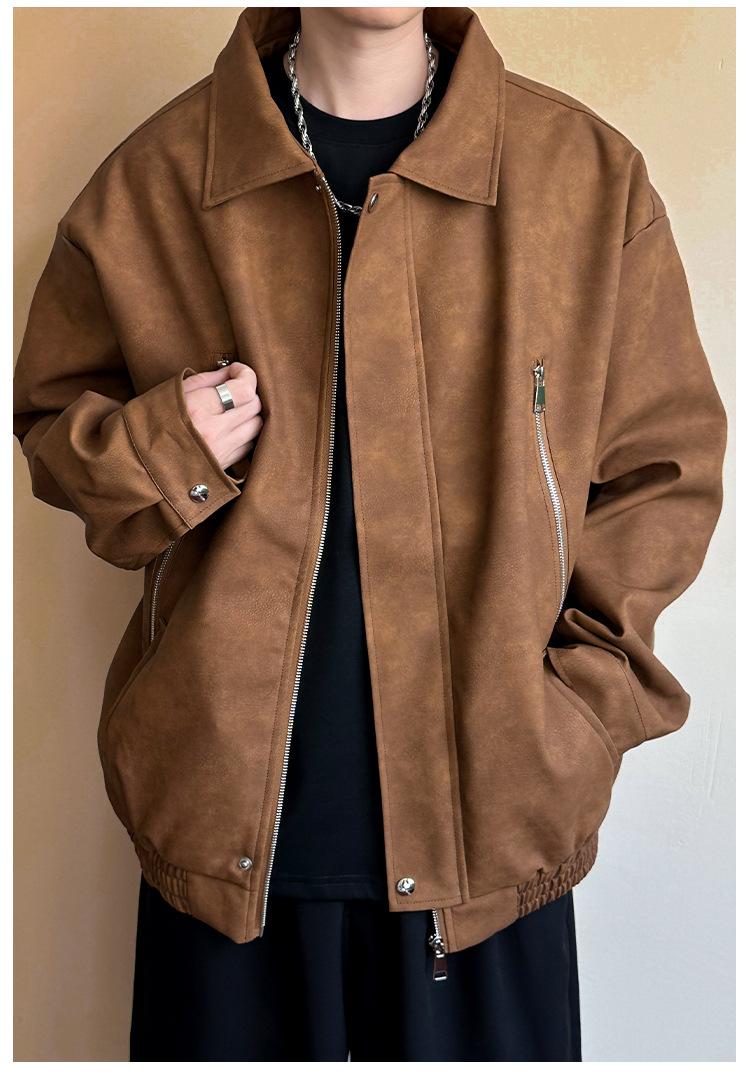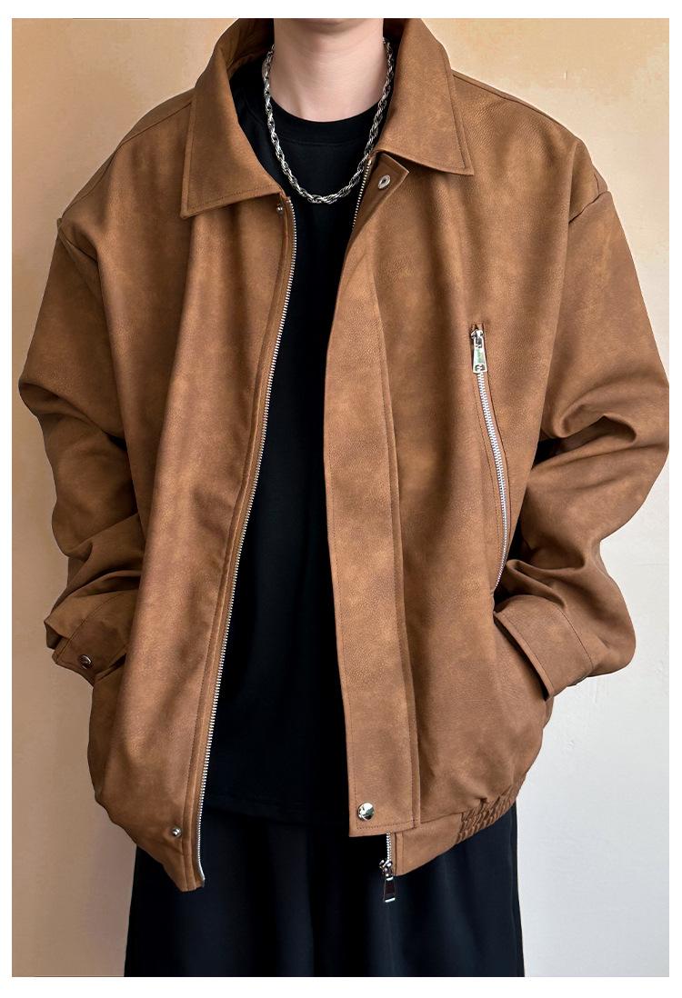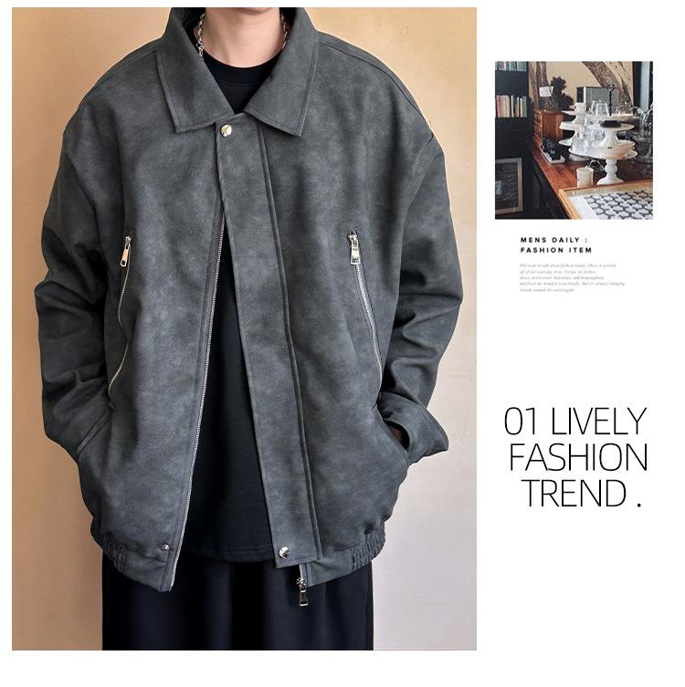 Chaqueta de cuero de marca de moda callejera para hombre, estilo retro americano, disponible en stock para primavera y otoño.