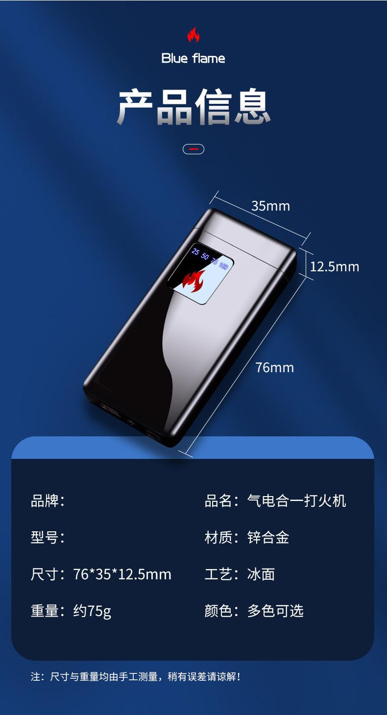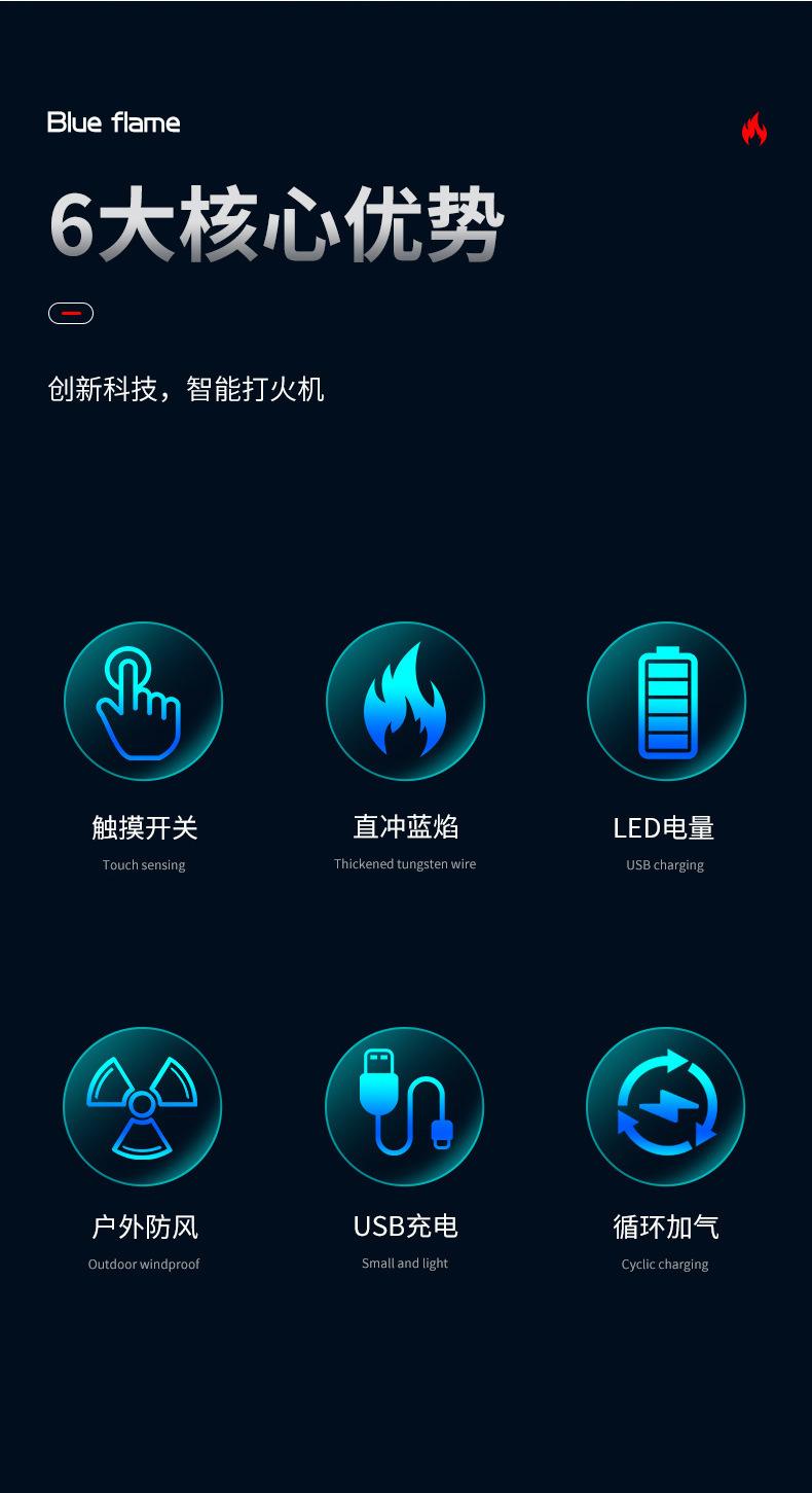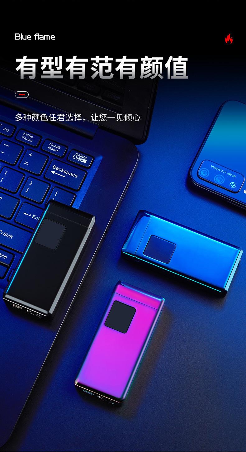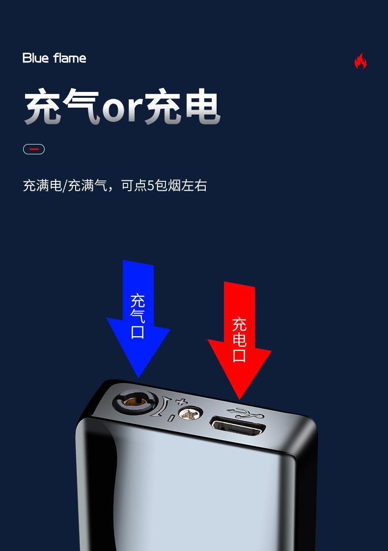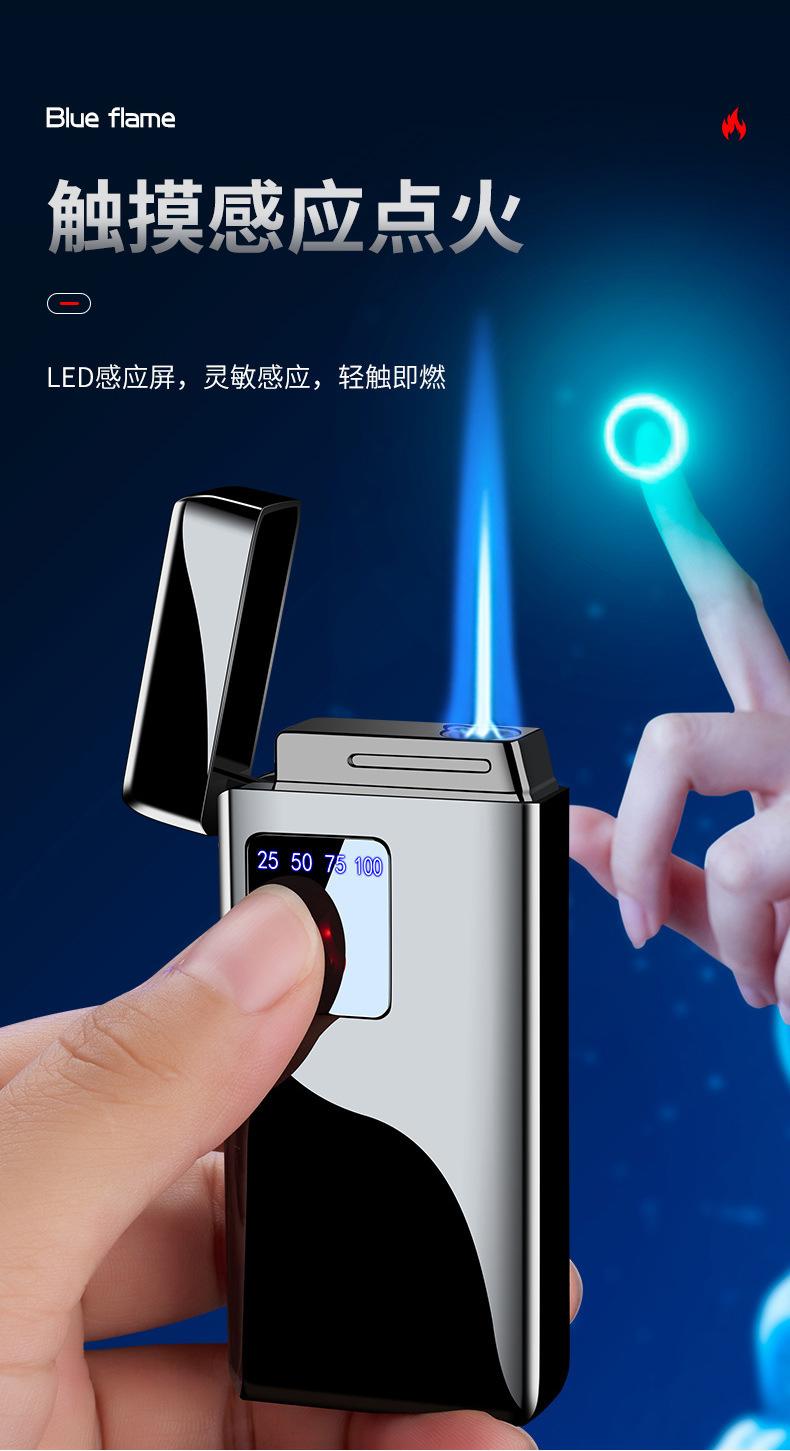 Encendedor creativo de gas-eléctrico de carga directa a prueba de viento llama azul carga directa sensible al tacto inflable encendedor de alta gama