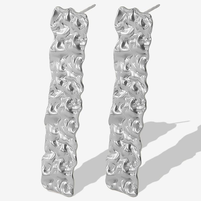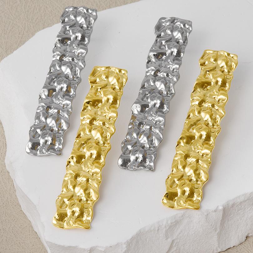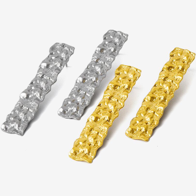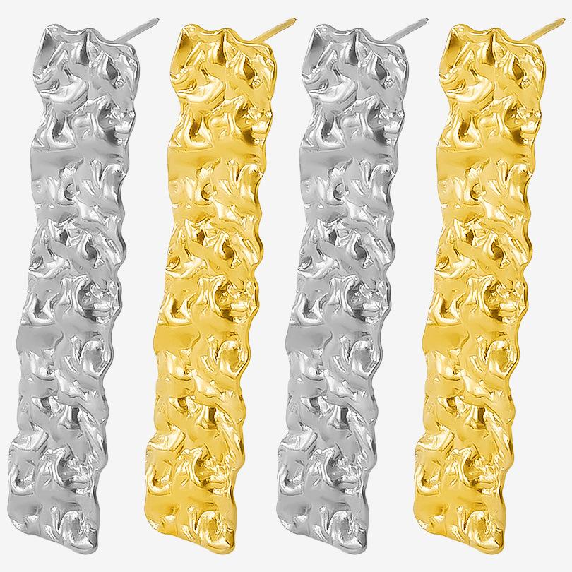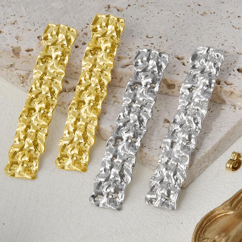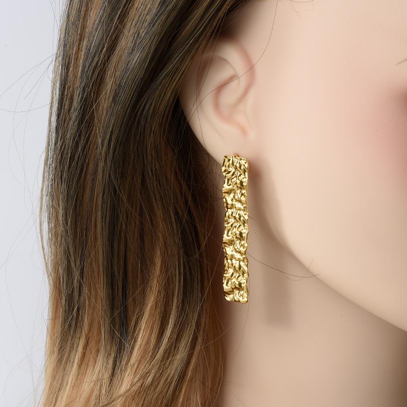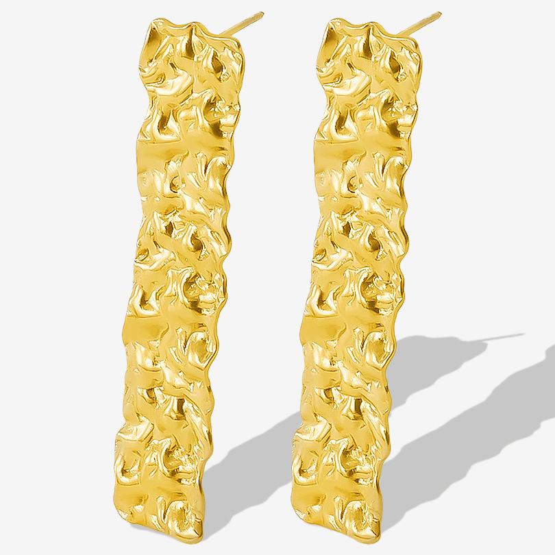 Compra Pendientes largos plisados de acero inoxidable 304 de moda europea y americana, pendientes dorados con botón, ligeros, de lujo y de alto diseño. al por mayor en Joom.pro