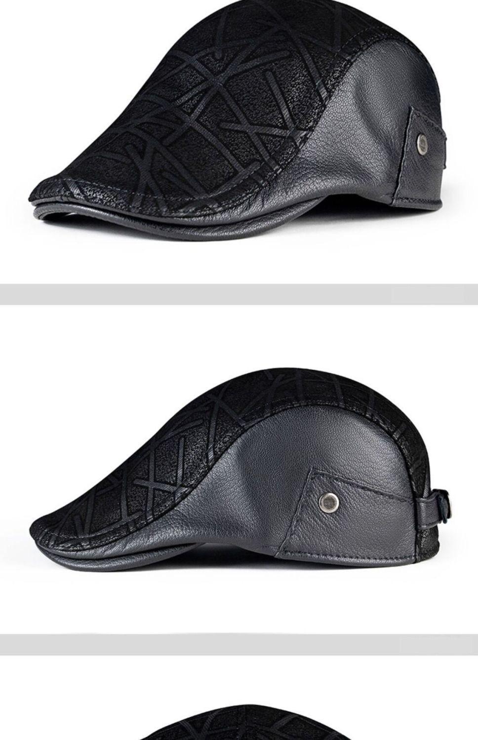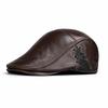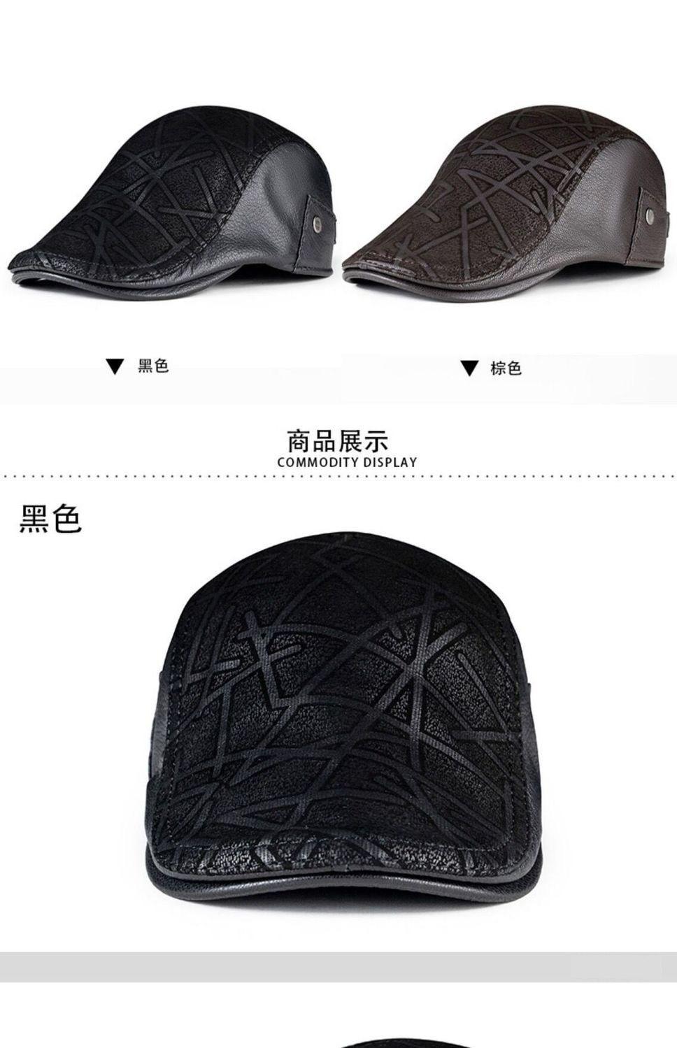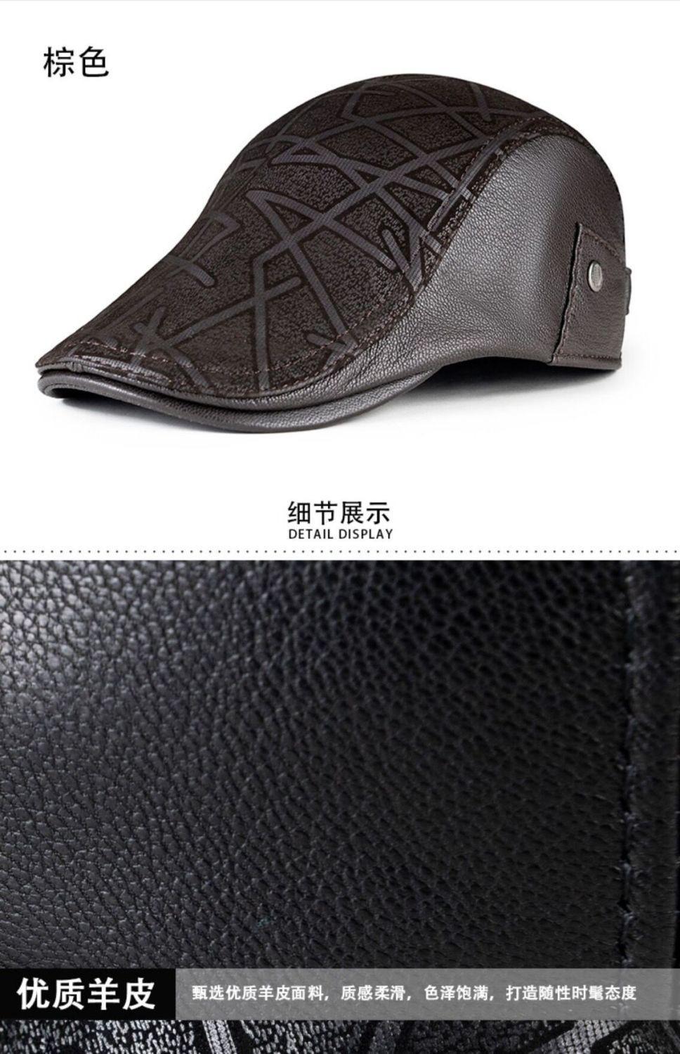 Boina de Piel de Oveja de Otoño e Invierno Gorra de Estilo Coreano para Hombre Patrón para Personas de Mediana Edad y Ancianos Gorra Plana Versátil Cálido Sombrero de Cuero