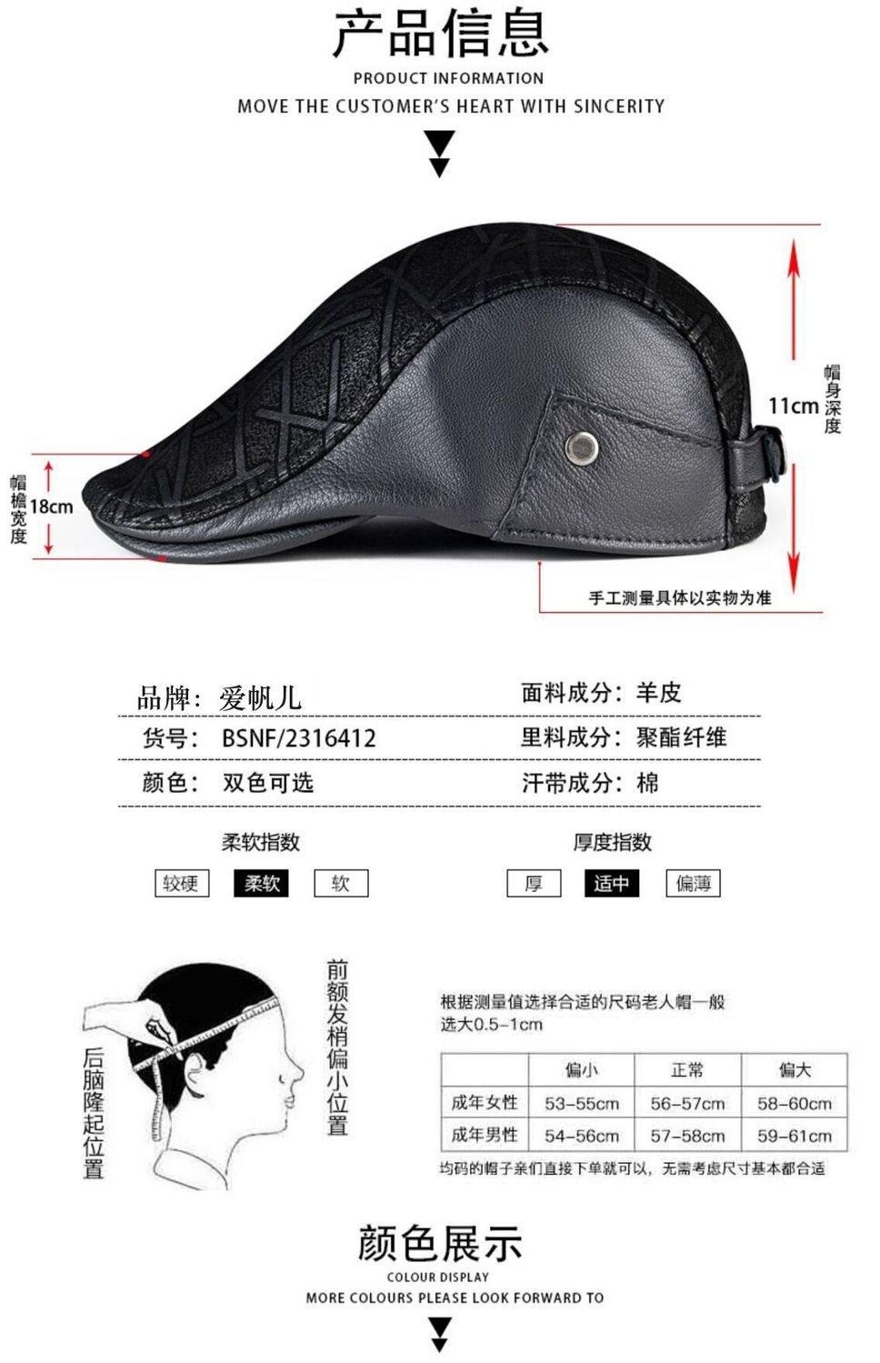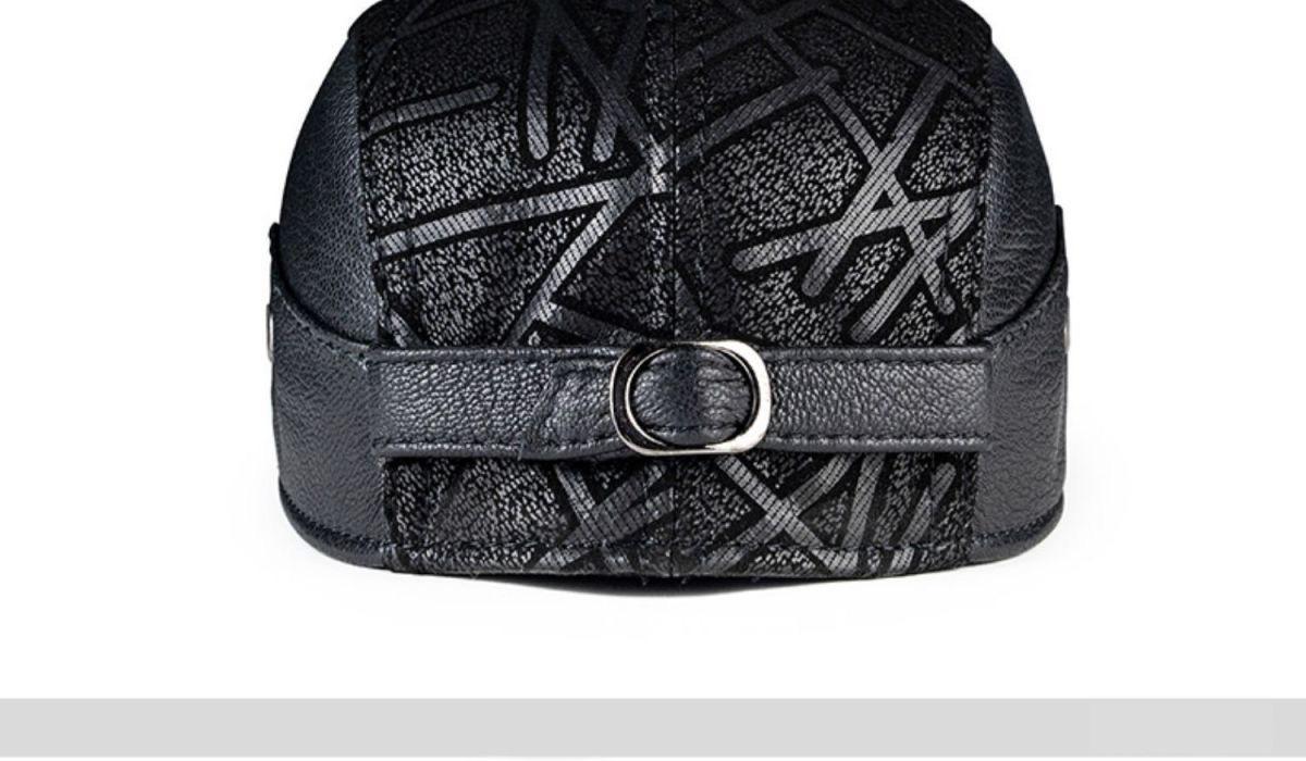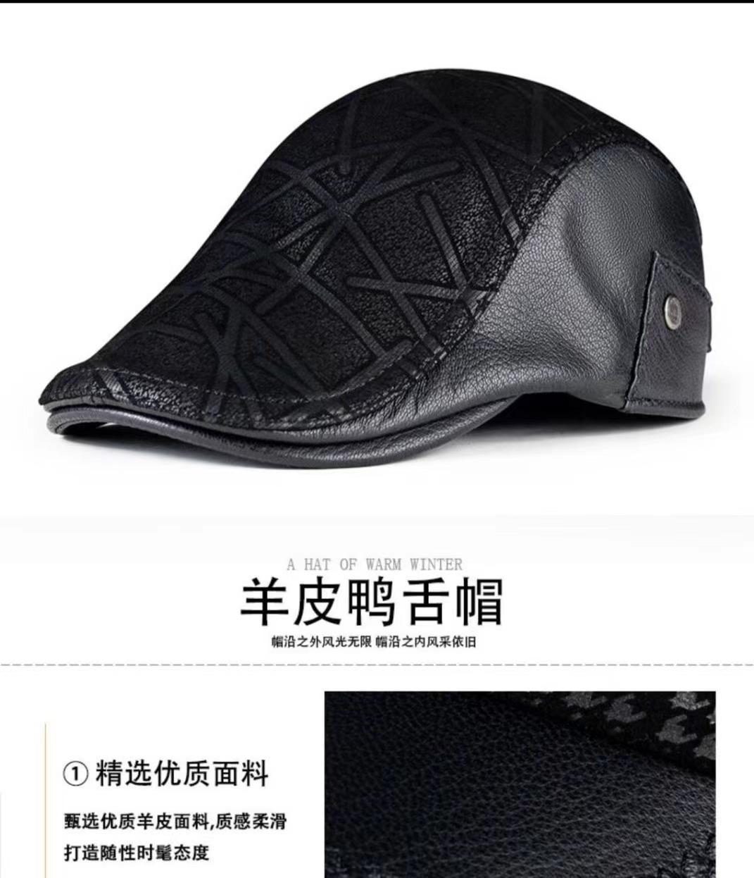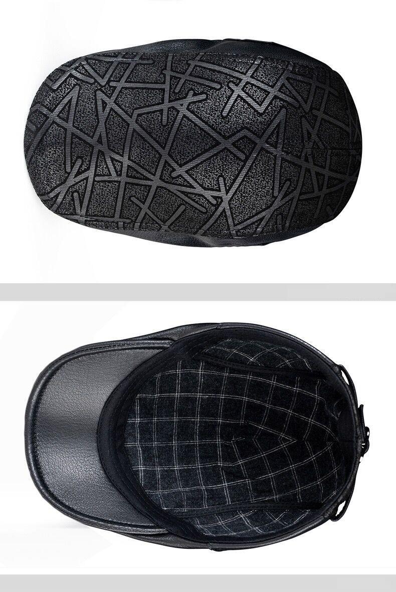 Boina de Piel de Oveja de Otoño e Invierno Gorra de Estilo Coreano para Hombre Patrón para Personas de Mediana Edad y Ancianos Gorra Plana Versátil Cálido Sombrero de Cuero
