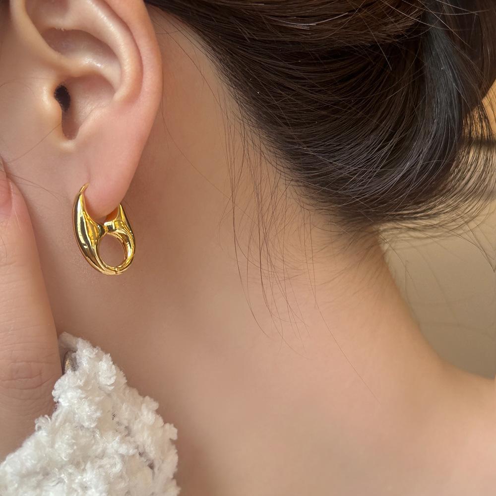 Aretes Nariz de Cerdo Europeos y Americanos Ins Metal Hebilla de Oreja Diseño Nicho Versátil Moda Exquisita Joyería de Oreja de Alta Gama
