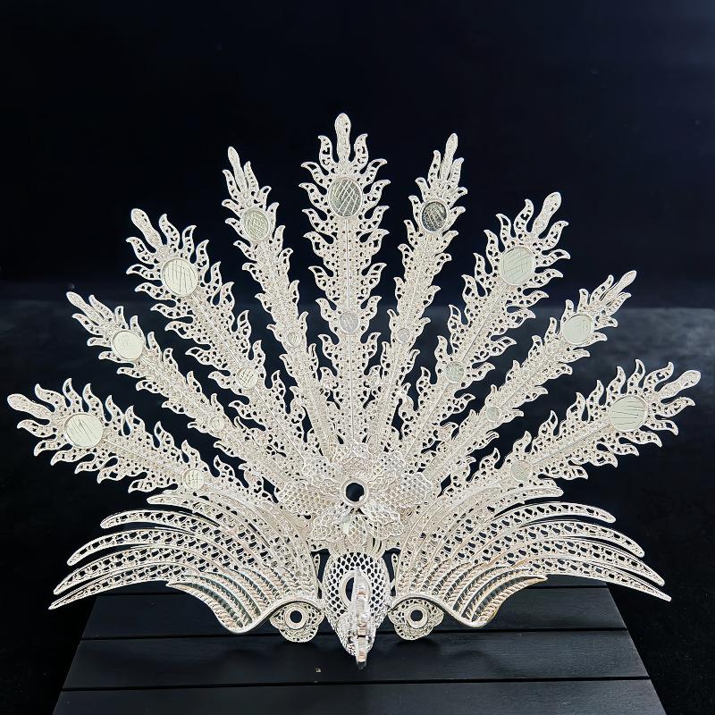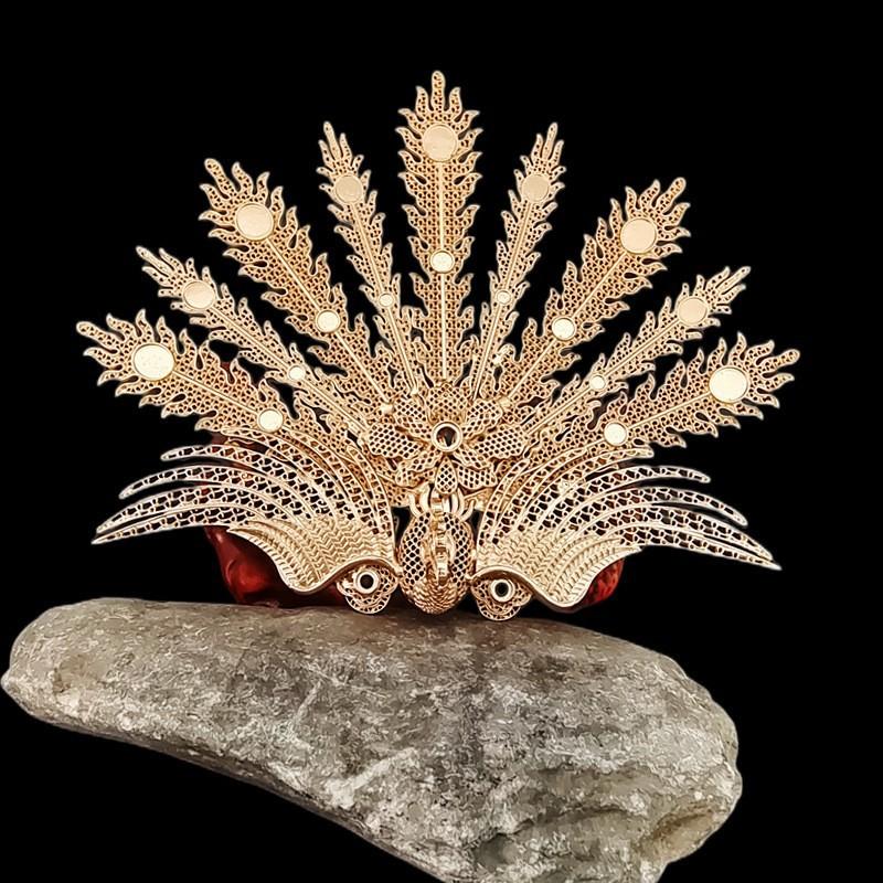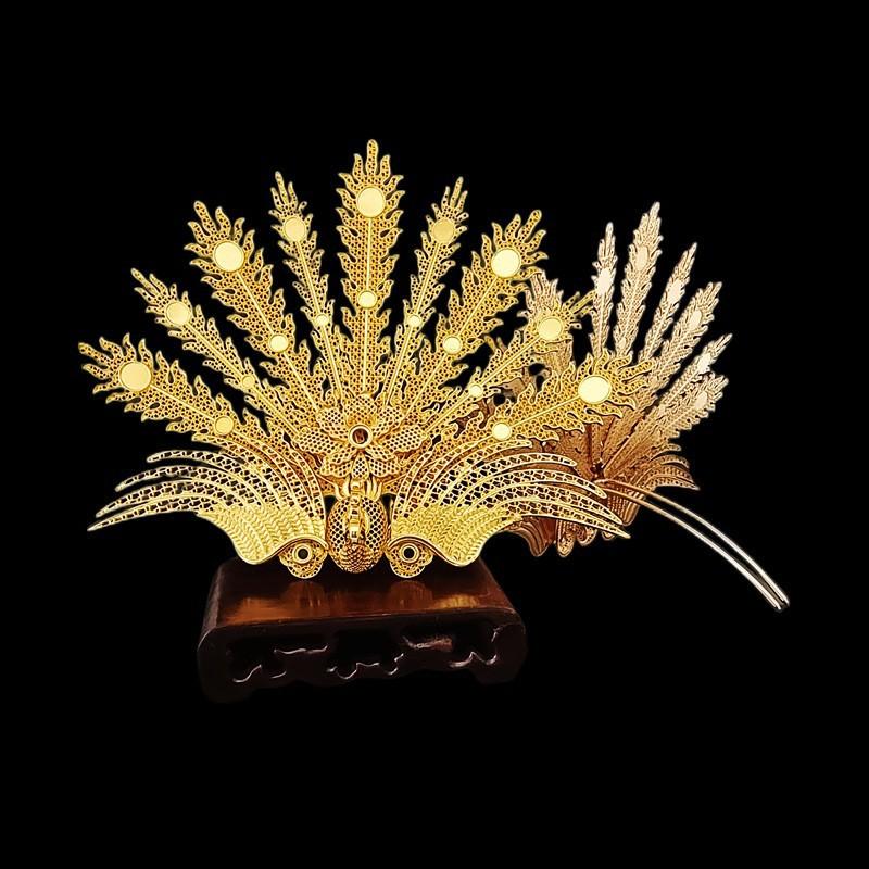 Joyería Yingyi DIY Tocado antiguo Corona para el cabello Corona de fénix de seda dorada Corona de fénix Accesorios para el cabello antiguos Accesorios Hanfu