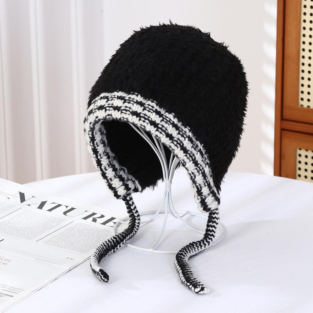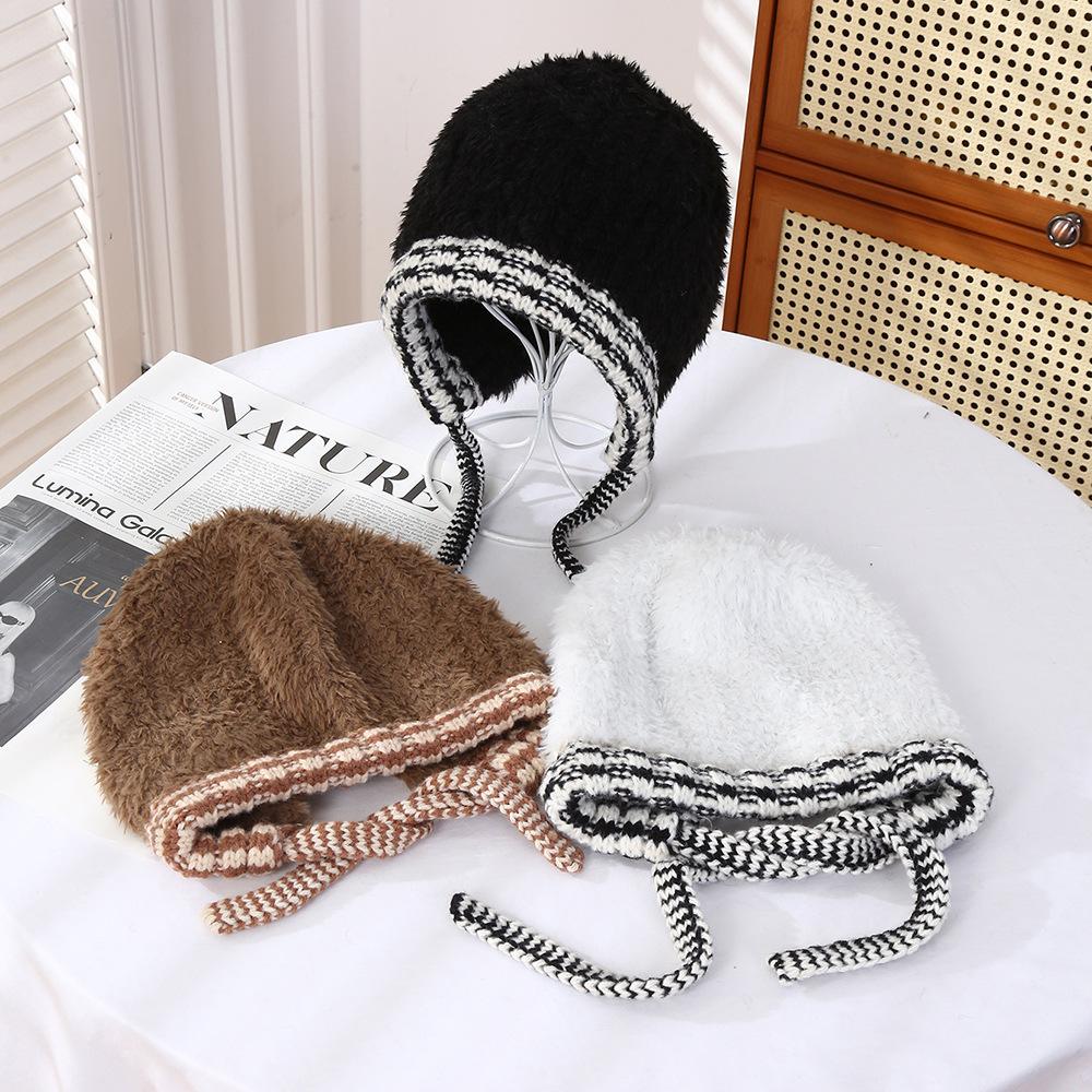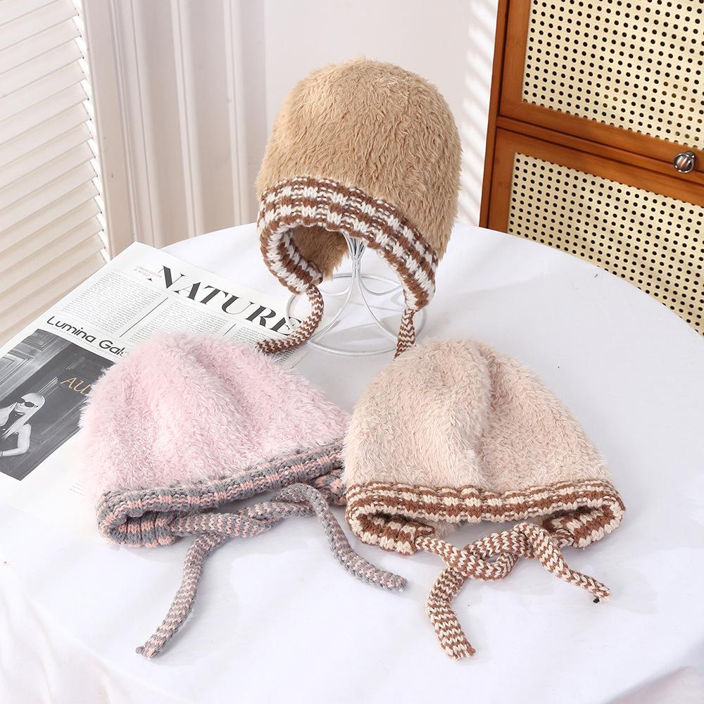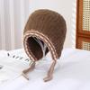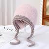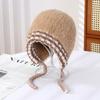 Nuevo gorro de lana de punto estilo coreano, cálido y bonito, con correa, resistente al frío y al viento, con protección para las orejas.