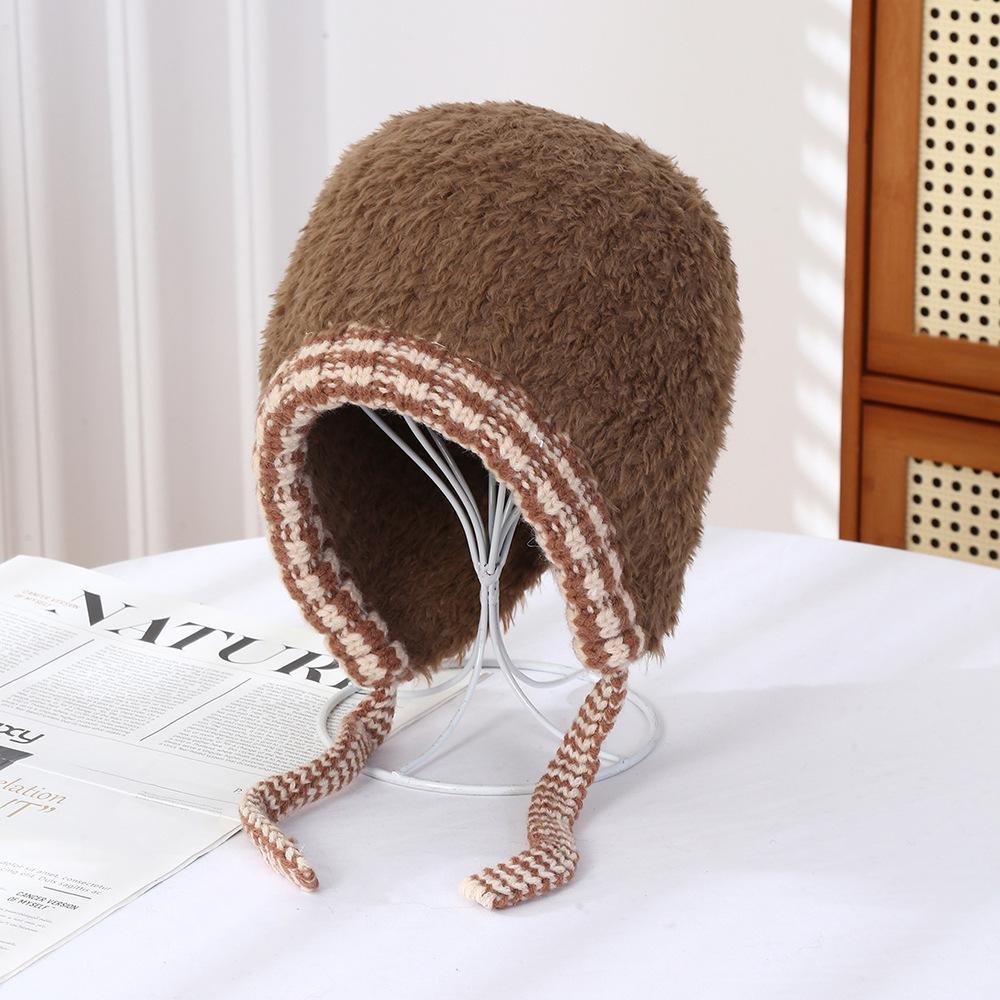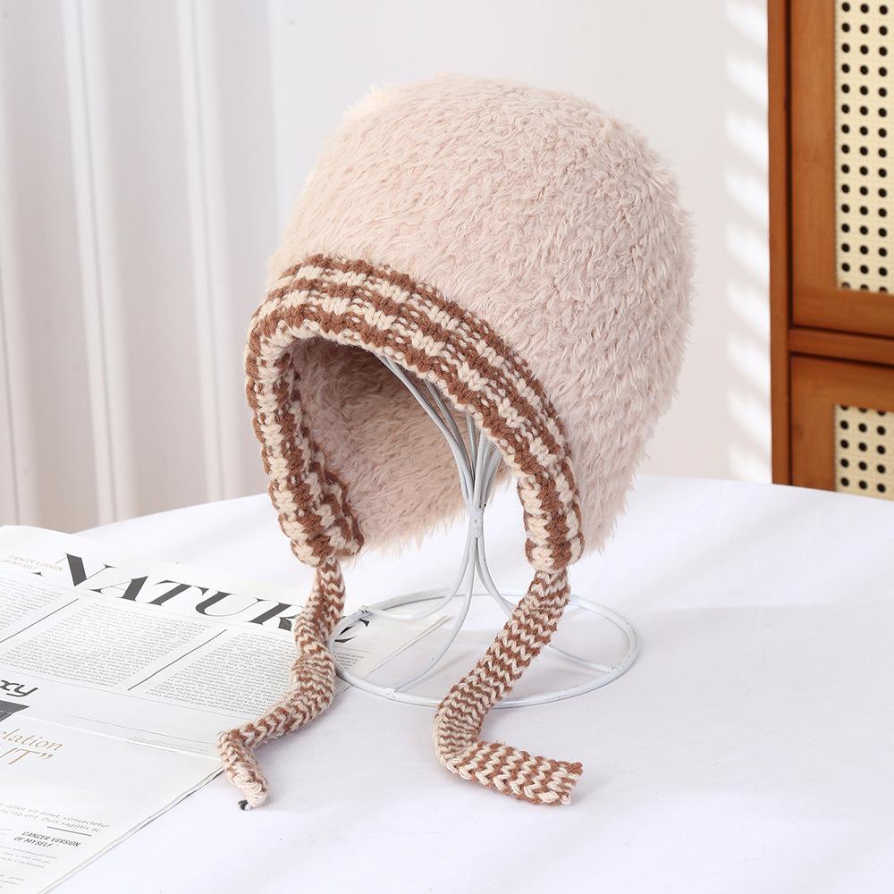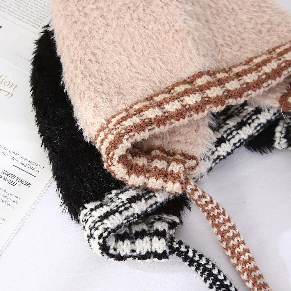 Compra Nuevo gorro de lana de punto estilo coreano, cálido y bonito, con correa, resistente al frío y al viento, con protección para las orejas. al por mayor en Joom.pro