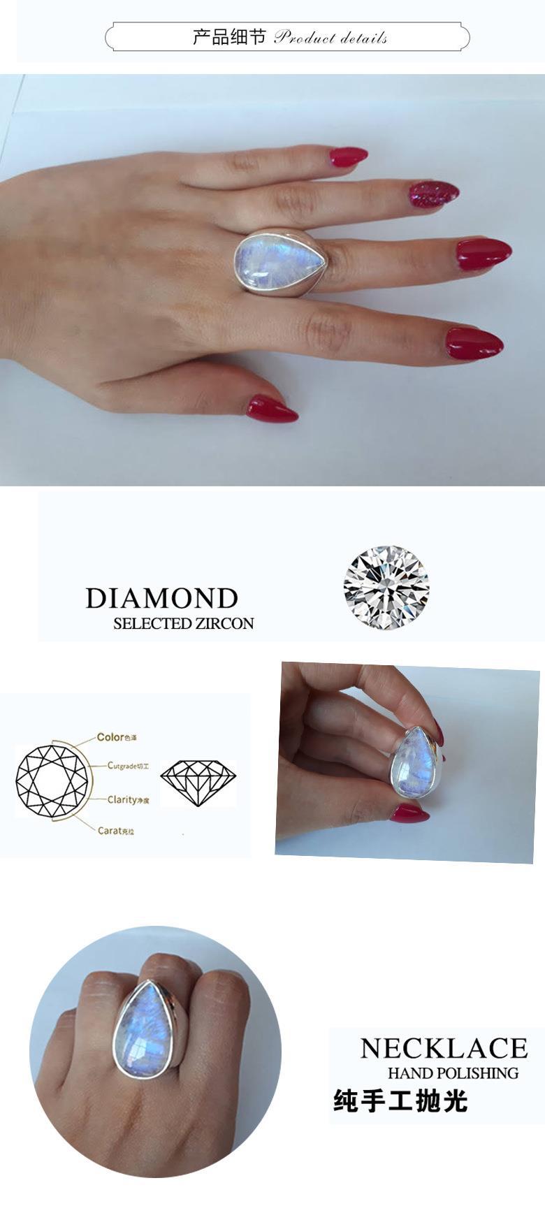 Zhenrong desea una gran oferta, nuevo anillo de piedra lunar retro europeo y americano, estilo punk transfronterizo, joyería exagerada al por mayor