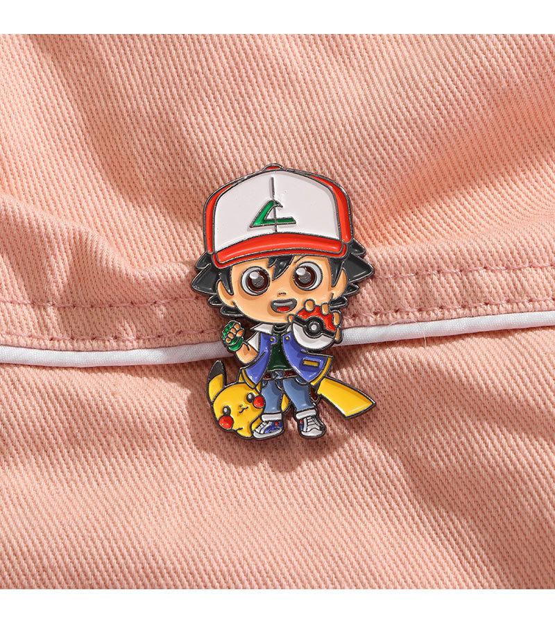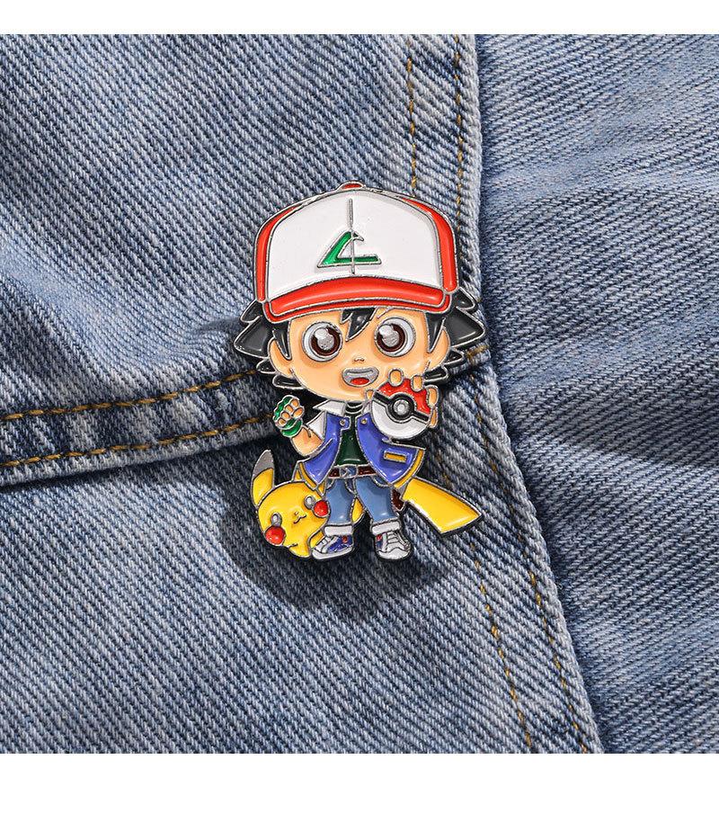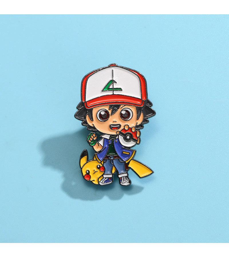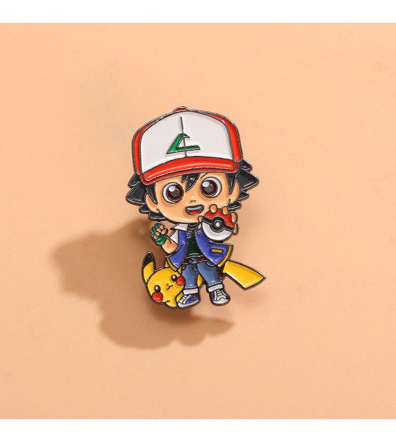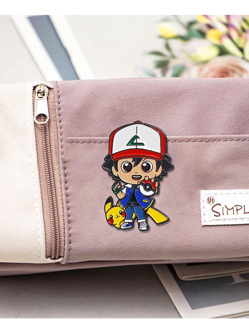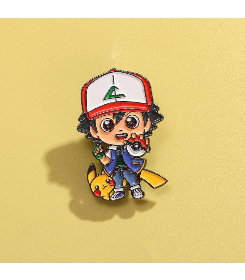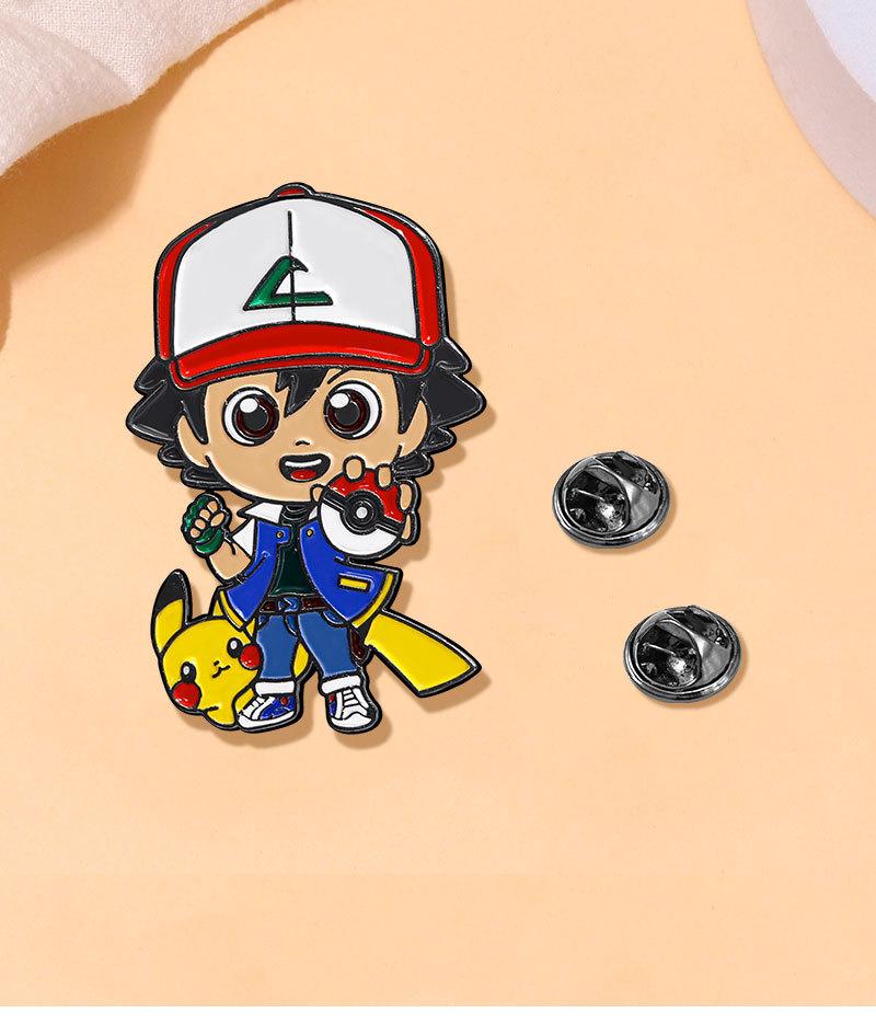 Insignia periférica de animación Pokémon, broche de aleación de zinc con forma de gota de aceite de Pokémon Xiaozhi y Pikachu