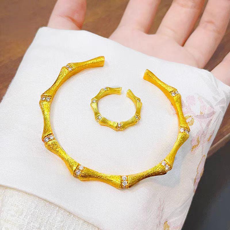 Pulsera de diamantes flameados cepillados, anillo de imitación de oro vietnamita arena, pulsera abierta de gran altura, nueva pulsera china.