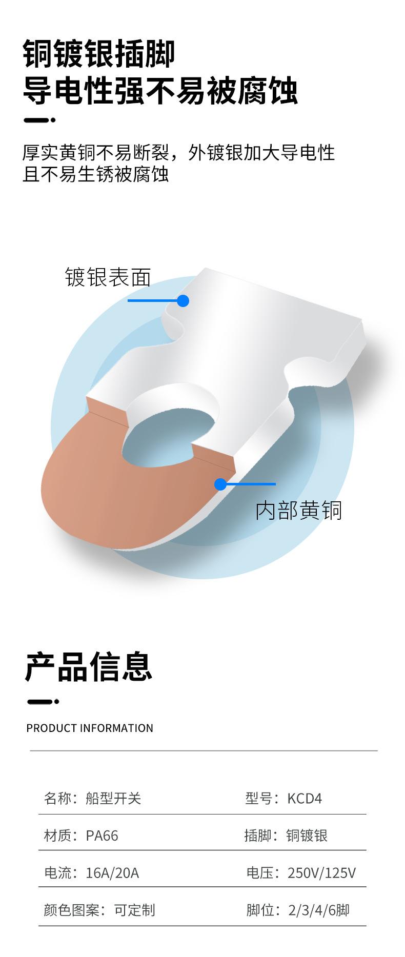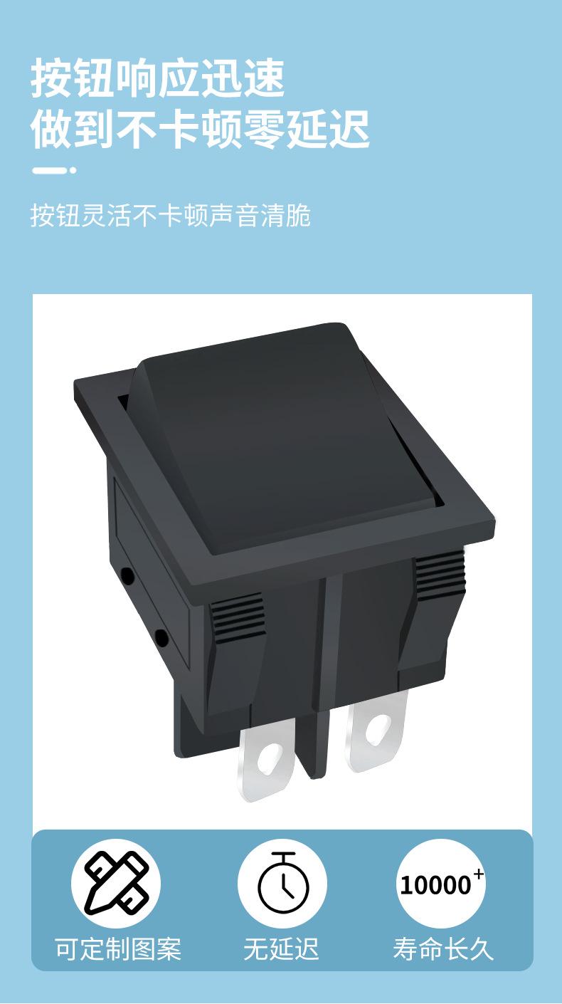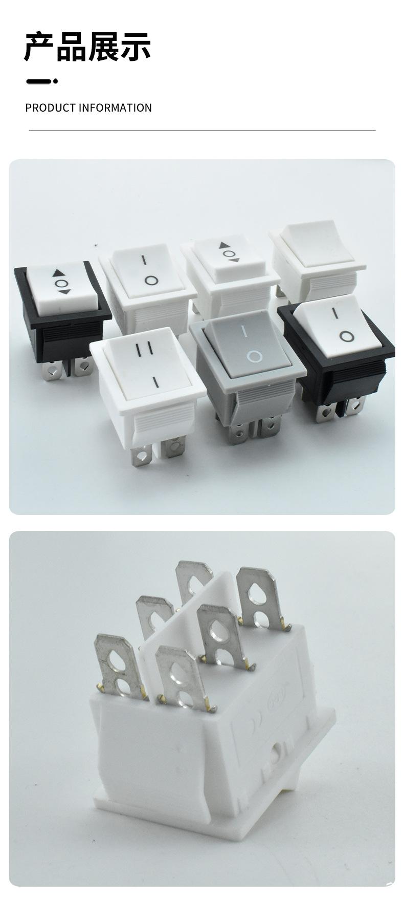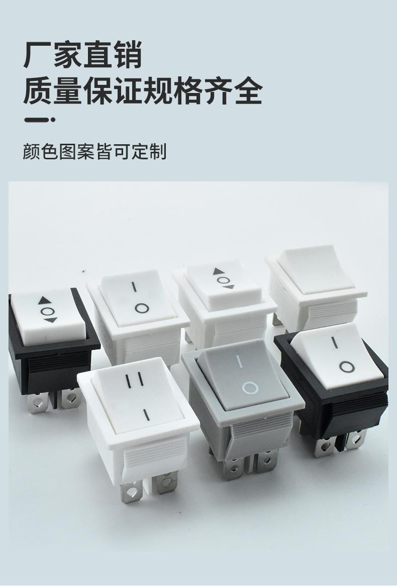 Introducción al interruptor de barco: El interruptor de barco también se denomina interruptor de onda. Su estructura es la misma que la del interruptor de botón, excepto que la manija del botón tiene forma de barco. El interruptor de barco se utiliza a menudo como interruptor de encendido de equipos electrónicos. Sus contactos se dividen en unipolares (de una vía) y bipolares (de dos vías). Algunos interruptores requieren luces indicadoras. Rango de aplicación: Los interruptores basculantes se utilizan en dispensadores de agua, cintas de correr, altavoces de computadora, automóviles a batería, motocicletas, televisores de plasma, cafeteras, regletas de enchufes, máquinas de masaje, etc. Se utilizan principalmente en electrodomésticos. El método de prueba para verificar la vida útil del interruptor basculante consiste principalmente en comprobar el número de aperturas y cierres hasta que se dañe. Si no necesita hacerlo manualmente, puede usar un pequeño motor para accionar el interruptor basculante de apertura y cierre y usar un contador para registrar el número de veces. Este interruptor requiere certificación de seguridad. Si el producto se vende en el país, utiliza CQC. Si se vende en el extranjero, depende del país de destino, como UL en Estados Unidos, ETL en Canadá, CUL en Europa y VDE, ENEC, TÜV y otras certificaciones de seguridad. Clasificación del interruptor basculante: 1. SPST: 1 contacto móvil y 1 contacto estático. Solo 1 canal. 2. Unipolar de doble tiro: 1 contacto móvil y 2 contactos estacionarios (los contactos estacionarios de ambos lados se pueden conectar por separado) 3. Bipolar de un solo tiro, 2 contactos móviles y 2 contactos fijos, con 2 canales 4. Bipolar de dos vías, 2 contactos móviles y 4 contactos estáticos, con 4 canales (los 2 contactos estáticos de ambos lados se pueden conectar por separado) Problema de falla del interruptor basculante: Hay una lámina metálica dentro del interruptor con forma de barco, con un punto de apoyo de resorte en el centro. El resorte está desplazado y el soporte de plástico está desgastado y deformado, por lo que el interruptor no es flexible. Puede desconectar la alimentación y revisarlo. Si las piezas de plástico no están dañadas, se puede restaurar. El cable neutro dentro del interruptor es directo y no tiene nada que ver con los componentes. Por lo tanto, si el interruptor se dispara y el interruptor de aire está activado, la capa de aislamiento del cable neutro que pasa por el interruptor está dañada. Puede cortar la sección dañada y recablearla. Preste atención al aislamiento. También podría ser que la base de la luz indicadora esté en cortocircuito, así que simplemente recablee.。