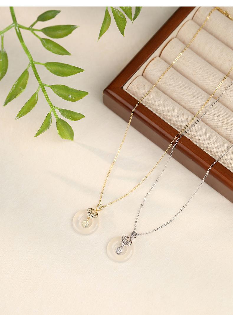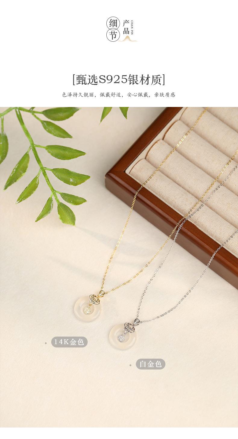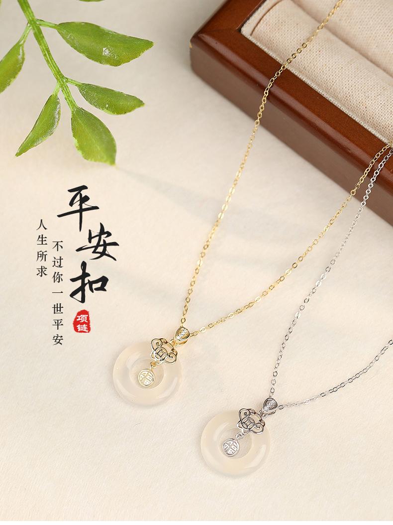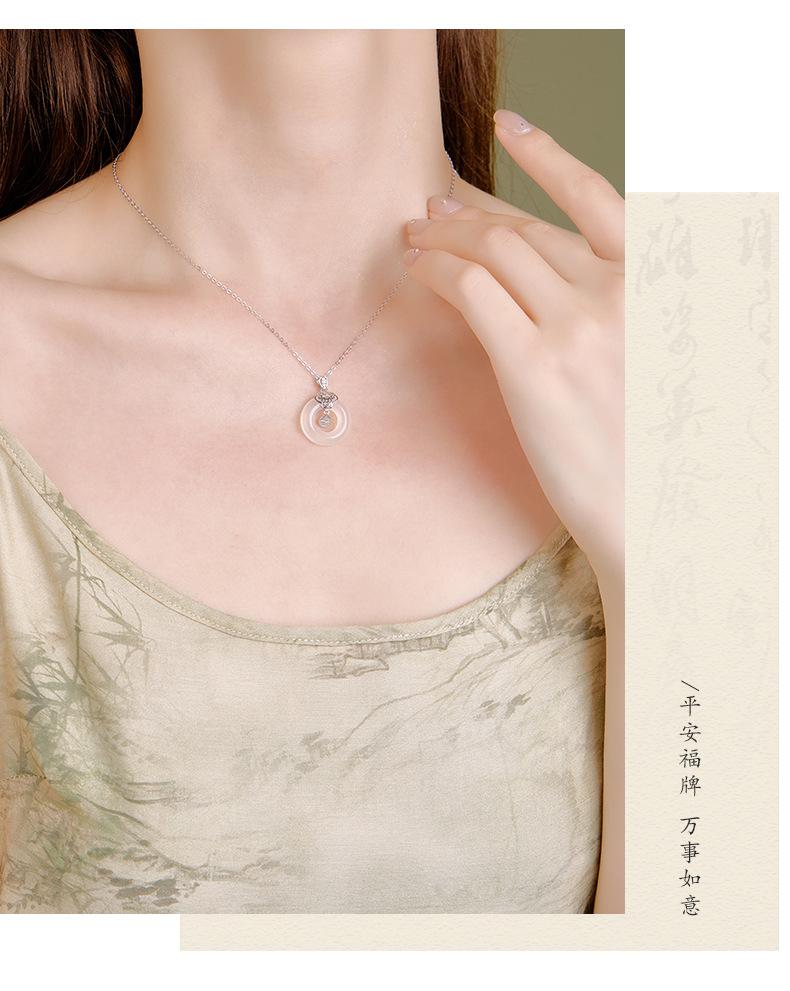 Collar con hebilla Ping An de la marca Jin Hongyu Fu, colgante de candado Ruyi de plata esterlina para mujer, collar de calcedonia blanca china retro de moda nacional